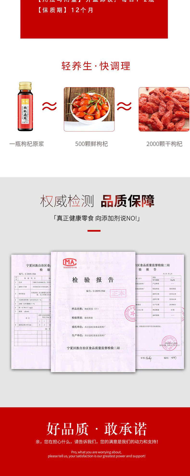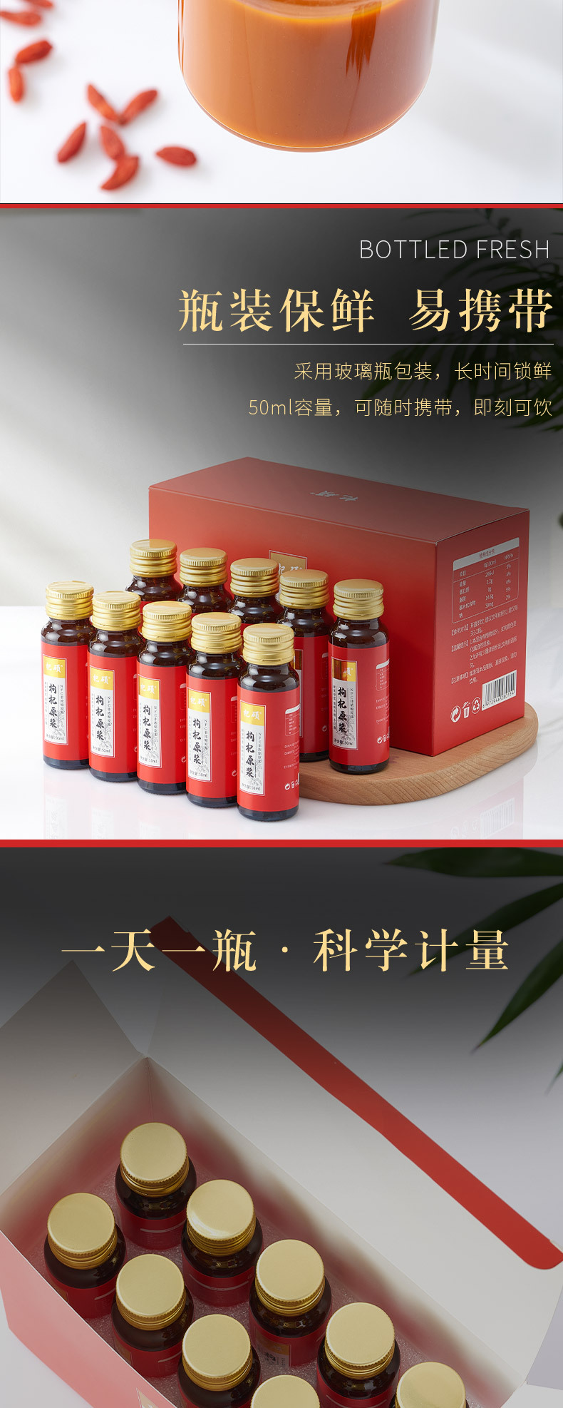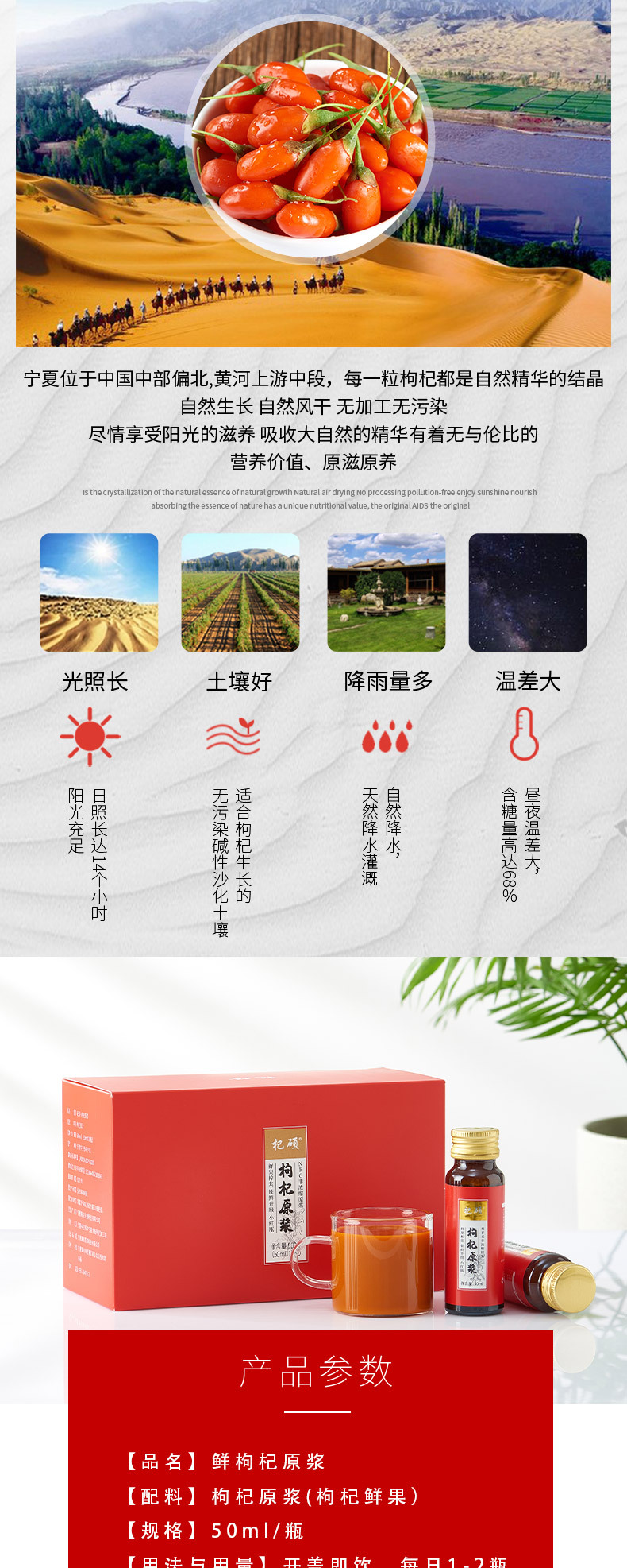 枸杞原浆 中宁鲜枸杞每日原浆 宁夏头茬枸杞原浆瓶装500ml/盒(10瓶装)