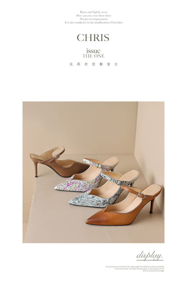 【预售5天】性感优雅,尖头包头高跟拖鞋HY&M851-1