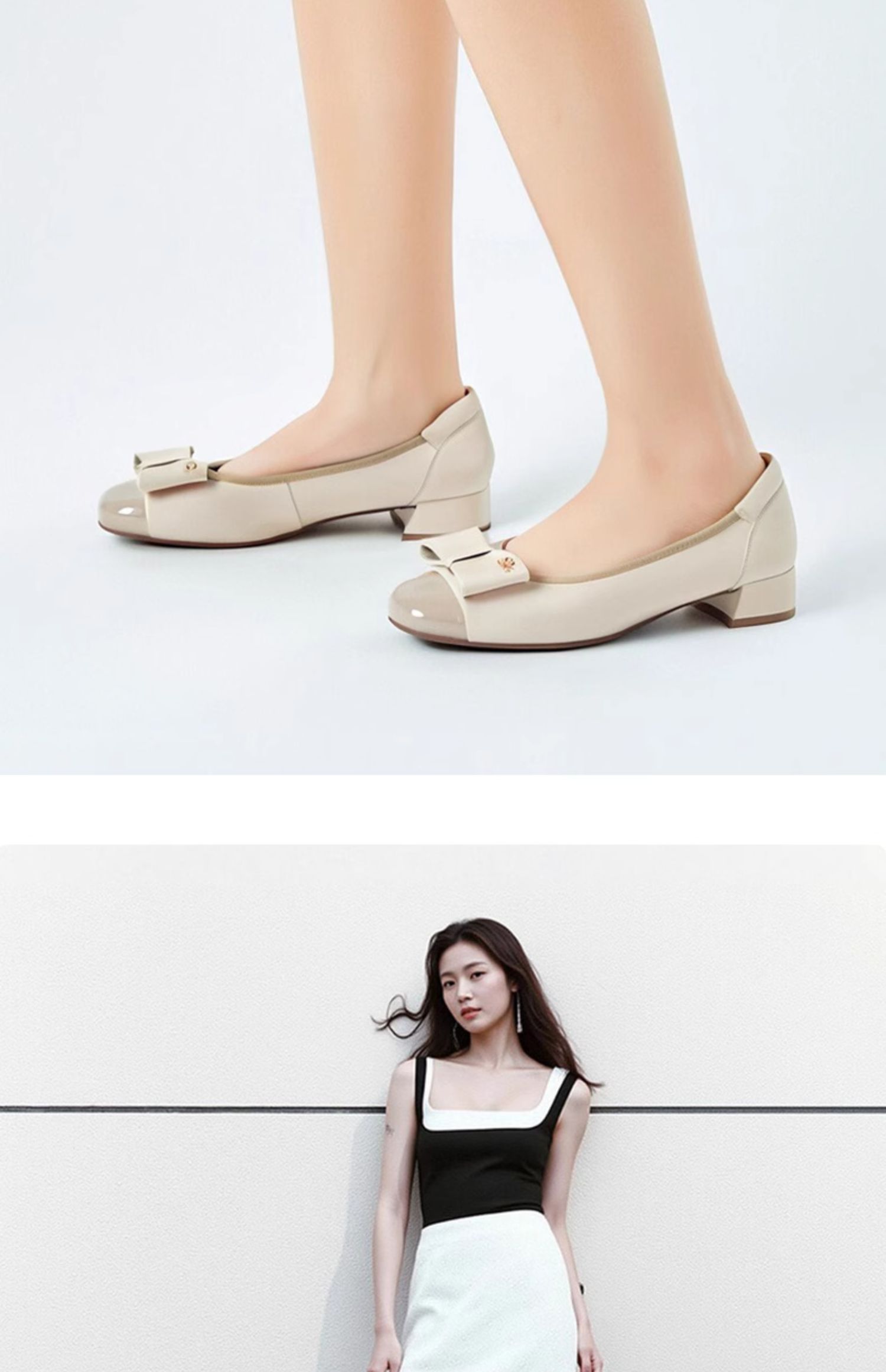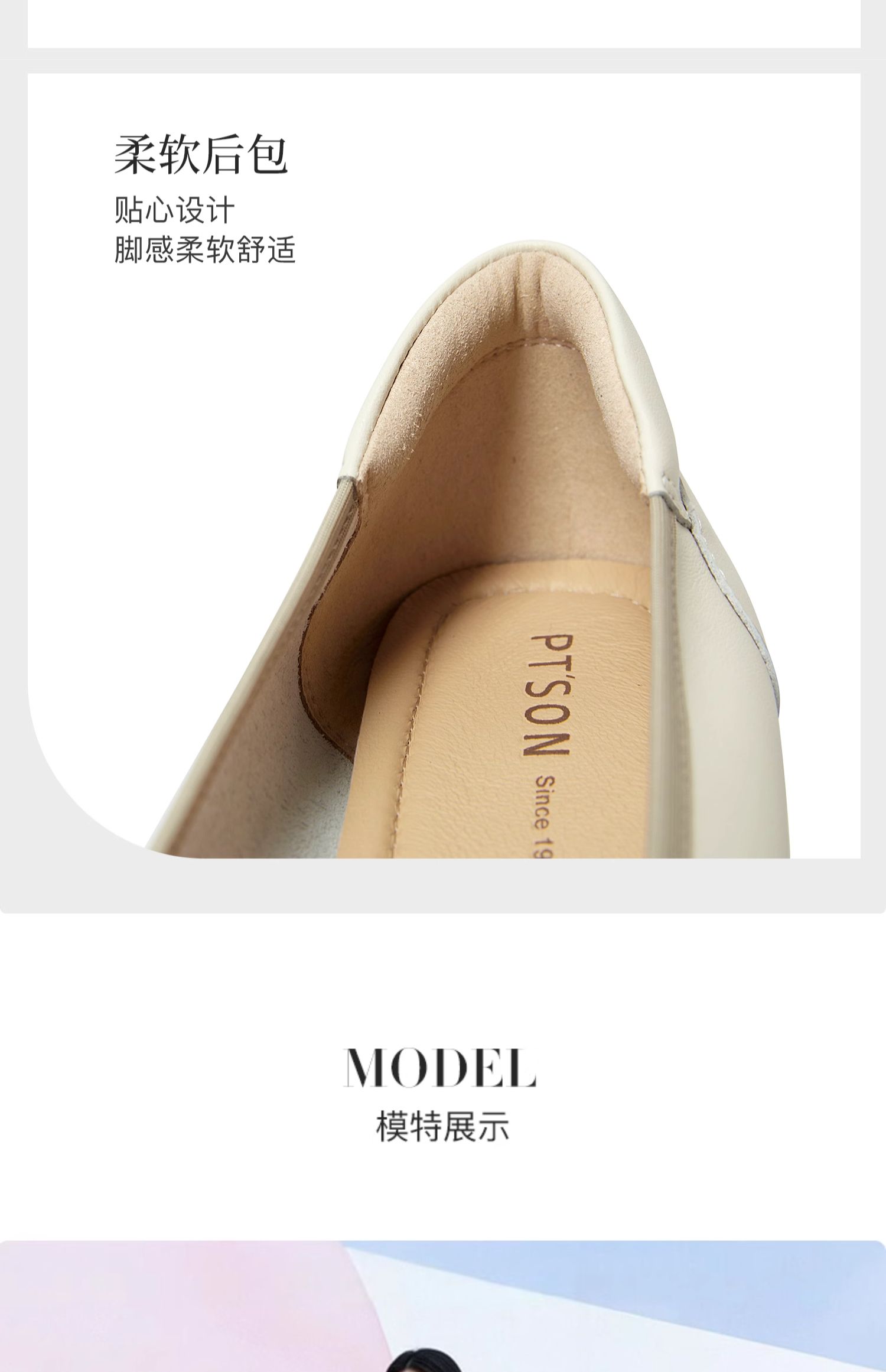 PT'SON百田森 黑色皮鞋一脚蹬女鞋2025新款真牛皮奶奶鞋低跟单鞋