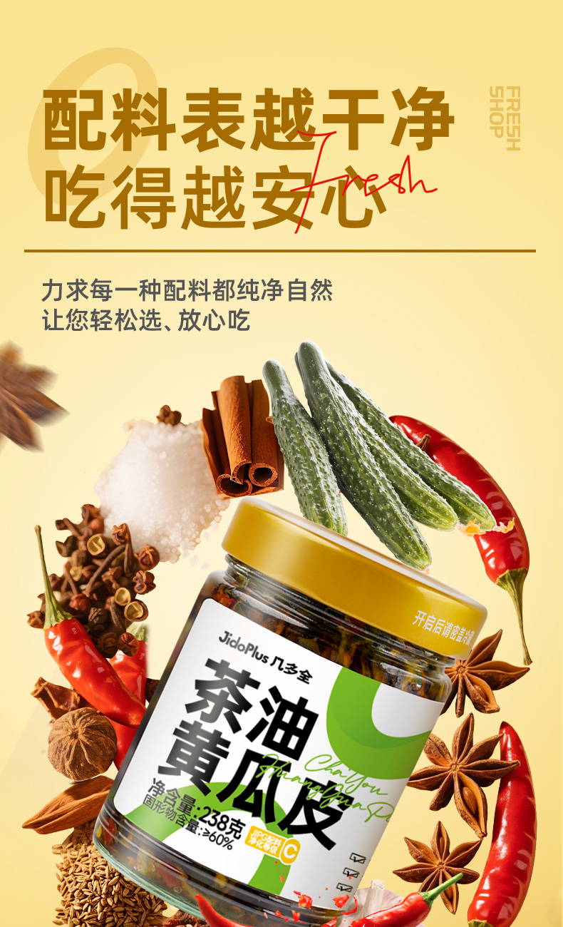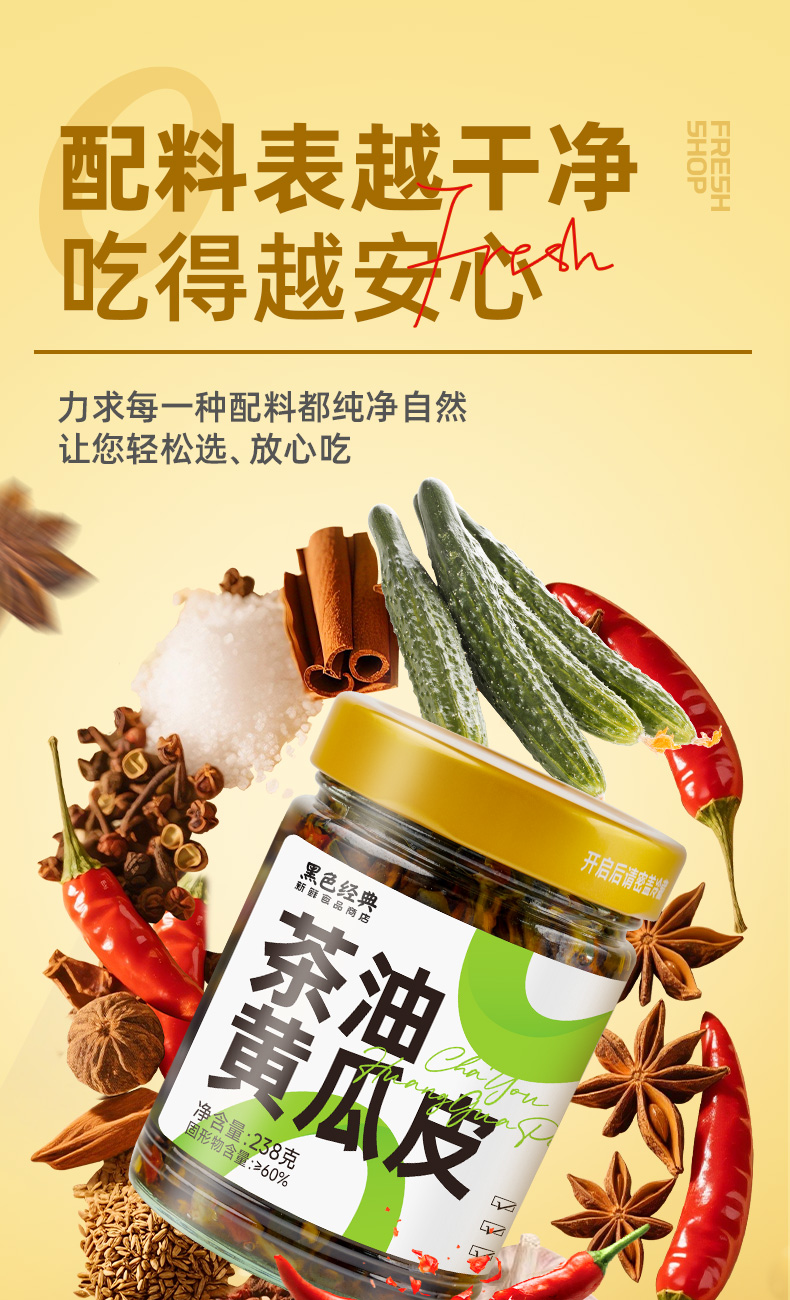 【鲜食】黑色经典茶油黄瓜皮238g/瓶 脆爽黄瓜 茶油添香