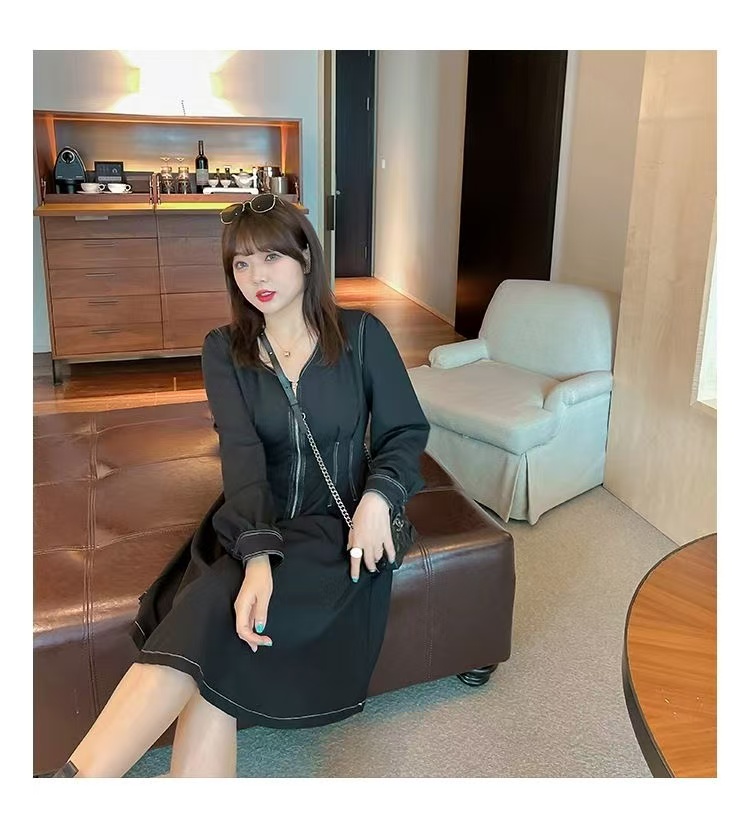 【诗铭洛可】XCA374连衣裙鱼骨明线显瘦连衣裙C4-1
