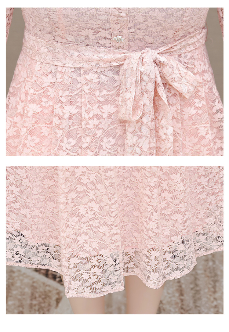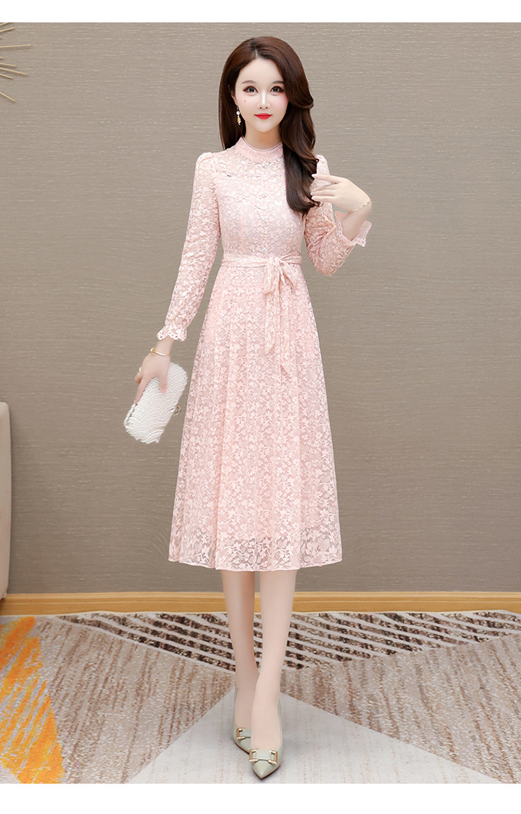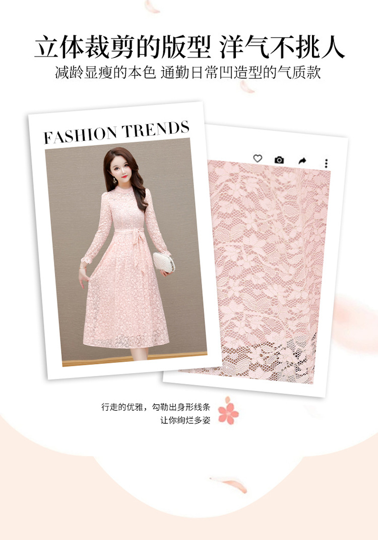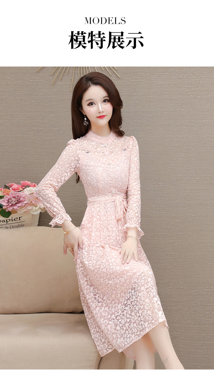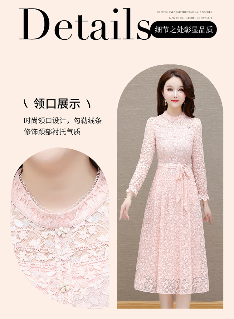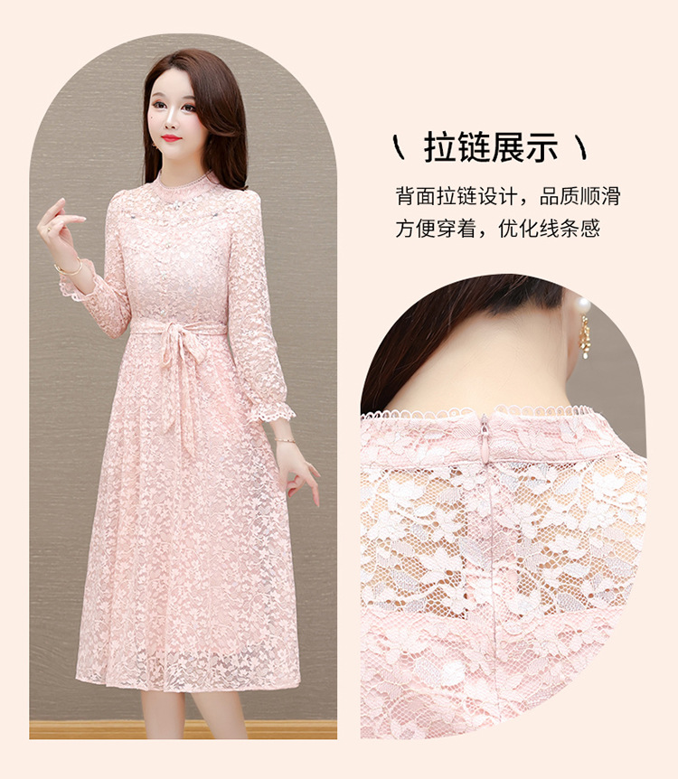 QYM 25A88816-Y浅色蕾丝连衣裙腰带收腰长袖裙 商品图2