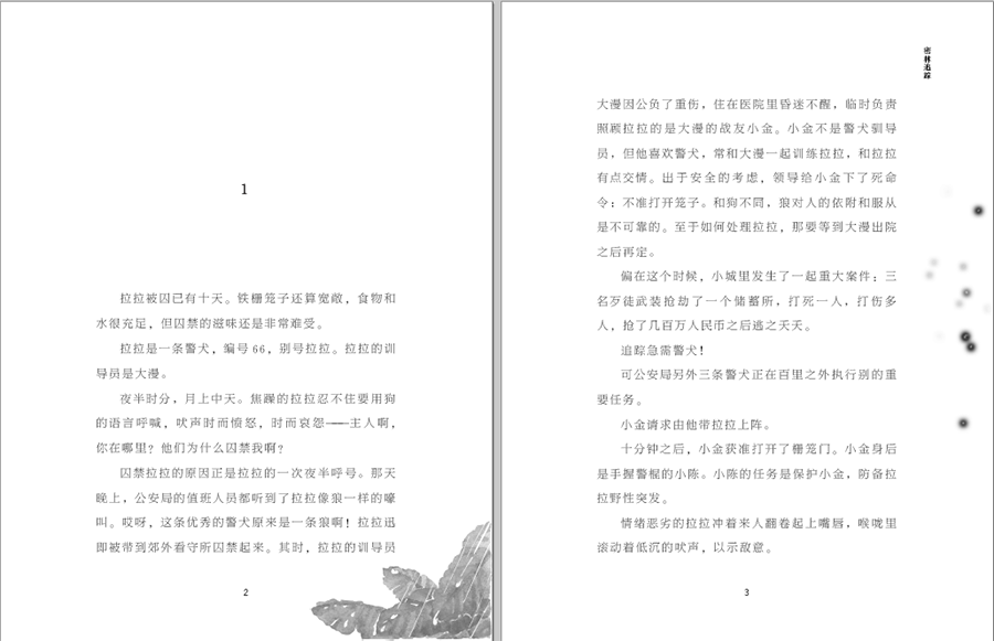 第66号警犬拉拉机智、凶猛,是一条非凡的警犬。可它有四分之一狼的血统。狼性不时在它身体里苏醒、骚动,与狗性和警犬的纪律发生冲突。就因为这个,66号警犬的破案故事格外的惊险。但在一次次的危机中,拉拉与人类建立了超乎寻常的信任。拉拉参与了许许多多的案件,并成为了破案的关键。拉拉聪明,机敏,有着强壮的体魄与灵活敏锐的嗅觉,它能通过点点滴滴的线索,找寻到嫌疑人。 ??秘方秘方》《鹤唳》《绝招》《紫色的猫》《男孩不带伞》《芦荡金箭》《凤凰的山谷》等,散文集《蓝调江南》《田园江南》等,短篇小说集《小巷木屐声》等。