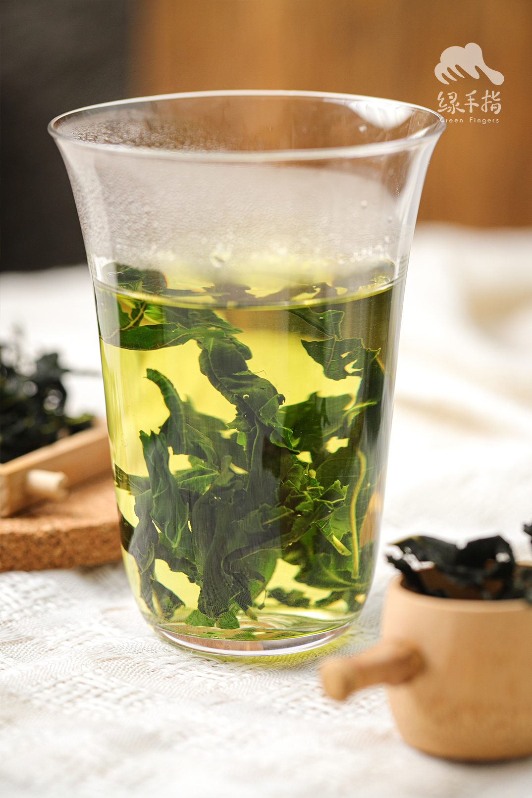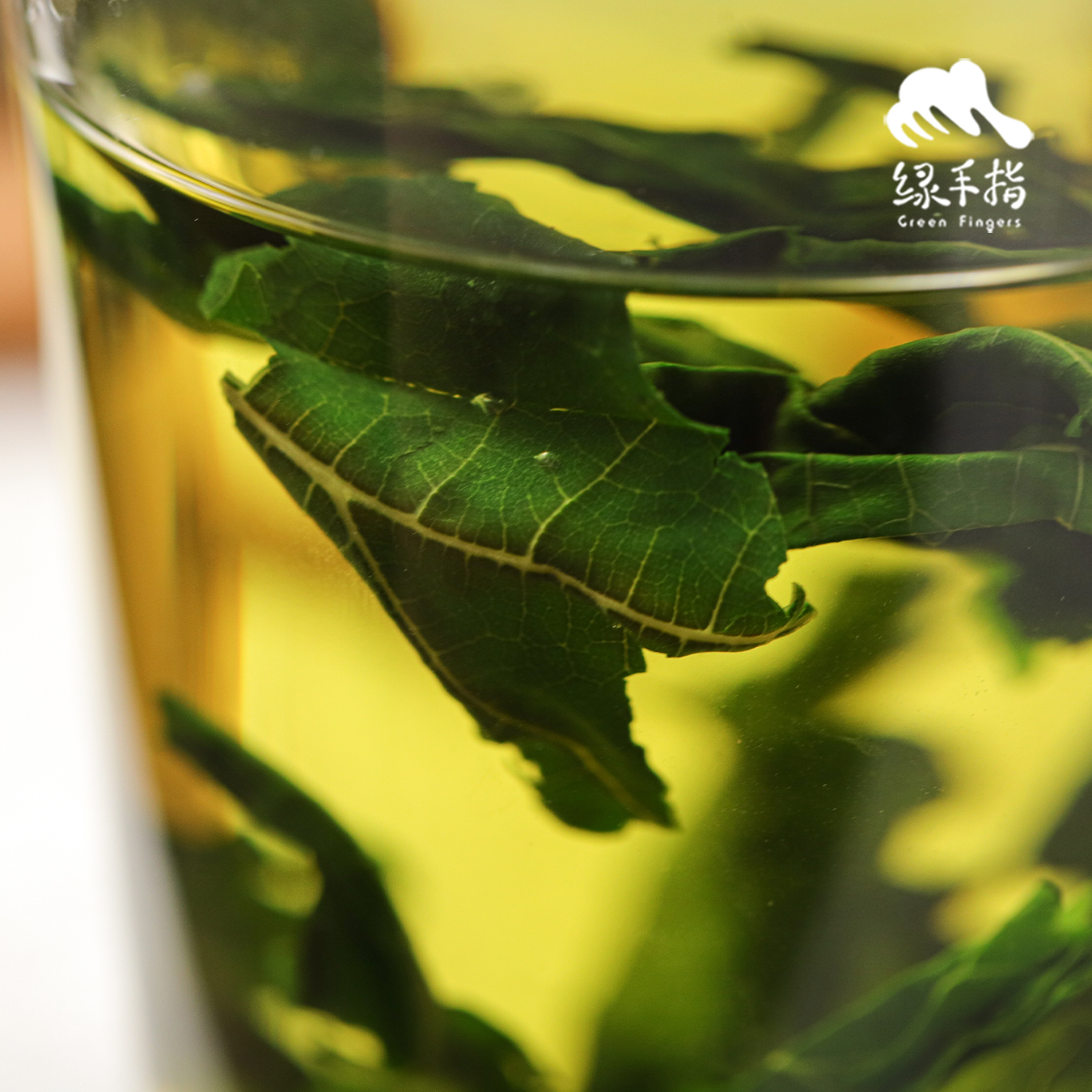 桑叶摘回来嫩叶后,去掉叶柄,经过杀青→揉捻→干燥等制作工艺后,在冲泡时,能够更好的激发出其香气。