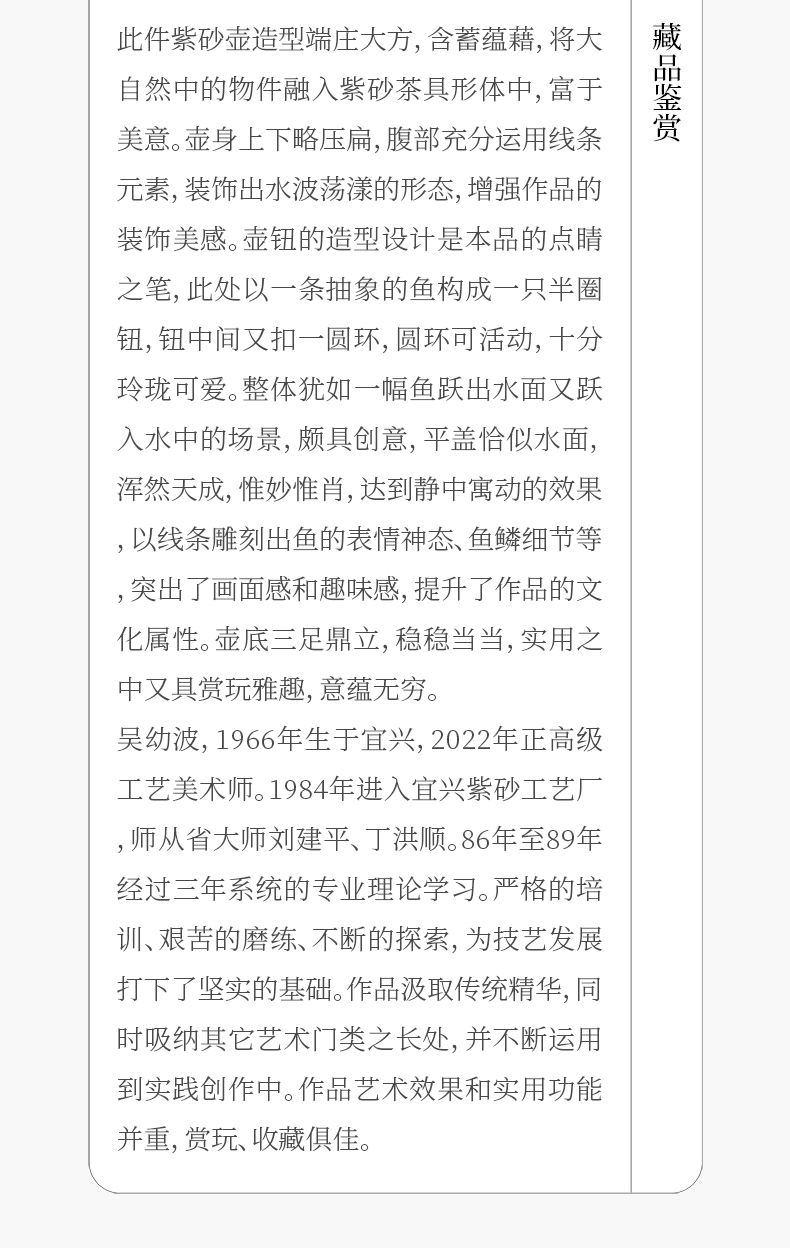 《小鱼欢壶》吴幼波 正高级工艺美术师(研究员级高级工艺美术师)、实力派中青年紫砂艺术家