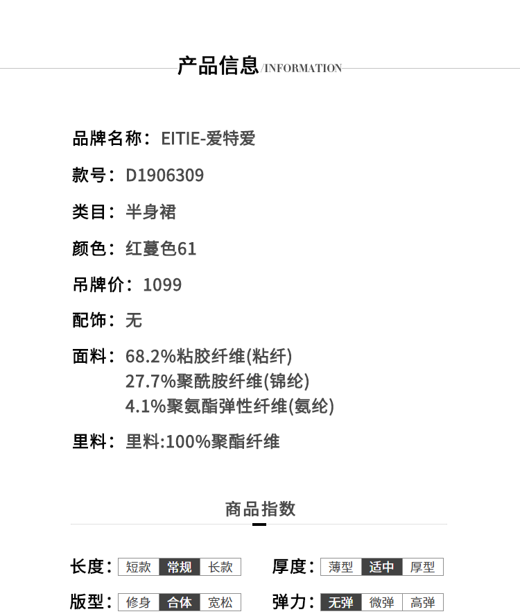 EITIE爱特爱女装秋冬短款职场通勤简洁包臀半身裙a字小清新D1906309
