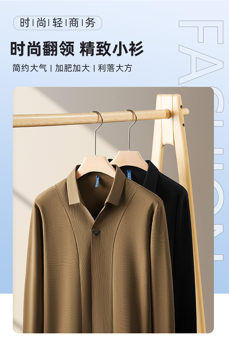 【封口款】【新款DDP】大依优型大码长袖衬衫翻领男装加肥加大体恤大号上衣胖子弹力休闲商务