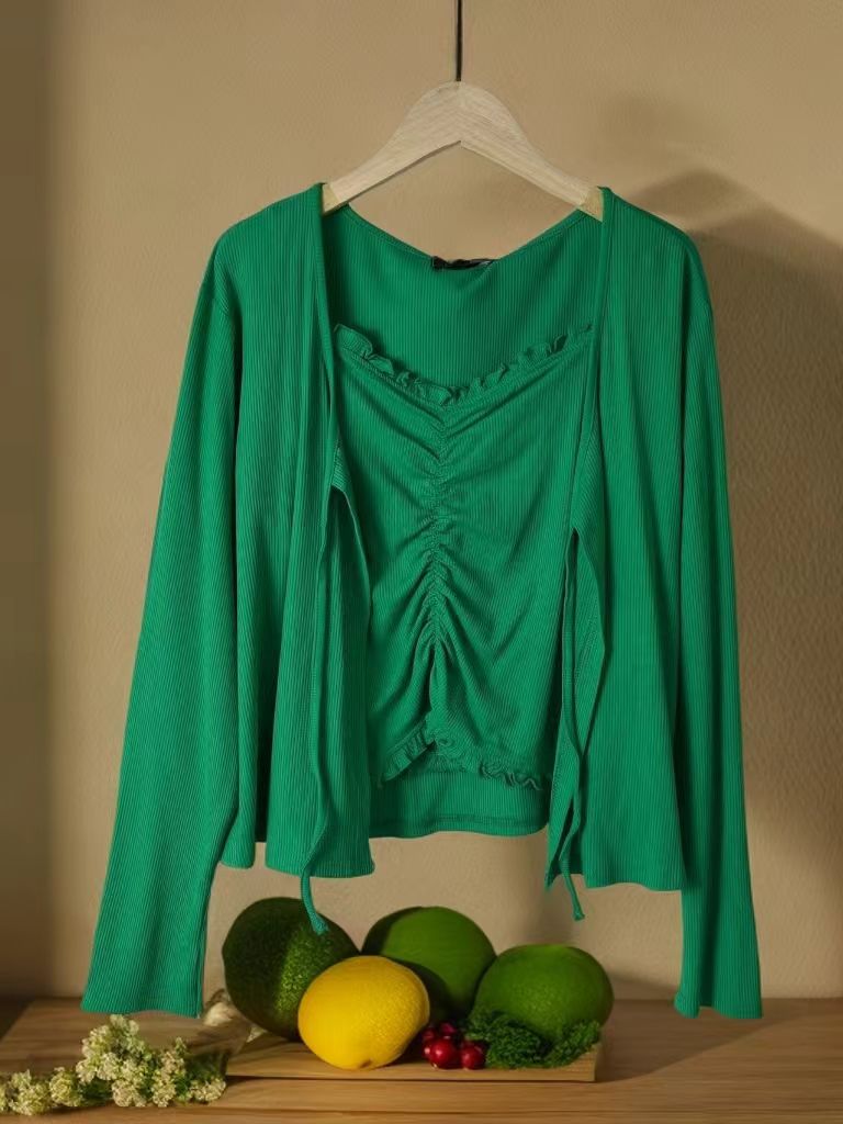 【诗铭洛可】(两件套)XC7585开衫超高弹力吊带➕外搭套装上衣C5-1