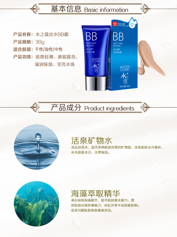 【118元到手2支】水之蔻出水BB霜30g(新旧包装随机发)