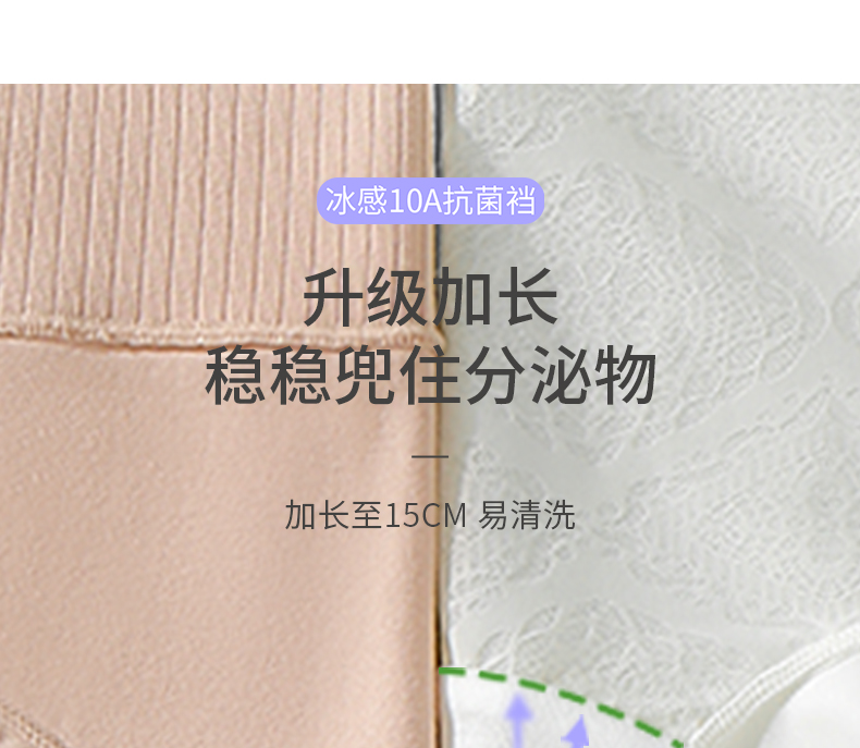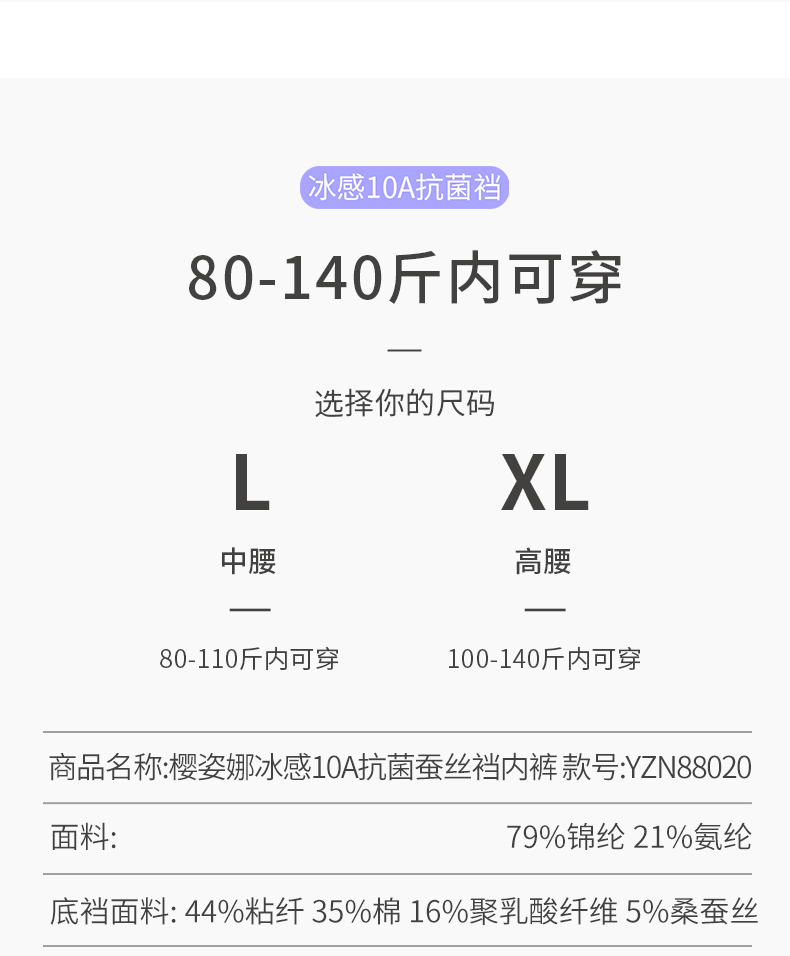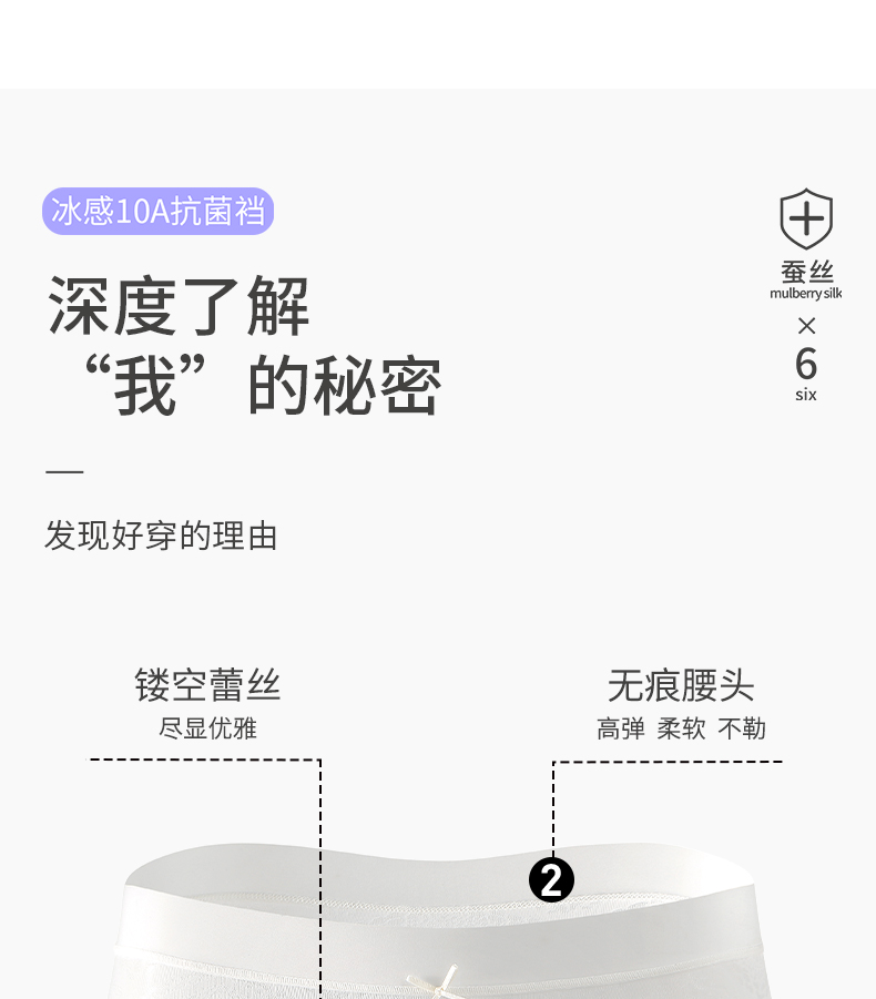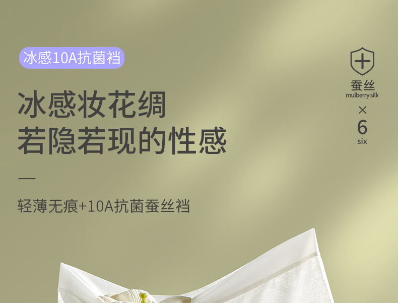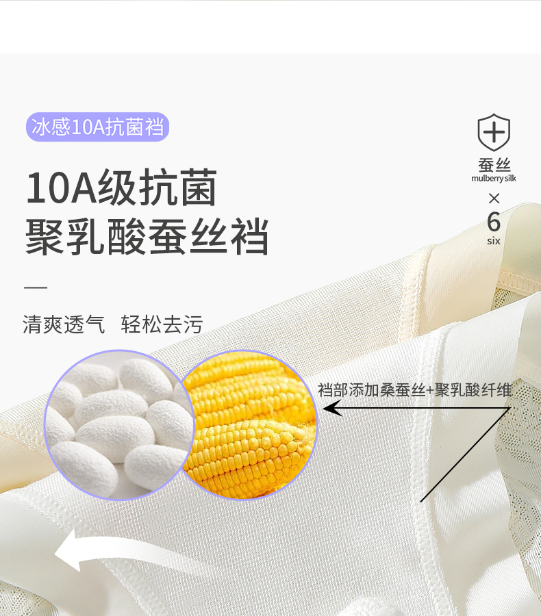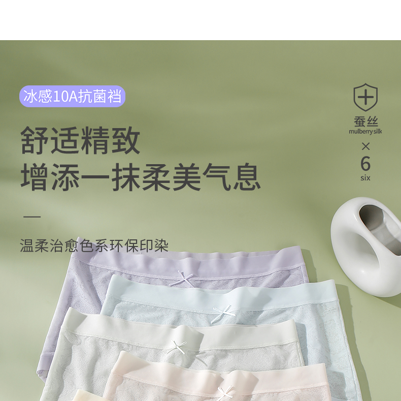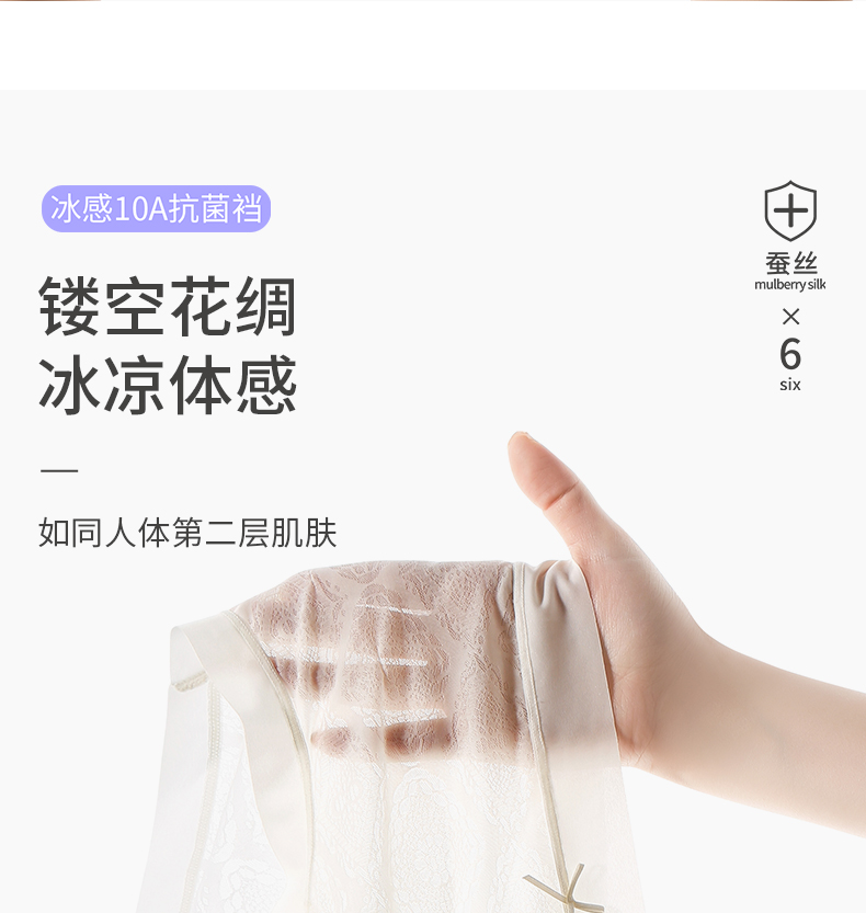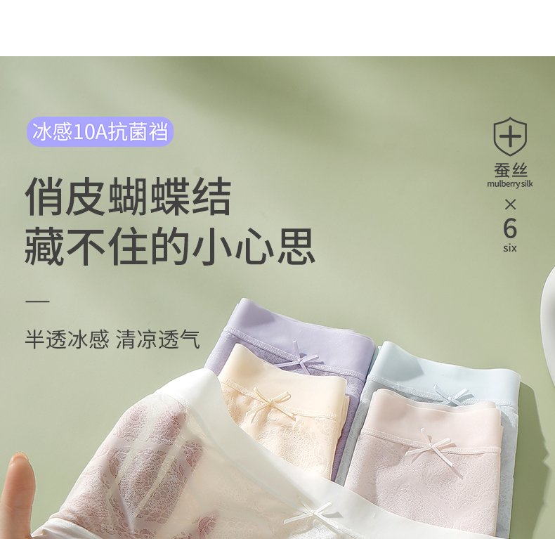 6条装【樱姿娜冰感绸花裤88020,六条装】聚乳酸蕾丝内裤,加长底档,轻薄透气