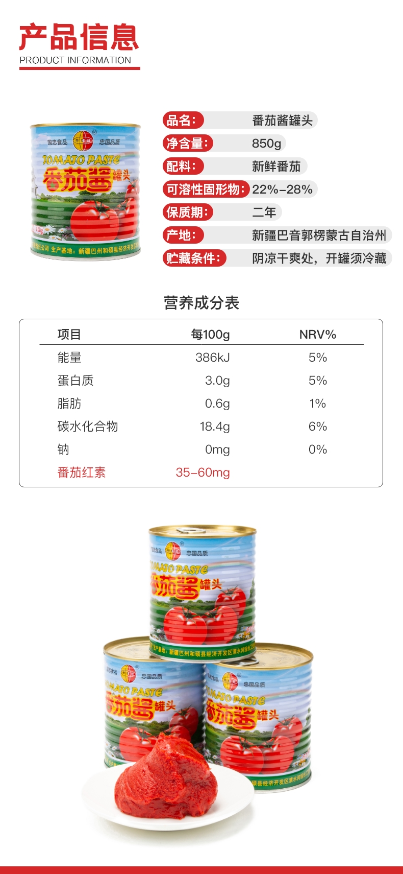 半球红天然番茄酱罐头
