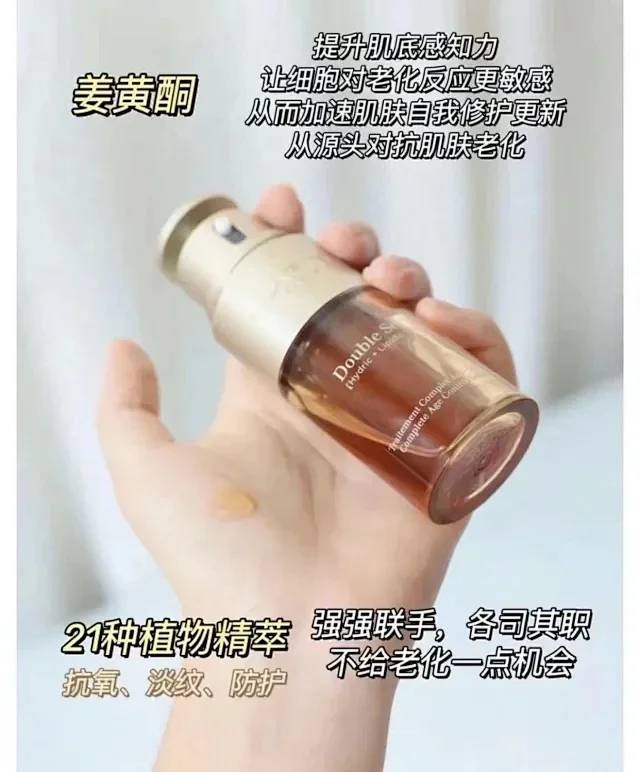 双萃绝对是回购次数最多的初抗老精华之一!解救了经常熬夜之后的皮肤状态,水油质地,润但完全不油,上脸那种细腻的光泽感没人能抗拒。