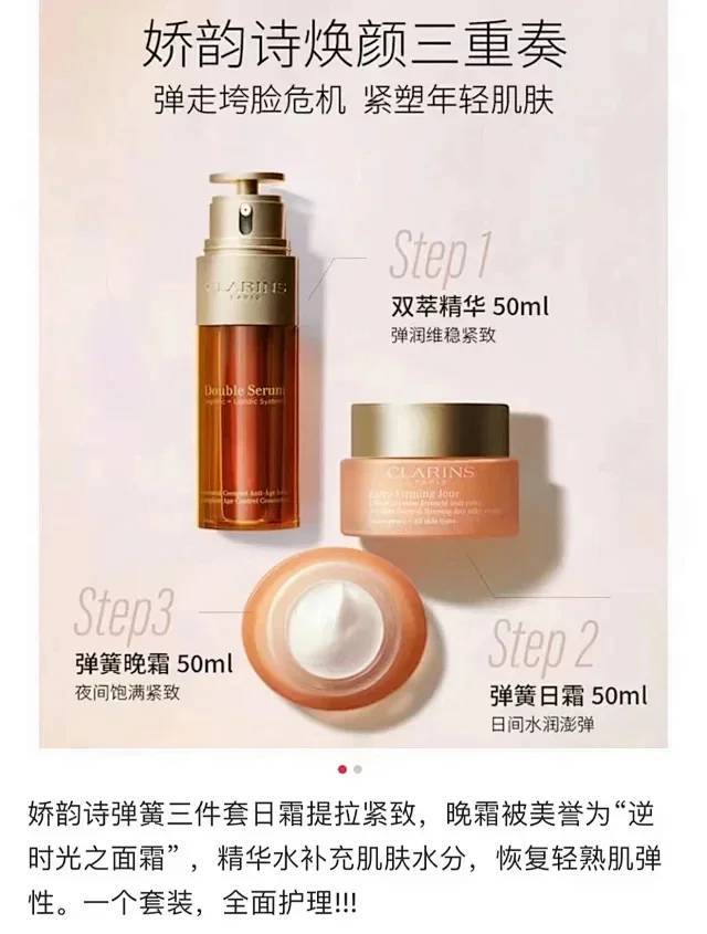 一套包含:双萃精华50ml+弹簧日霜50ml+弹簧晚霜50ml
