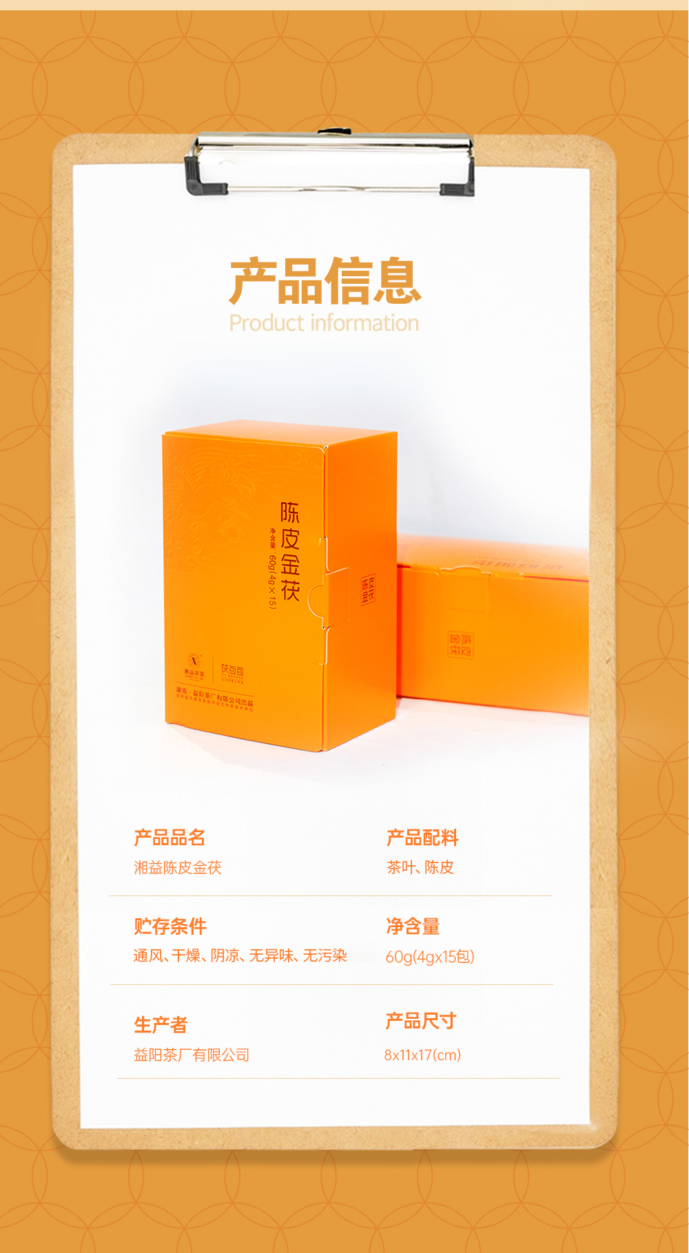 【打工人下午茶】湘益陈皮金茯 随心装60g/盒 独立三角包冲泡方便
