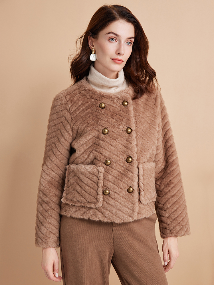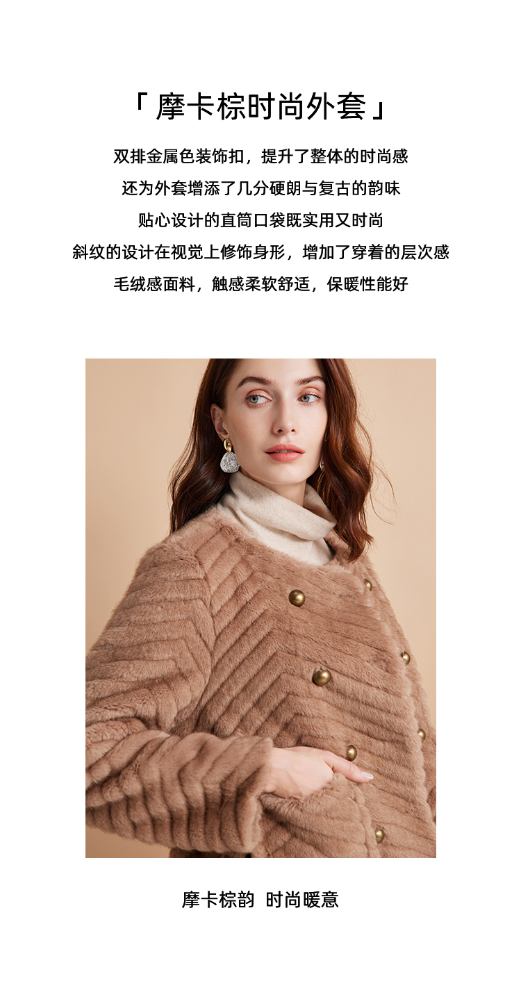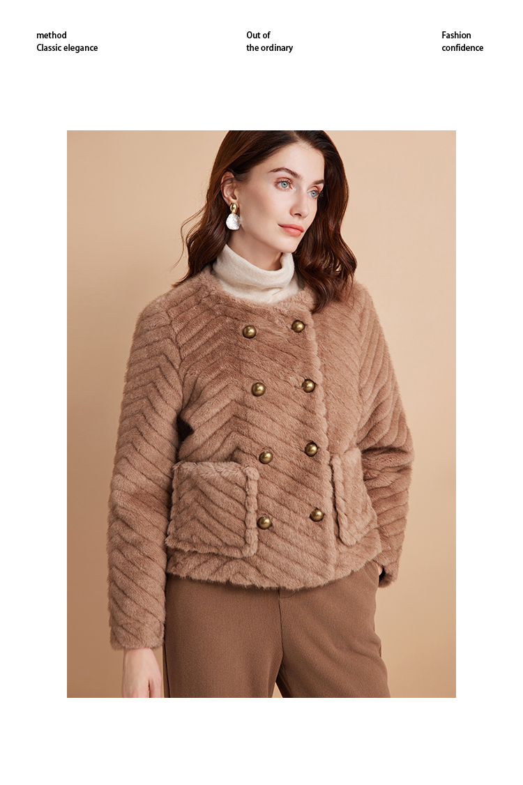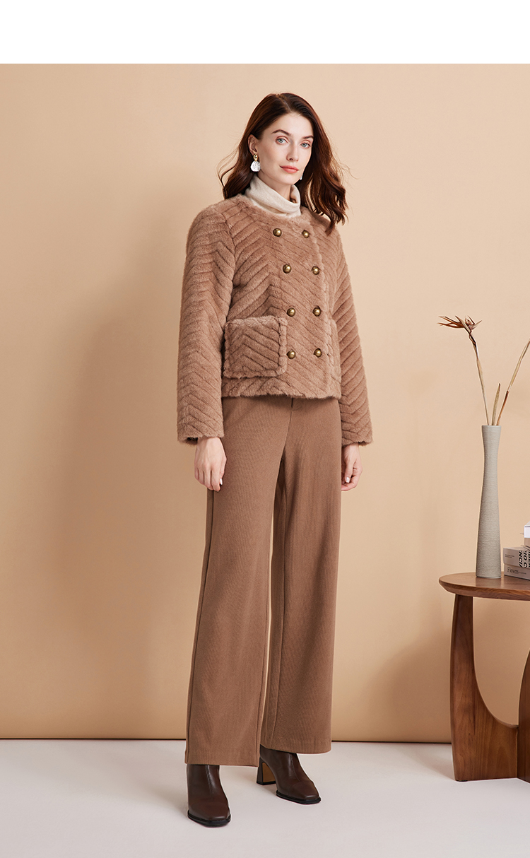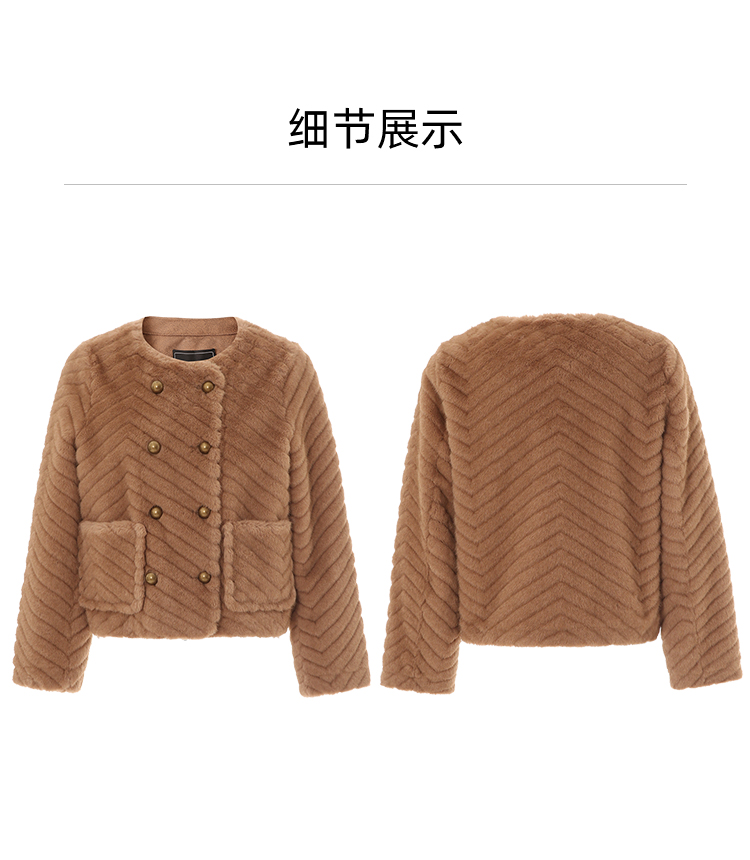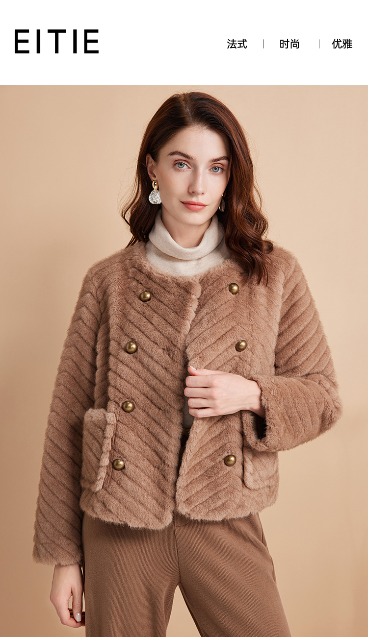 EITIE爱特爱气质双排扣显瘦毛绒短外套冬季新款D2403409
