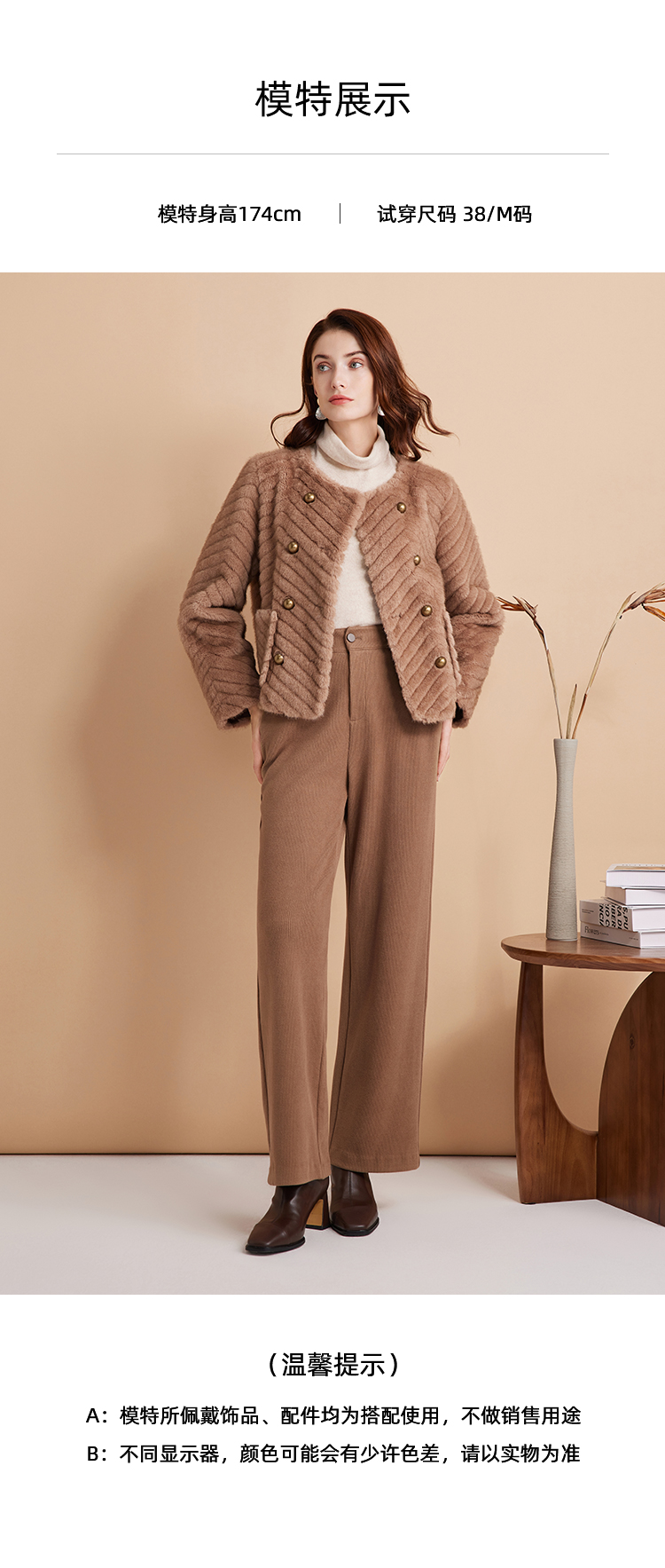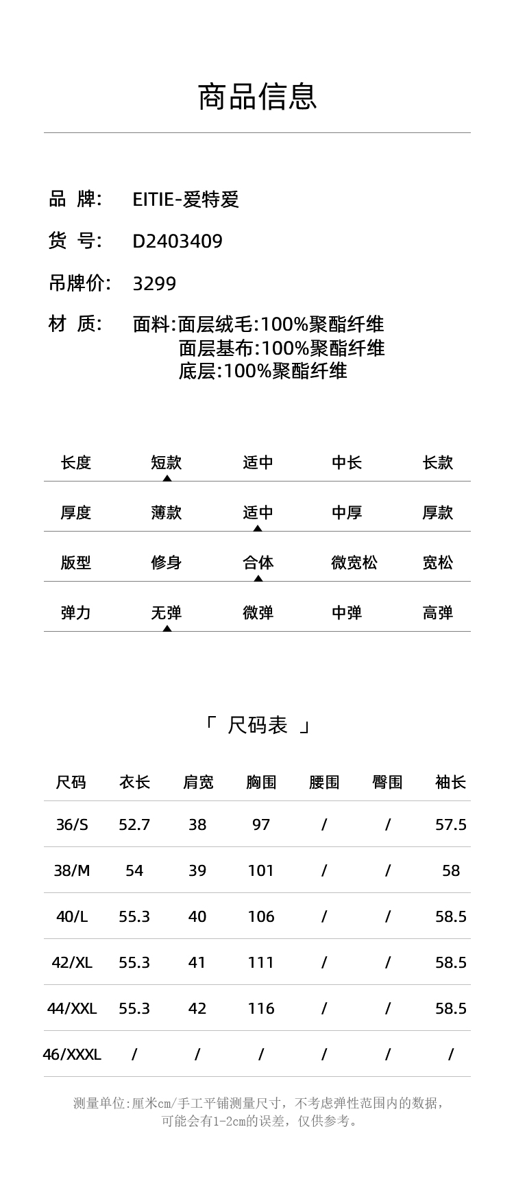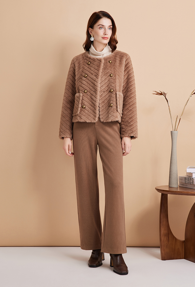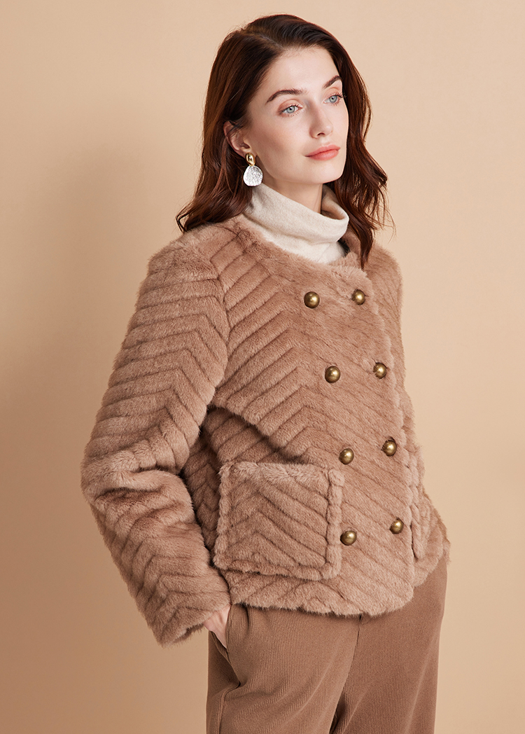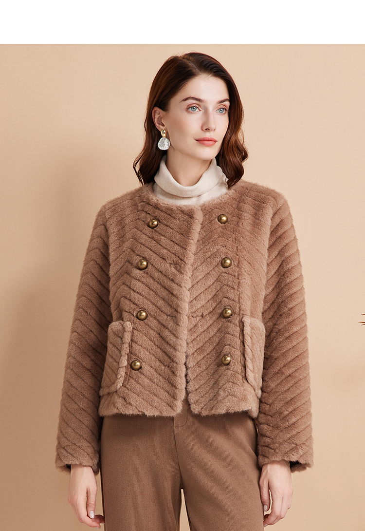 EITIE爱特爱气质双排扣显瘦毛绒短外套冬季新款D2403409
