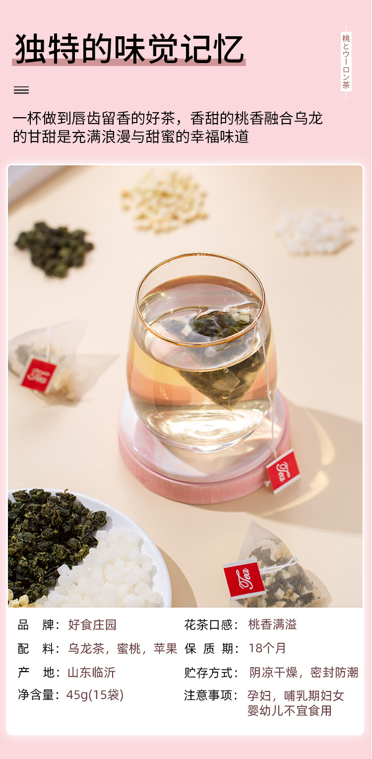【好食庄园】蜜桃乌龙茶 150g 休闲蜜桃味香浓三角泡茶包非姜玫瑰茶