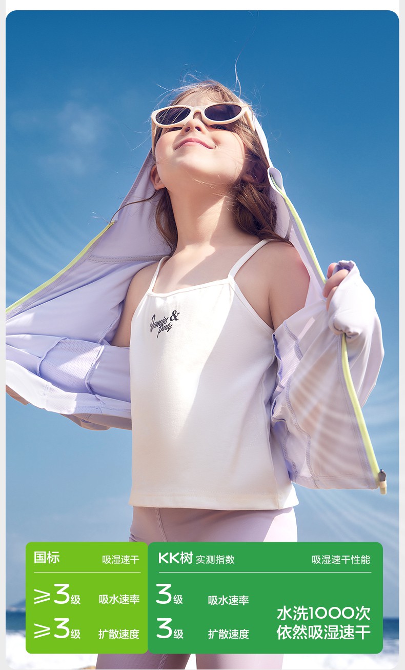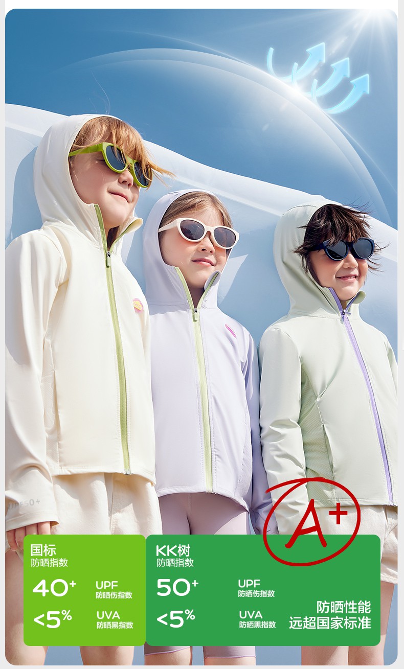 KK树儿童防晒衣原纱防紫外线凉感男童女孩皮肤衣宝宝防晒服2024年薄荷糖冰皮衣