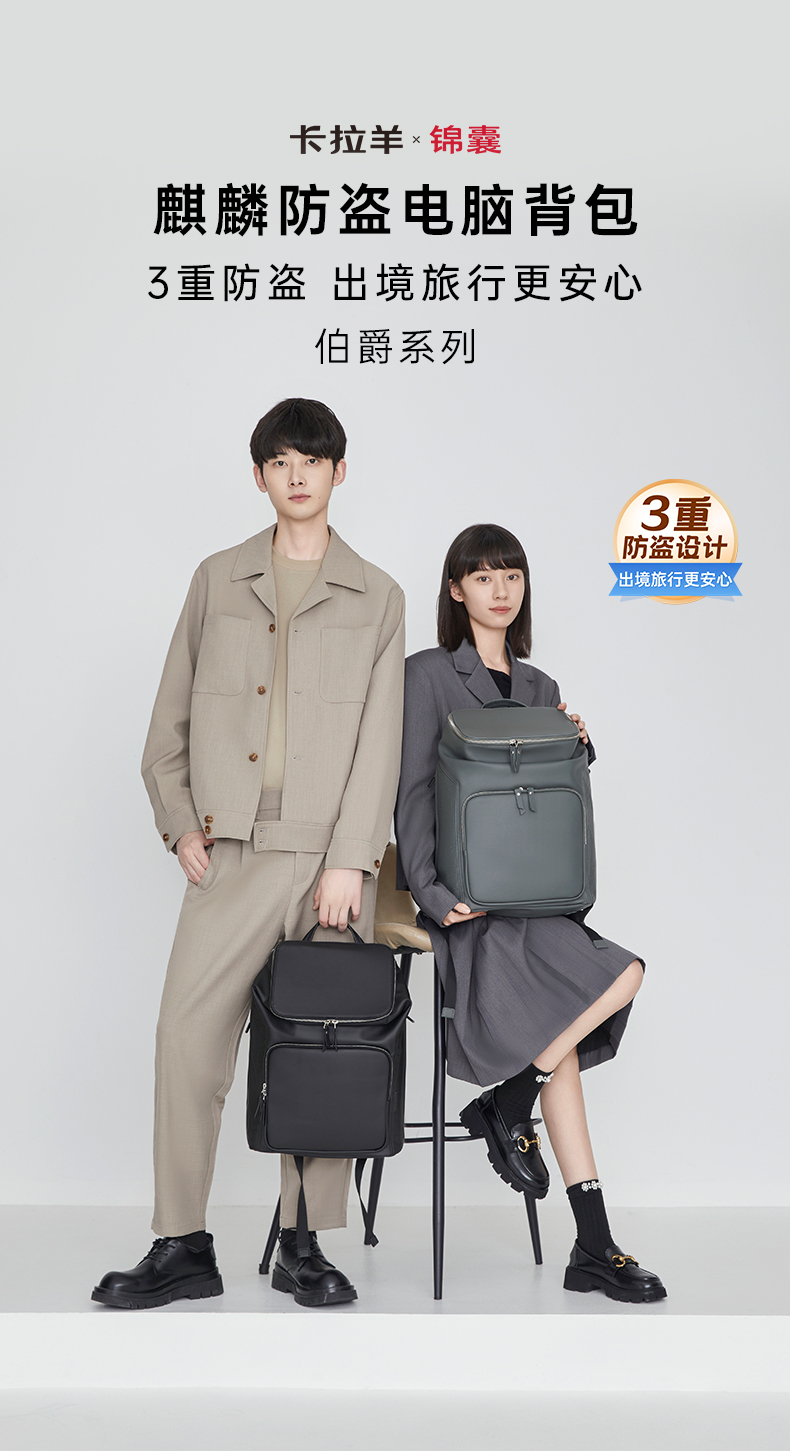 【防盗背包】卡拉羊X锦囊出境旅行防盗电脑双肩包多功能轻便CN5525/L