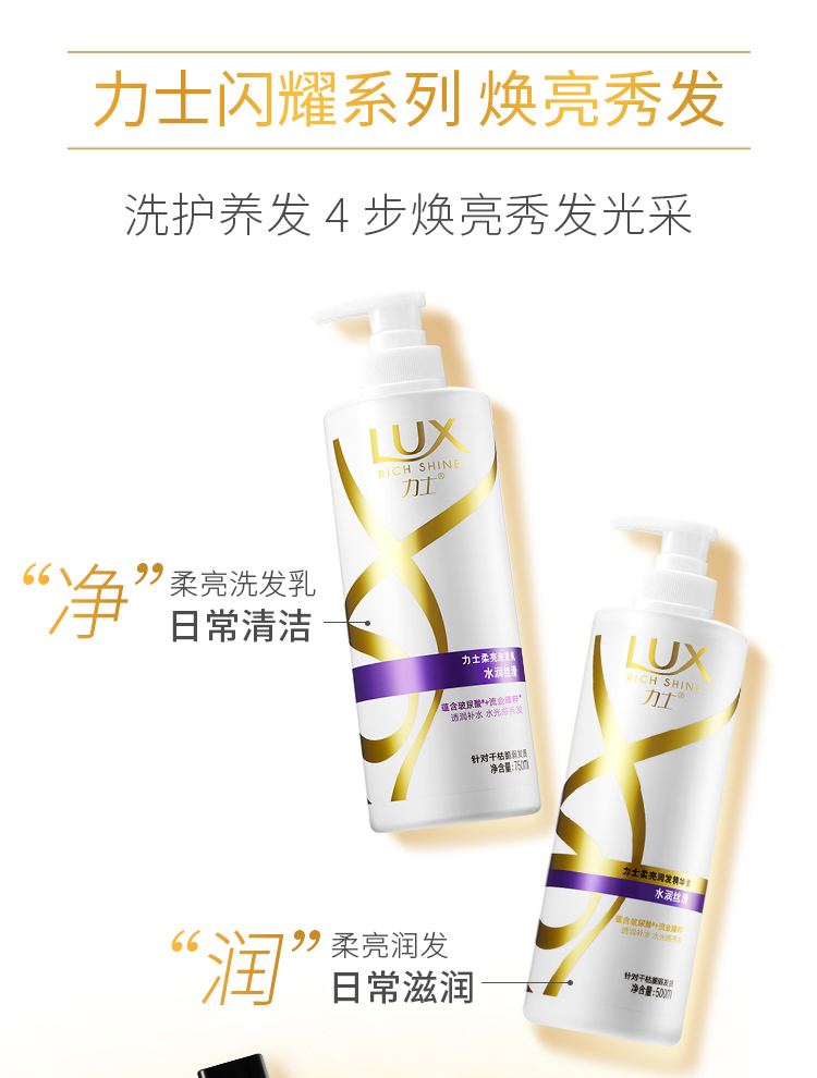 【力士(LUX)】玻尿酸洗护套装 大白瓶 水润丝滑洗发水750ml+护发素160mlx2(电商特供装)