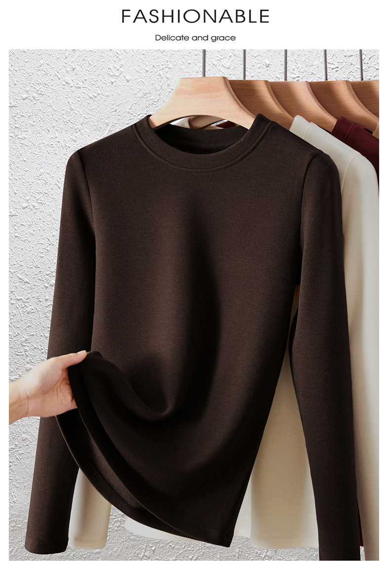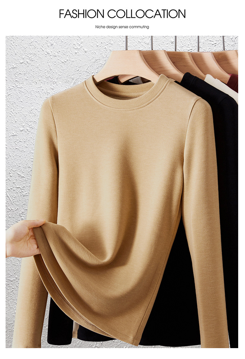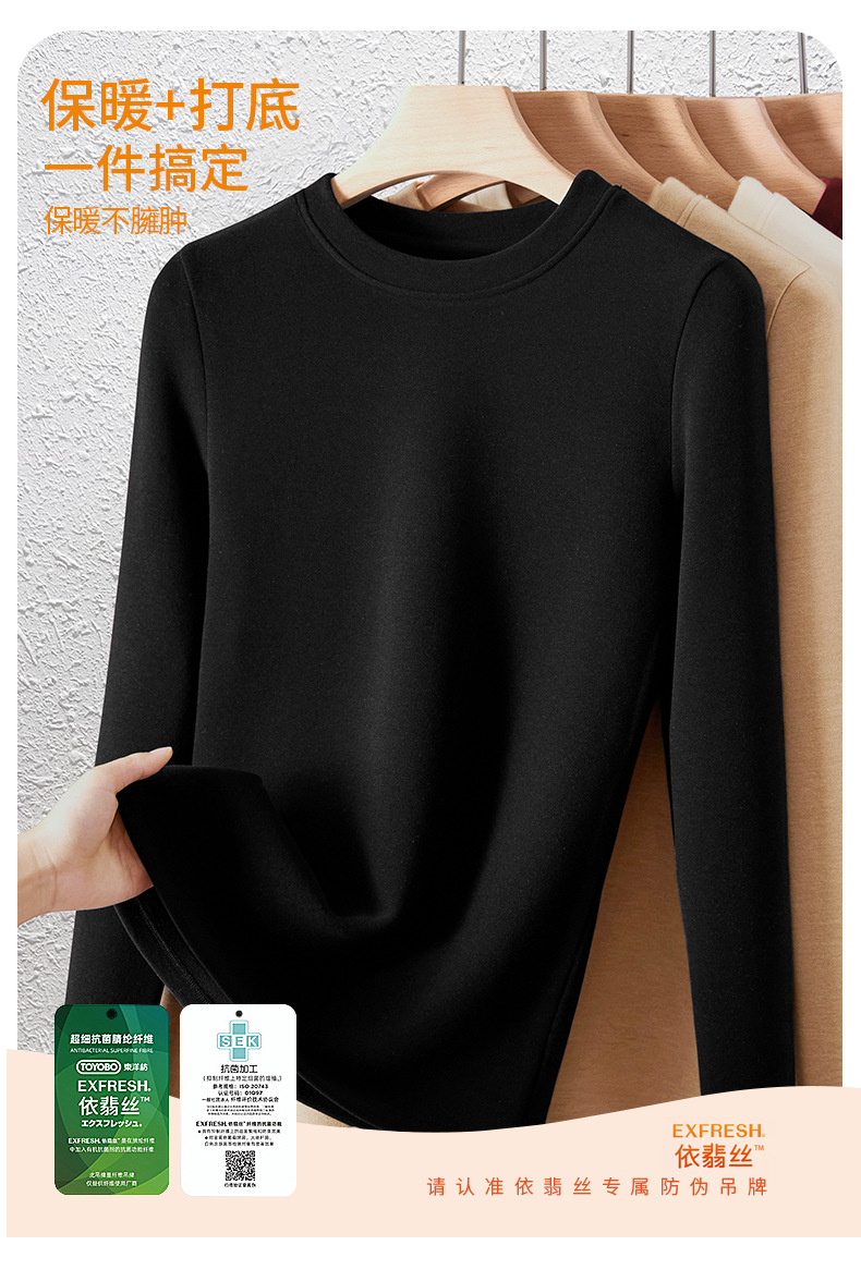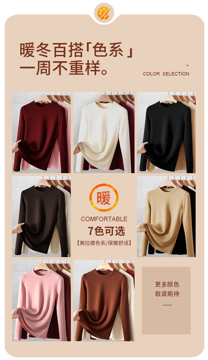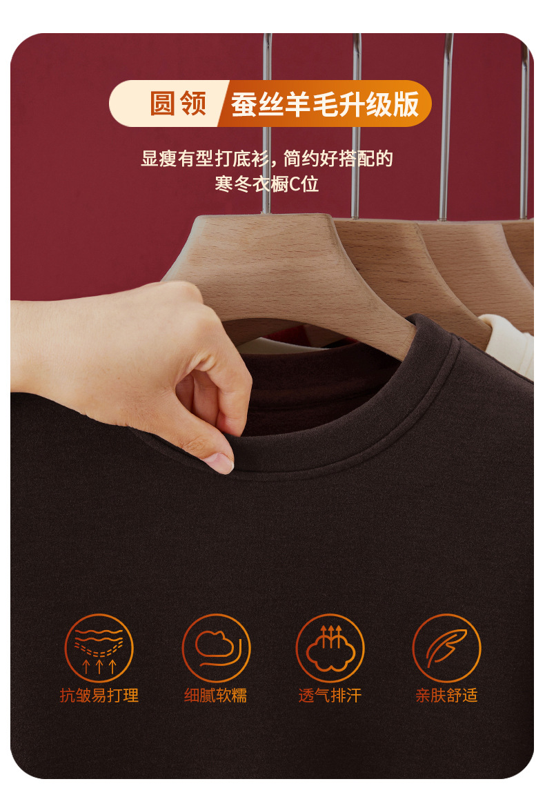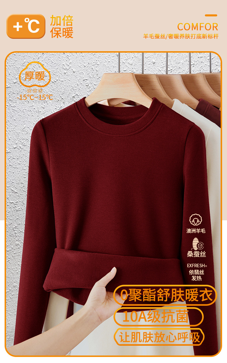 「自j」全新升级【铂金会员128/天猫169/差价41】(04904)洛诗琳羊毛蚕丝圆领肌底衣2025秋冬新款暖绒发热打底上衣