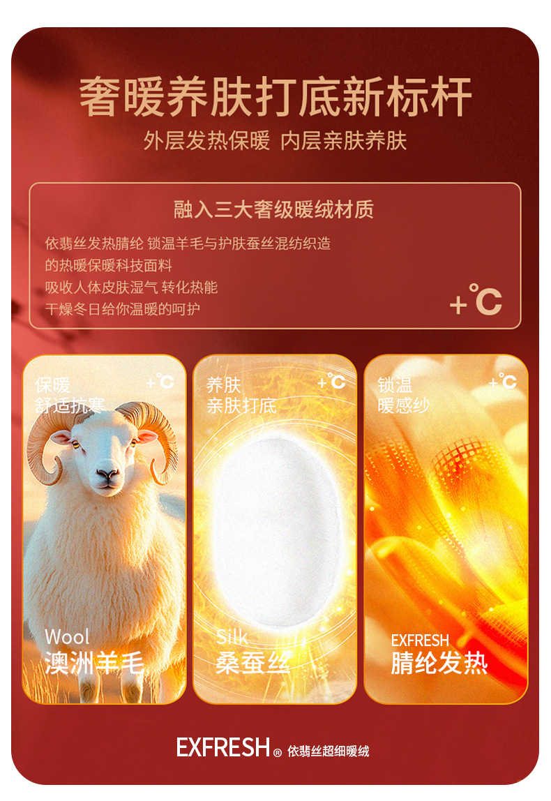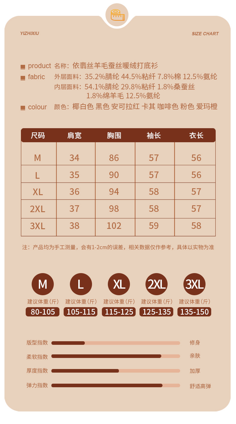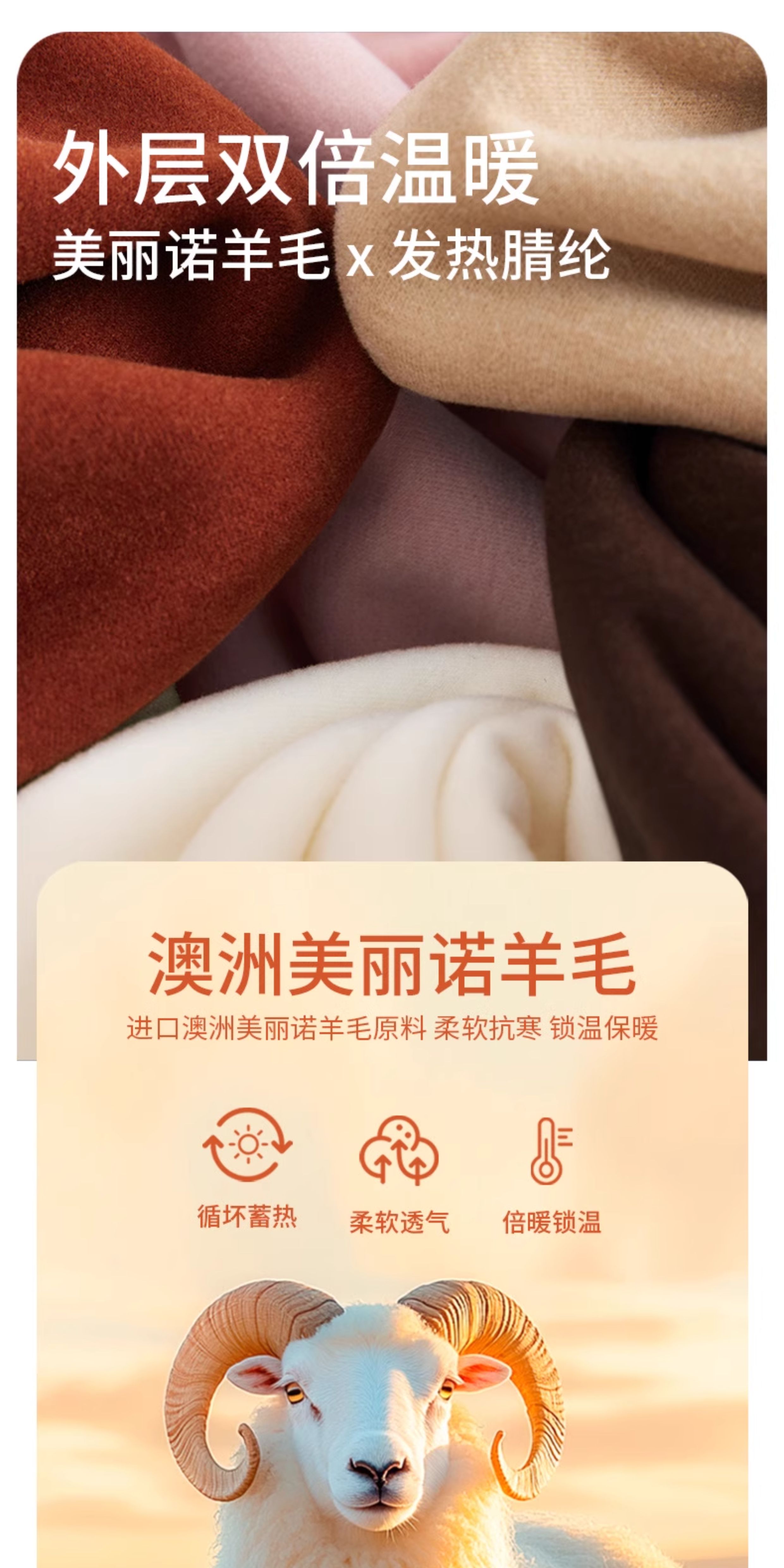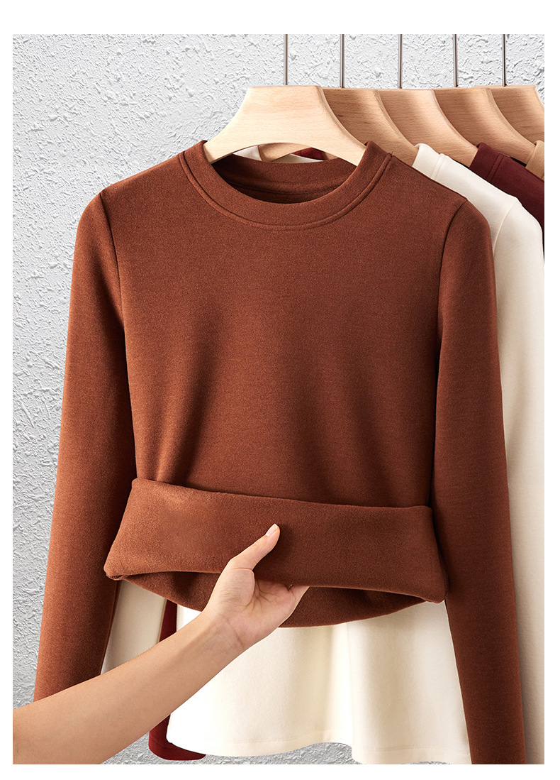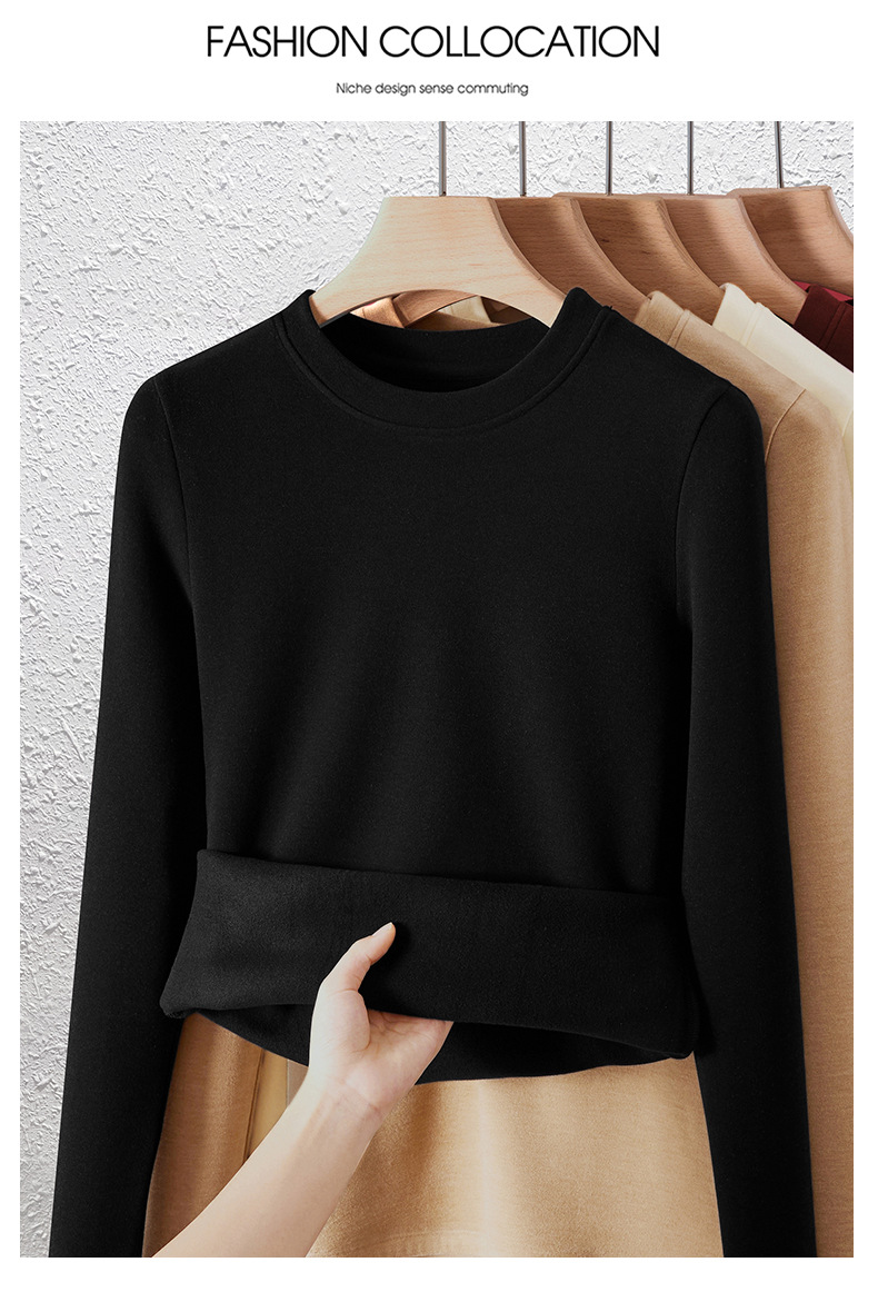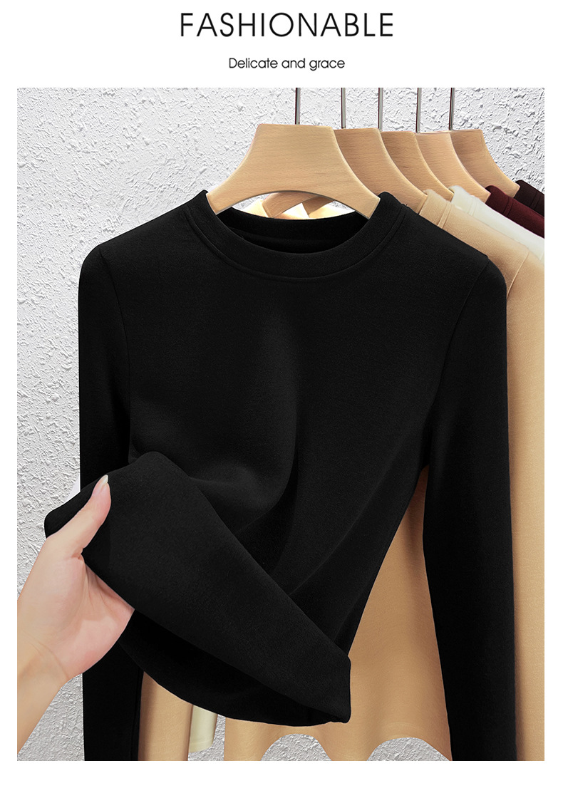 「自j」全新升级【铂金会员128/天猫169/差价41】(04904)洛诗琳羊毛蚕丝圆领肌底衣2025秋冬新款暖绒发热打底上衣
