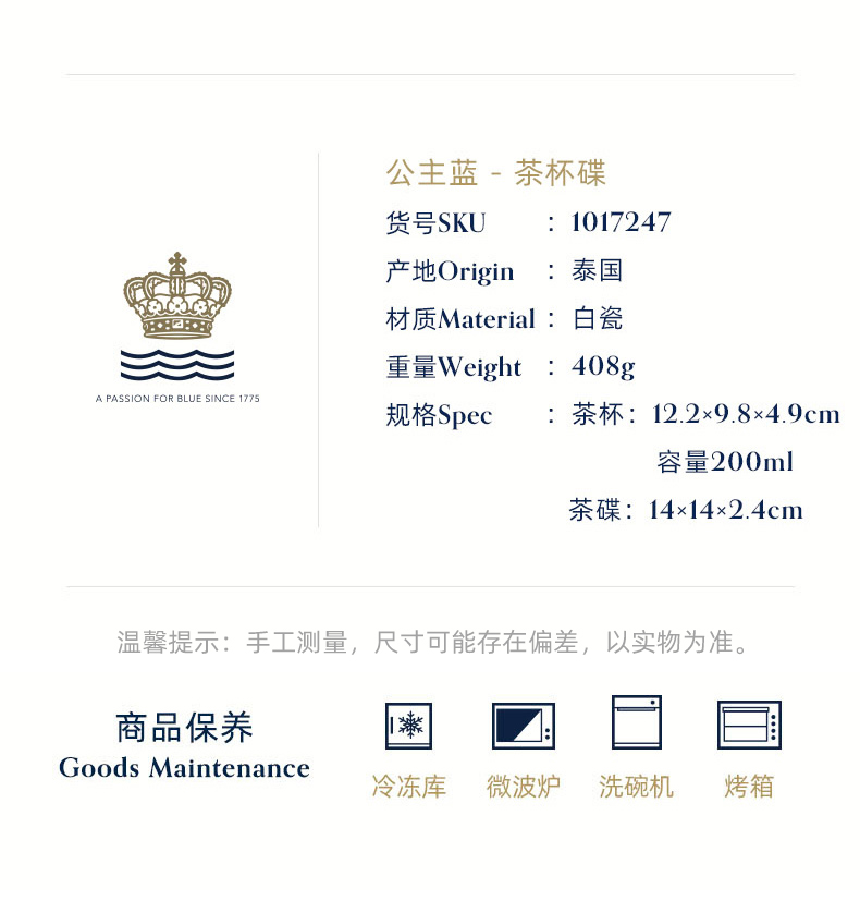 【ROYAL COPENHAGEN】皇家哥本哈根公主蓝茶杯碟咖啡杯碟下水杯礼物