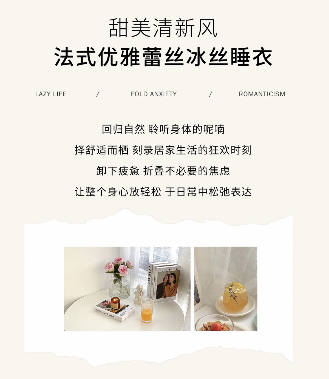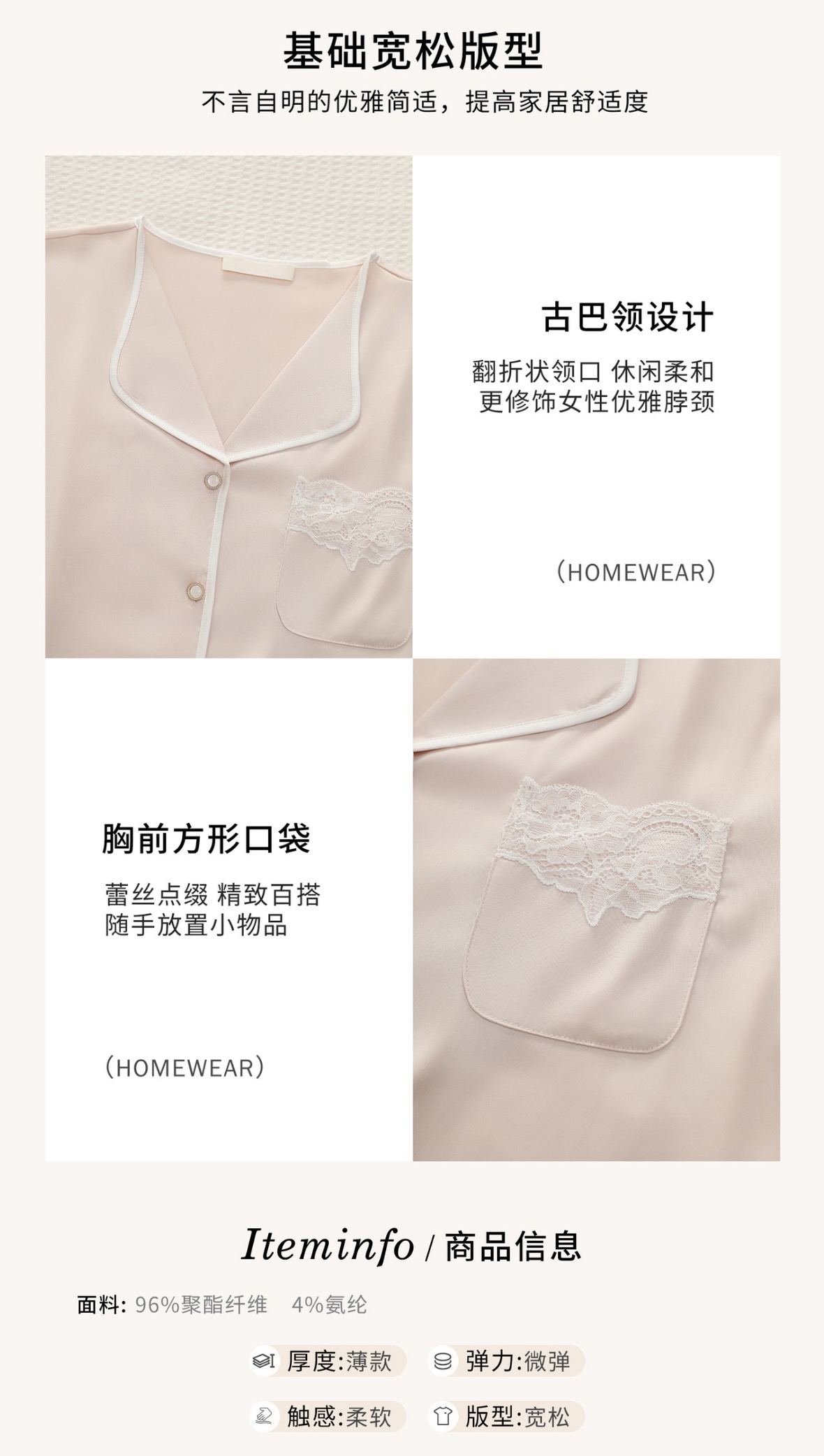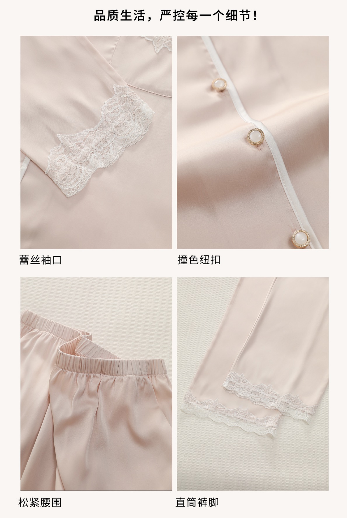 「免费试穿」「维多利亚定制款蕾丝睡衣」洛诗琳2026维多利亚定制款春季新款冰丝+蕾丝花边家居翻领睡衣两件套99727(7天左右发货)