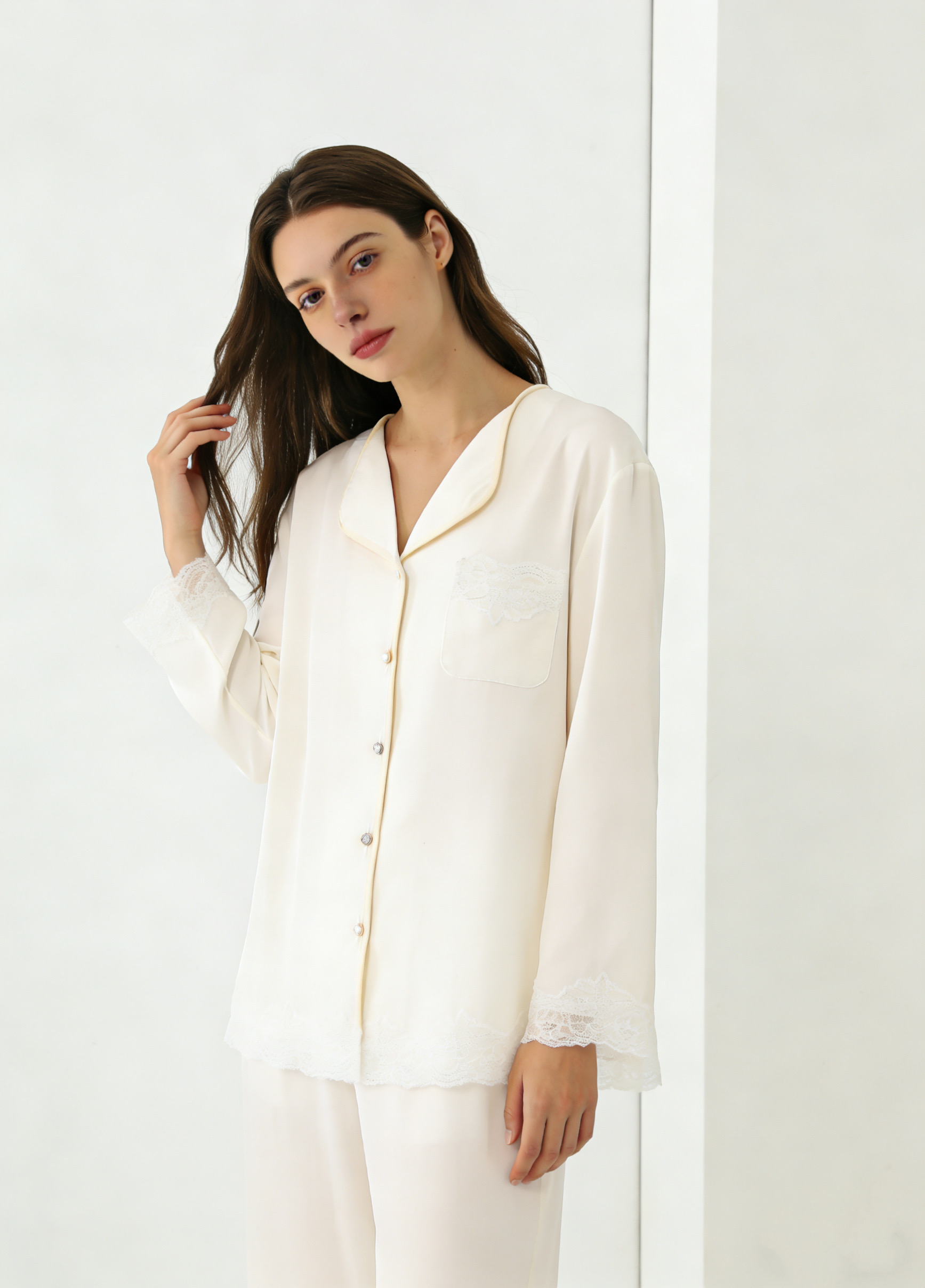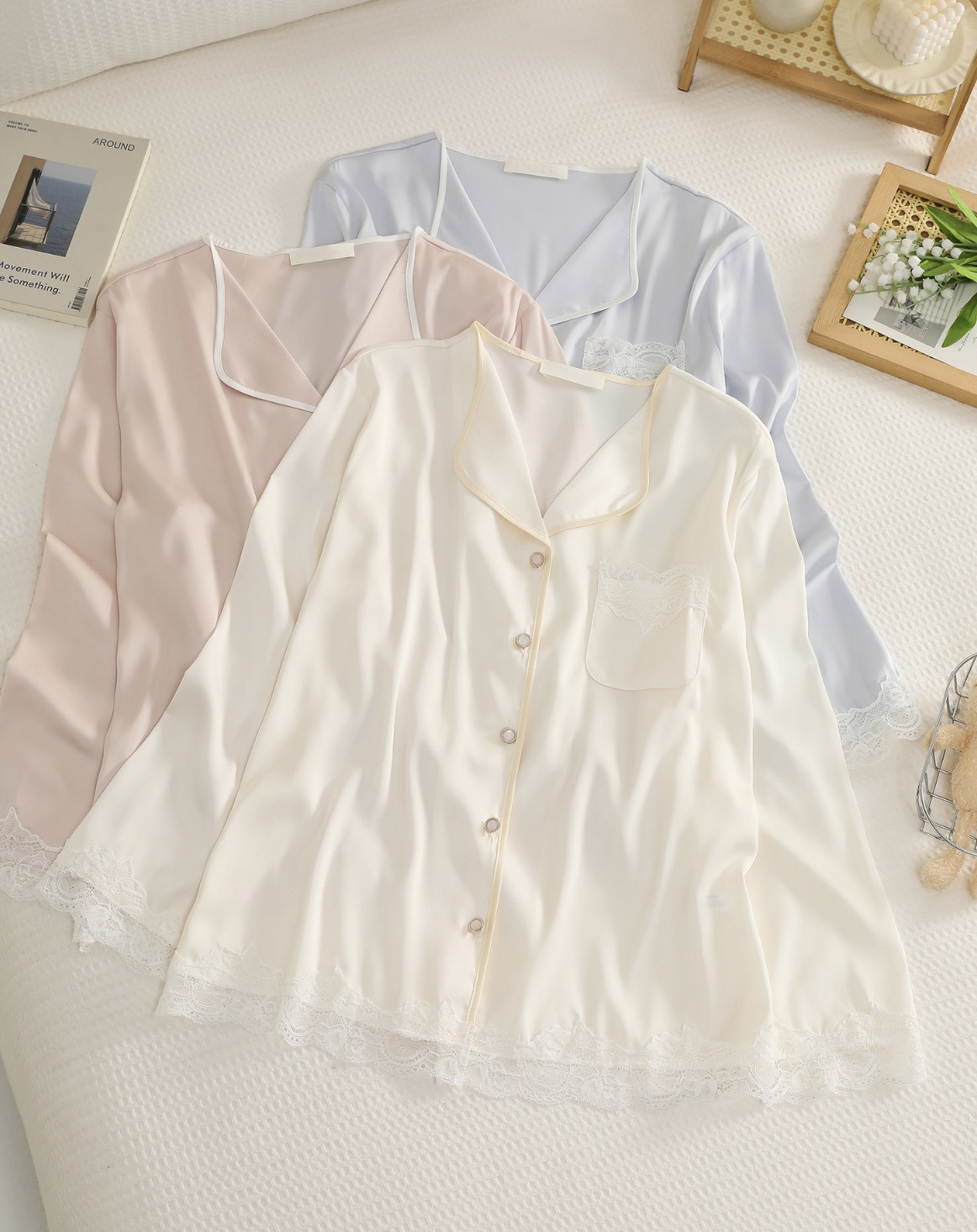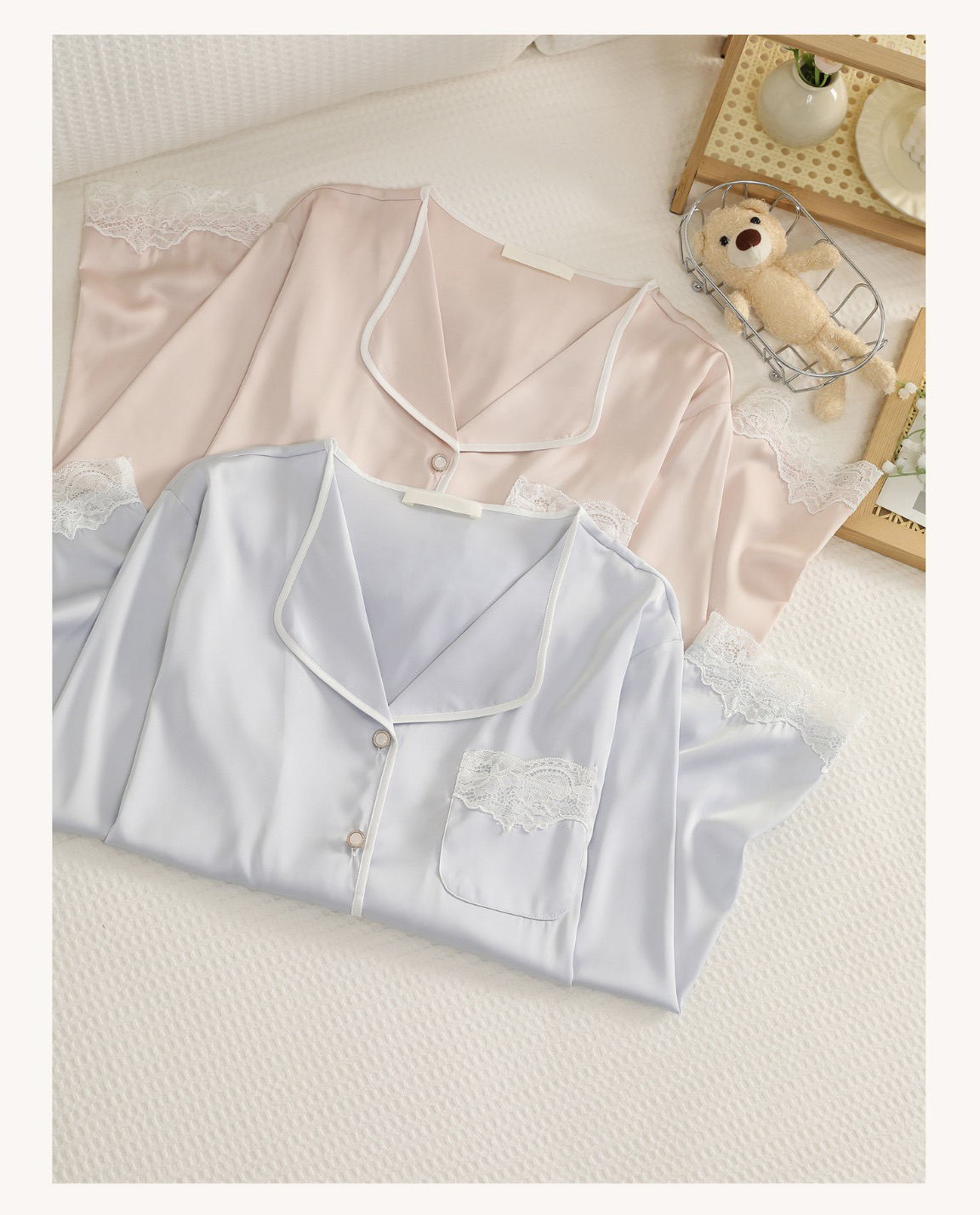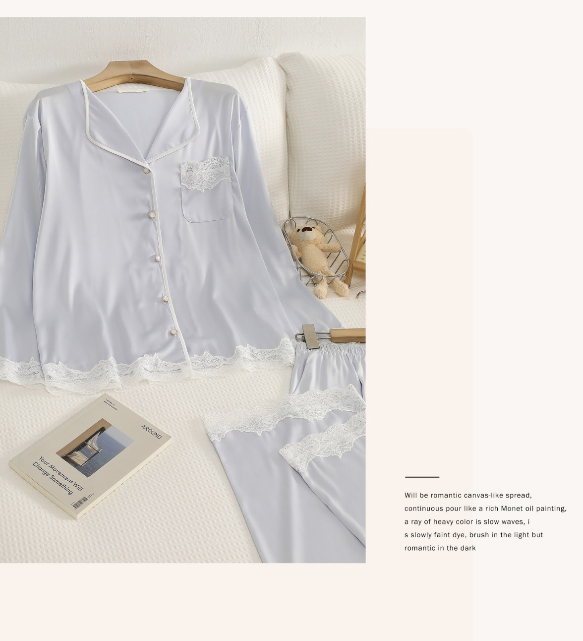 「免费试穿」「维多利亚定制款蕾丝睡衣」洛诗琳2026维多利亚定制款春季新款冰丝+蕾丝花边家居翻领睡衣两件套99727(7天左右发货)
