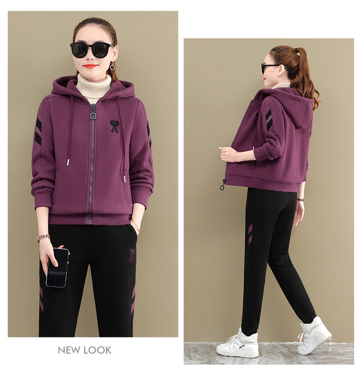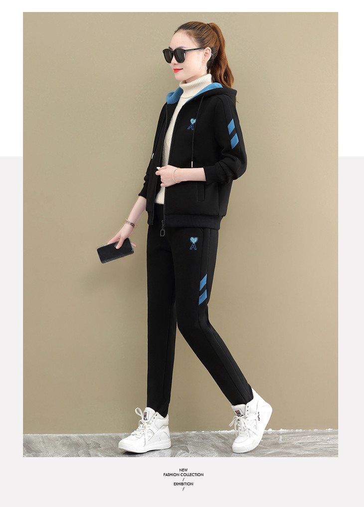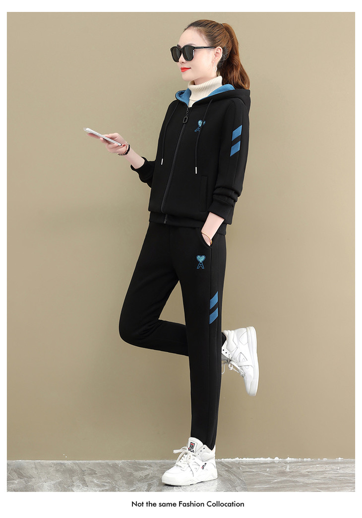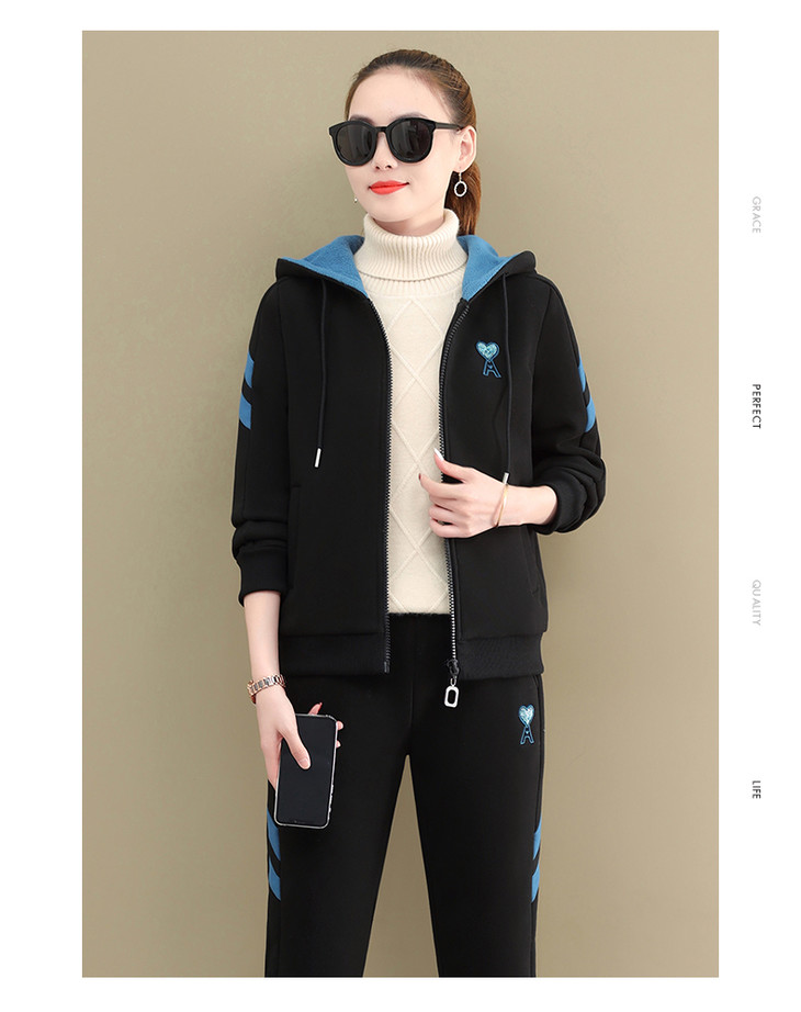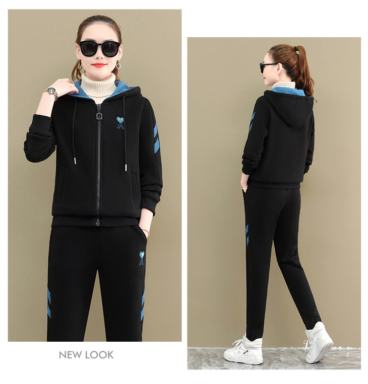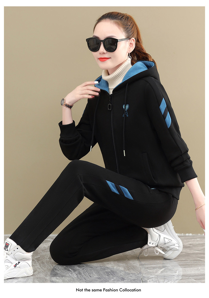 SP-XC-21D3561022新款时尚气质休闲连帽长袖加绒加厚外套运动裤两件套