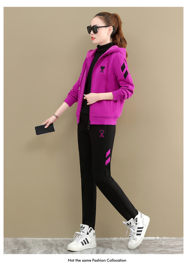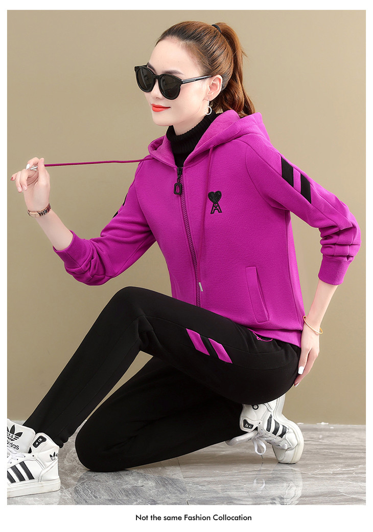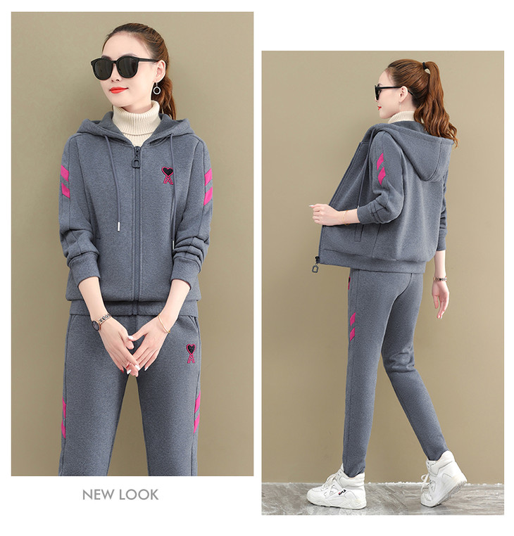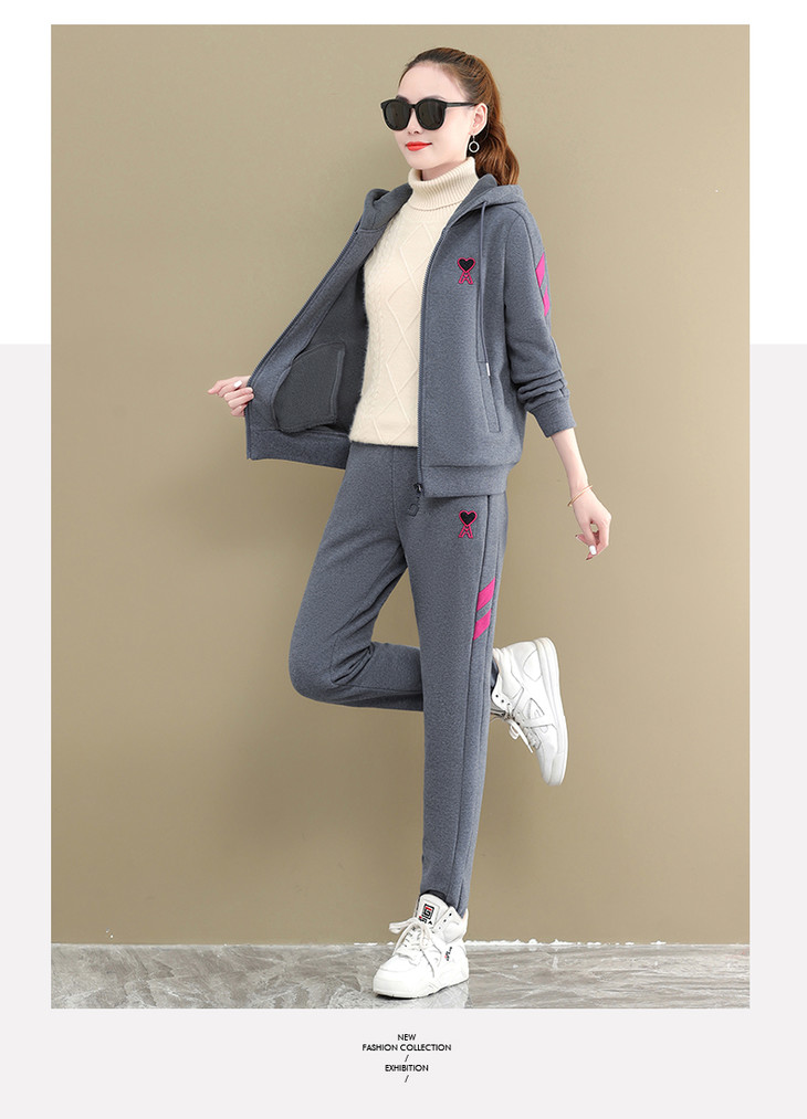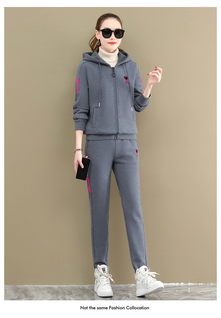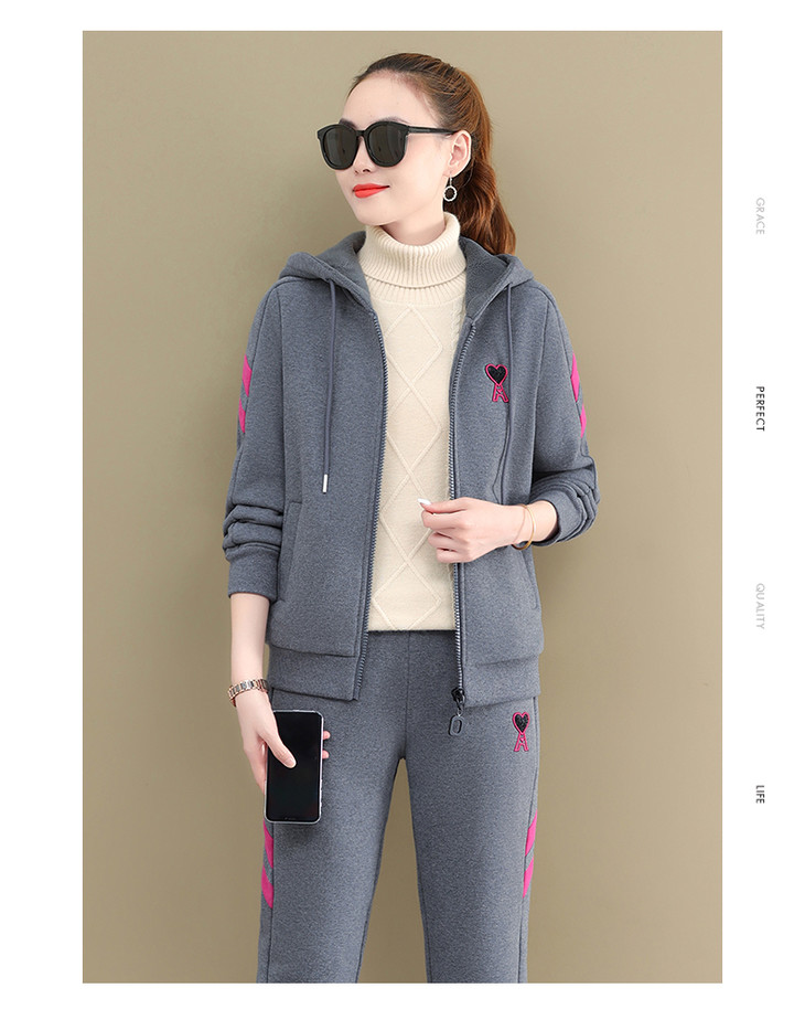 SP-XC-21D3561022新款时尚气质休闲连帽长袖加绒加厚外套运动裤两件套