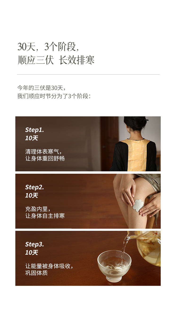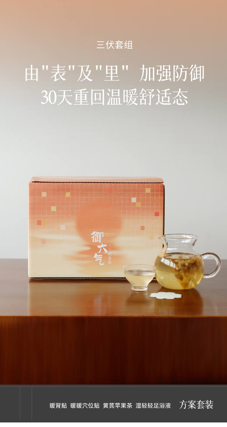 御六气三伏套组 | 2025年三伏季30天排寒方案 穴位贴 暖背贴 黄芪苹果茶 轻湿湿足浴汤 少点盐