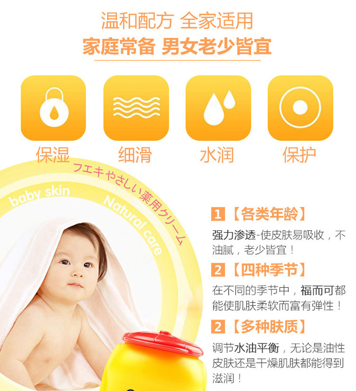 孙俪宝宝同款 一抹即化 安全无添加 日本本土版 fueki保湿霜 小黄鸭面霜儿童护肤霜50g