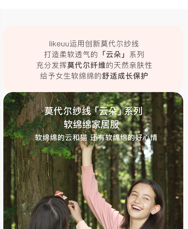 - likeuu是专注于为6~15岁的青少年创造柔软、无束缚的成长体验,以好奇心为灵感的成长发育期贴身衣物品牌。likeuu的产品覆盖内衣、内裤、保暖衣、家居服、运动等品类。