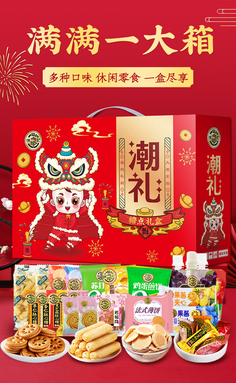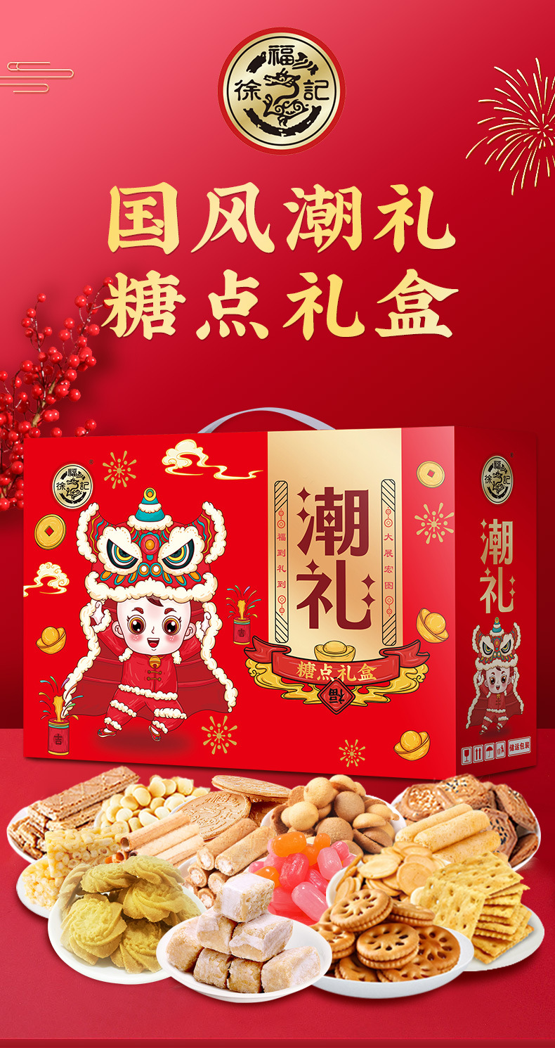 【年货好礼!国风潮礼,糖点礼盒】徐福记新年礼盒 潮礼1250g 糖果饼干糕点多口味零食 春节年货送礼好物-QQ
