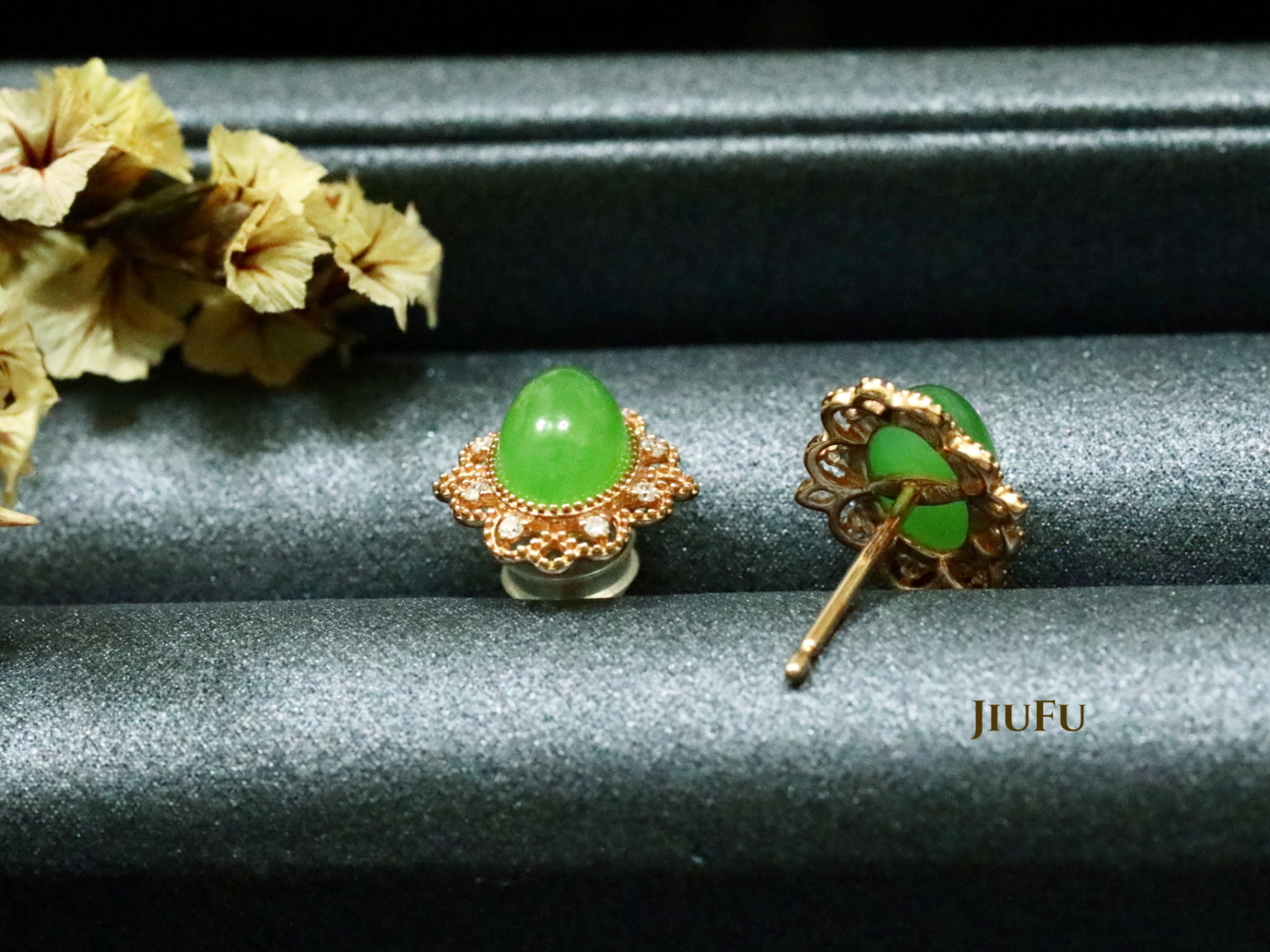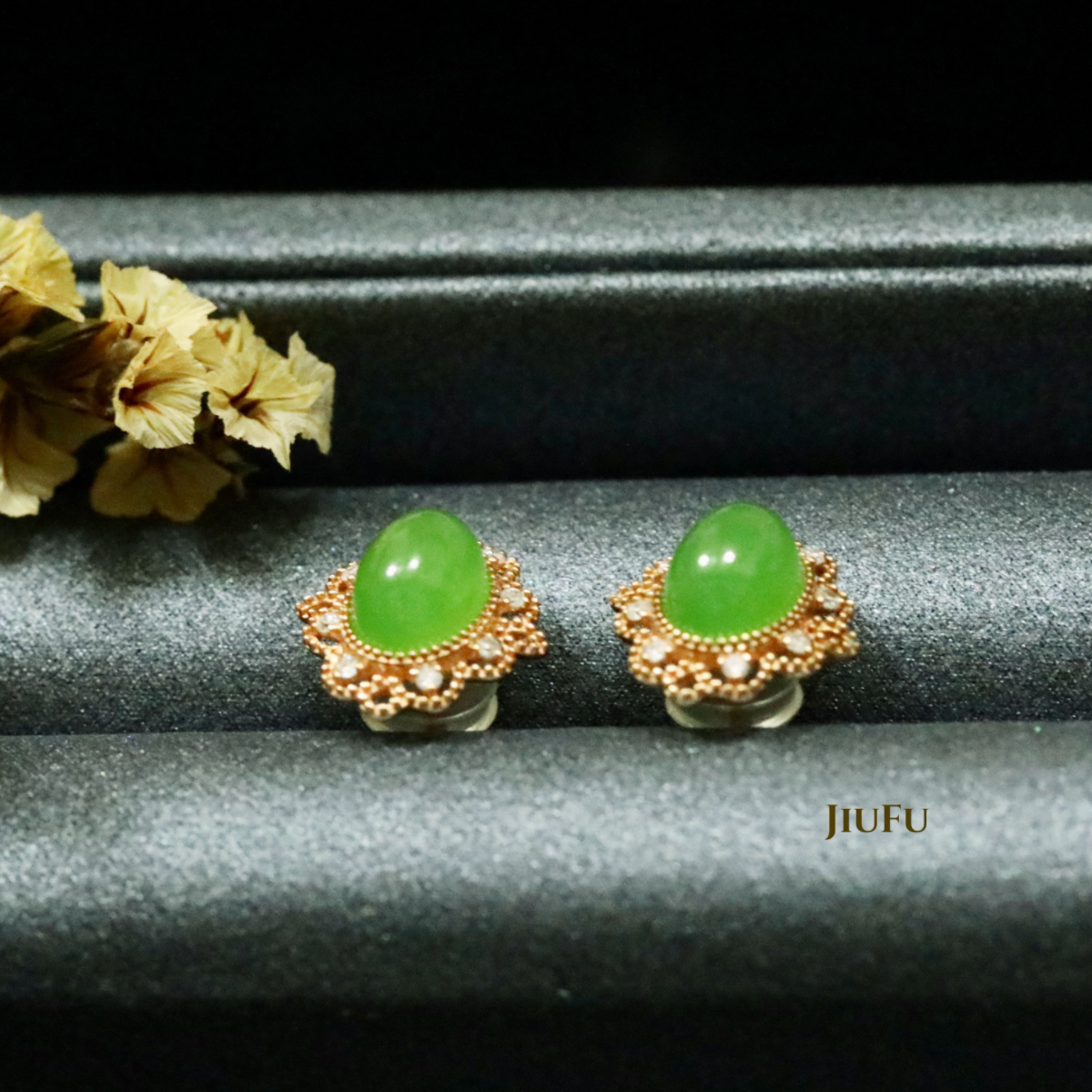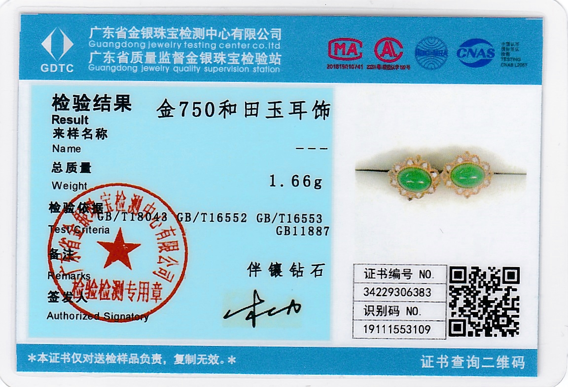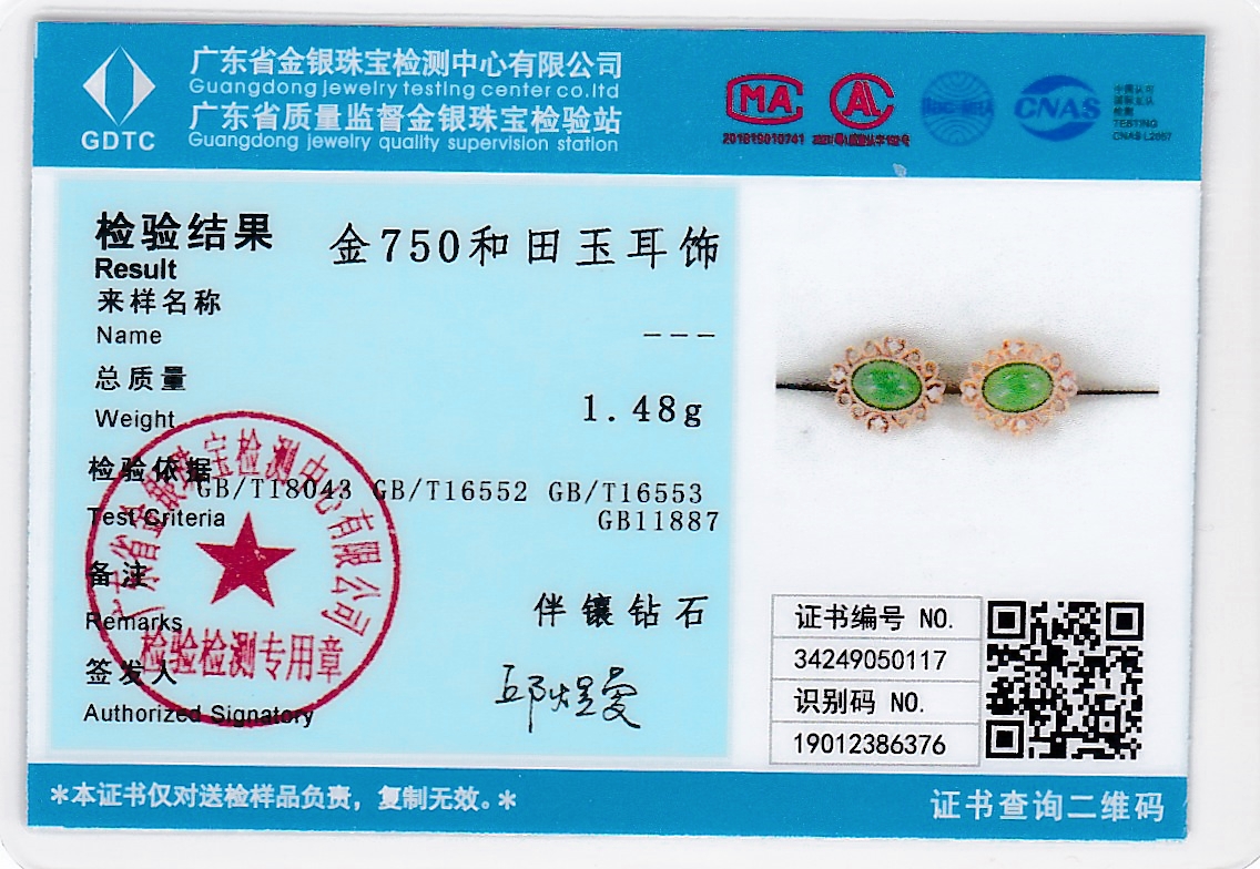 18K玫瑰金和田玉(碧玉)耳饰