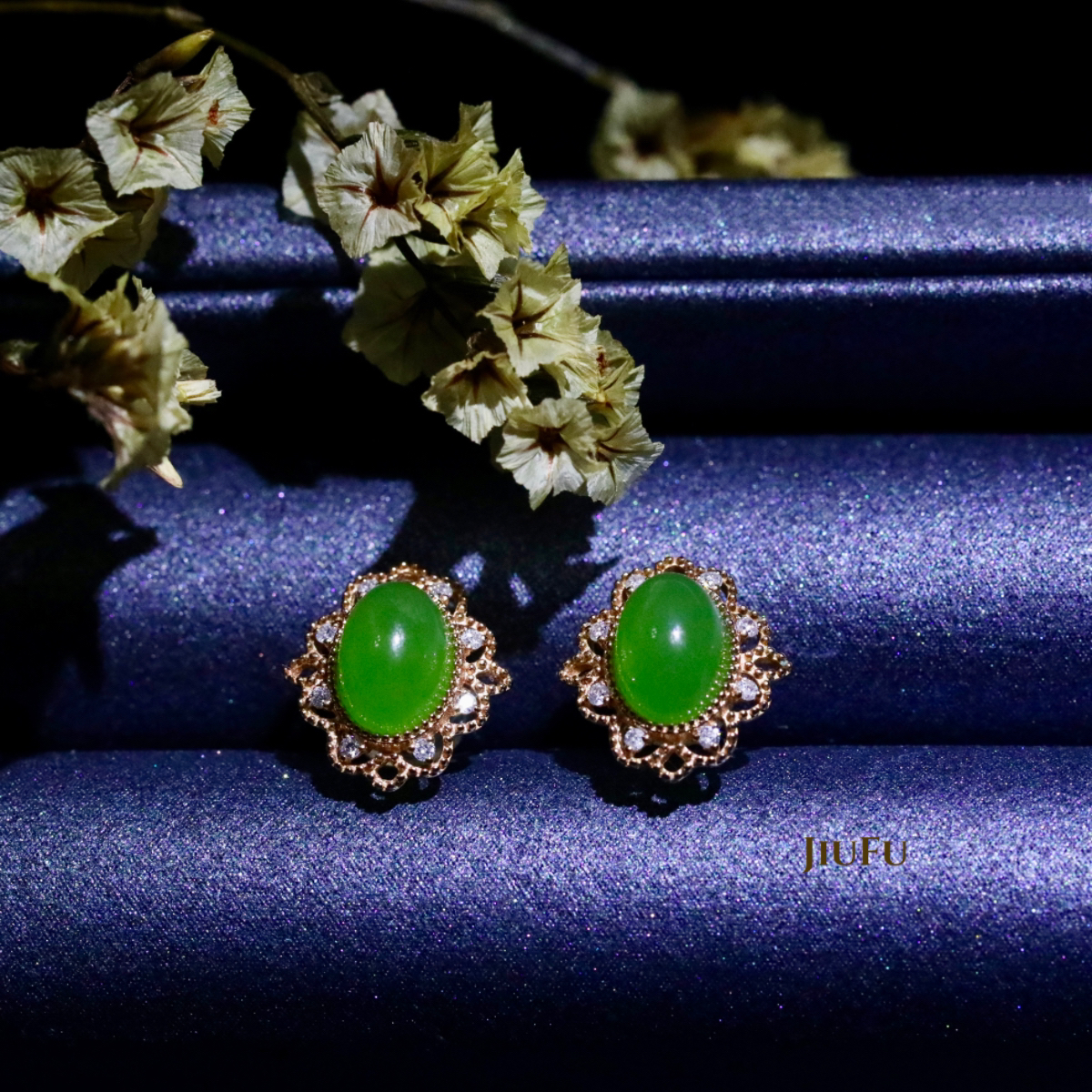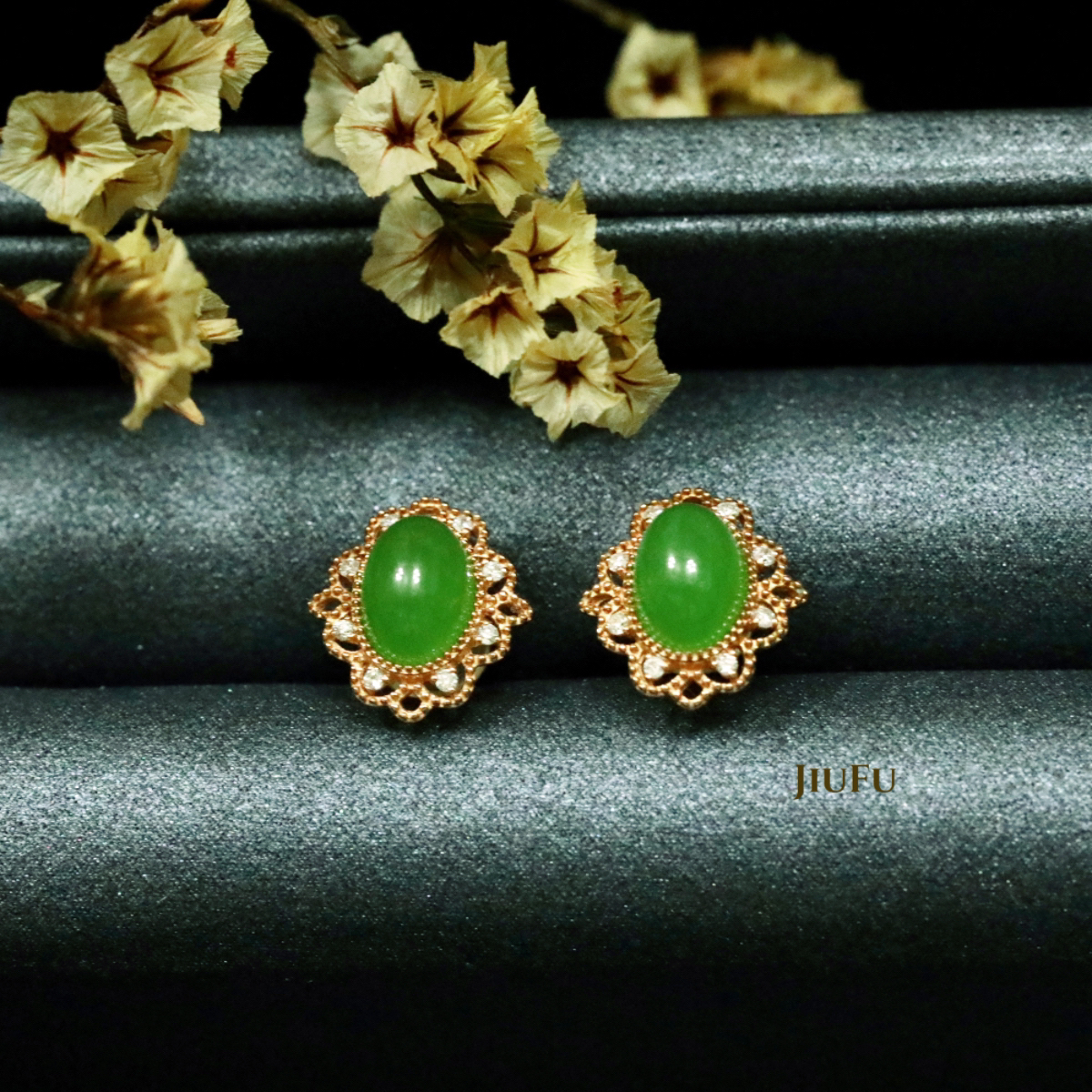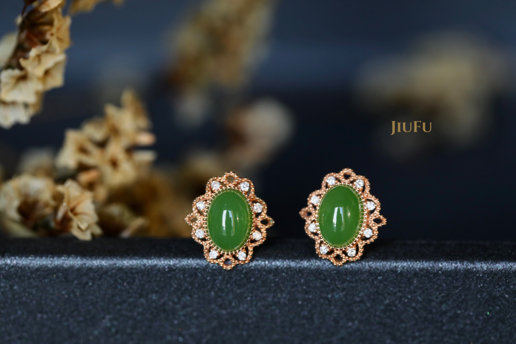 18K玫瑰金和田玉(碧玉)耳饰