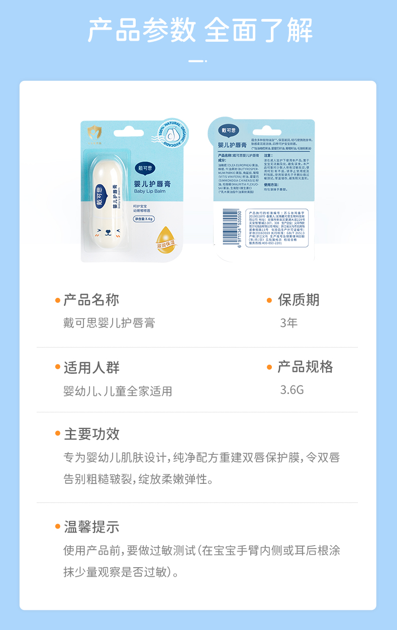 戴可思推荐 护唇膏3.6g/支 不怕舔的唇膏 新生儿可用