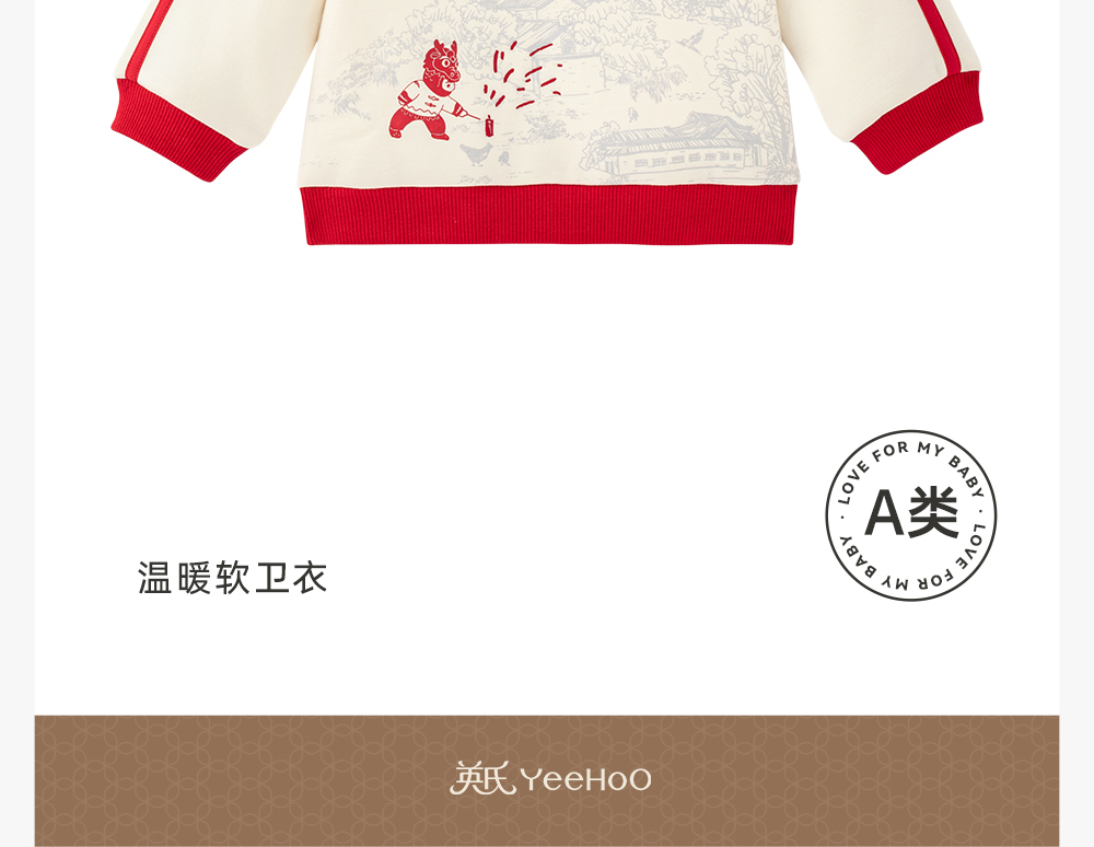 【商场同款】英氏儿童卫衣国风夹棉套头男女童卫衣春秋款