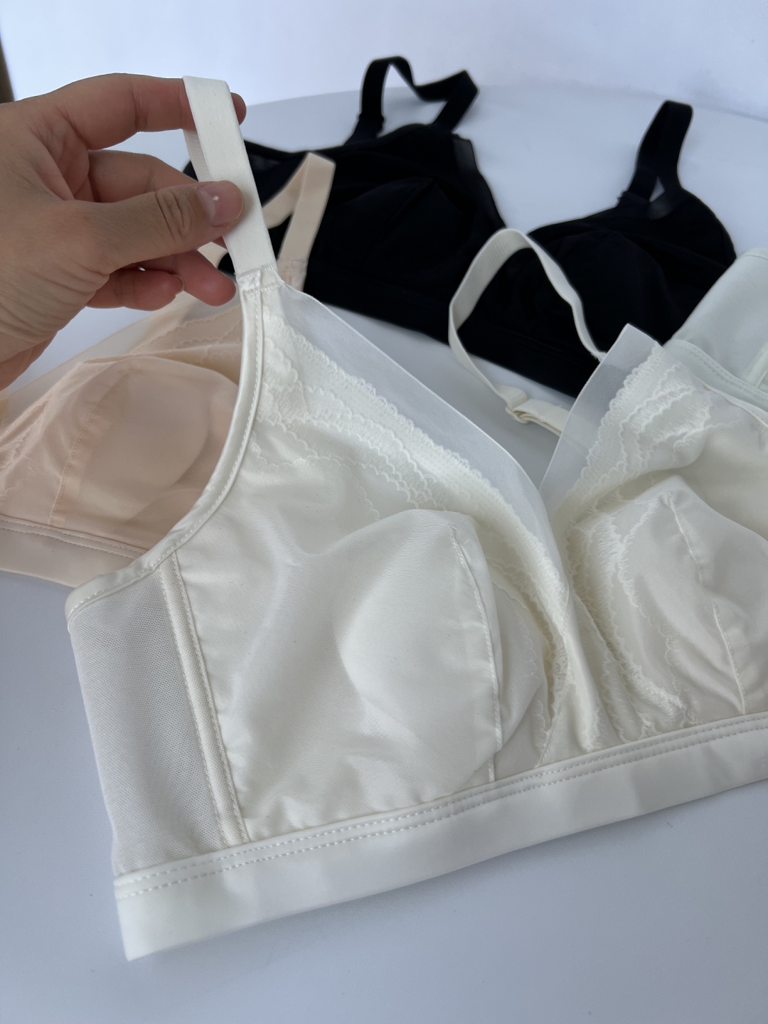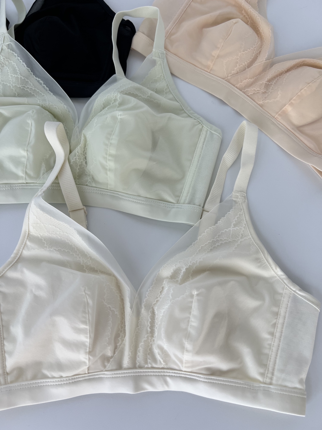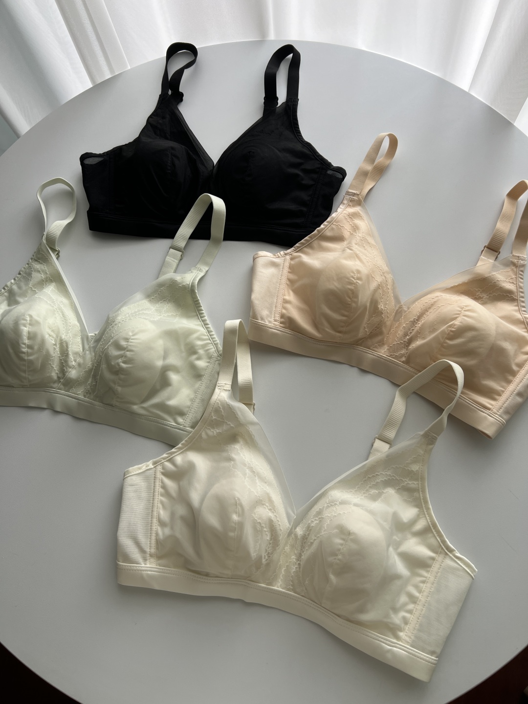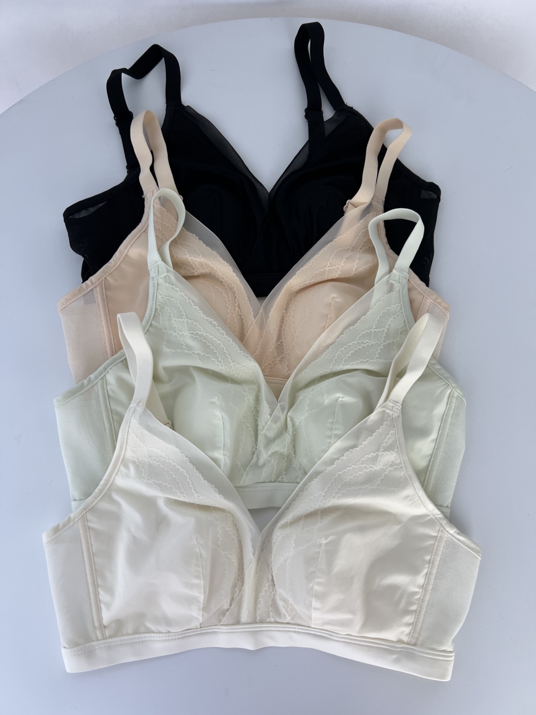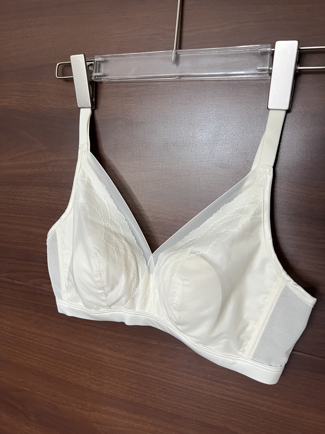 码数非常适合想要纸片人效果的姐妹 整件内衣厚度不足0.3cm拥有更充盈的包容空间 客供提花蕾丝 柔软细腻不扎肉 搭配缎感包边 勾勒性感深V曲线 无钢圈设计让胸部舒适自在