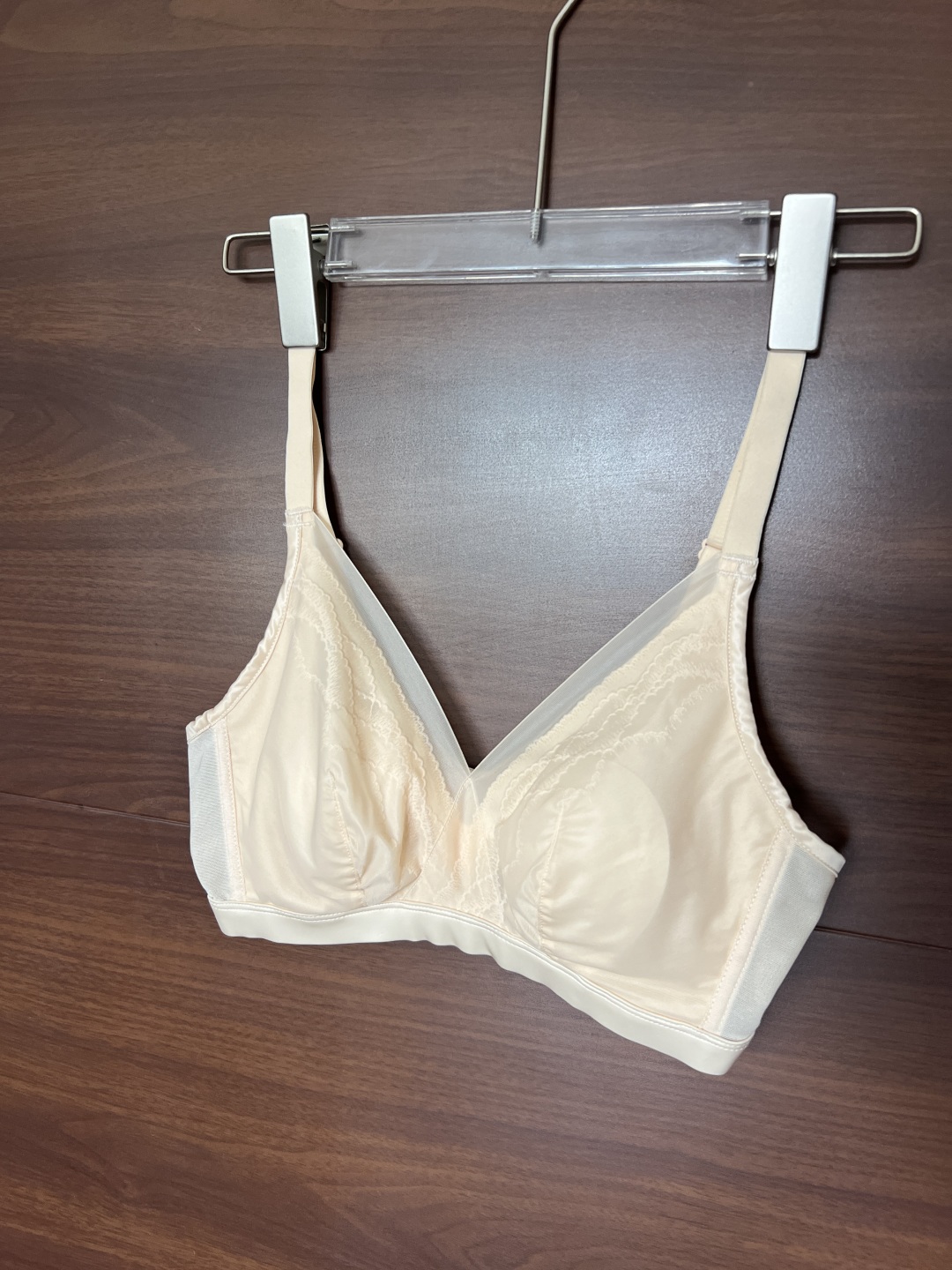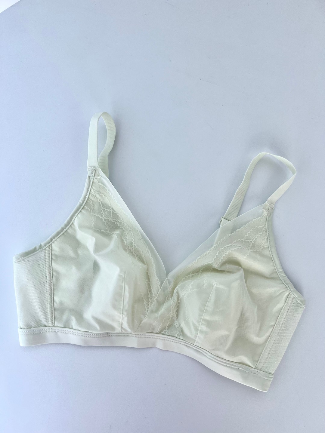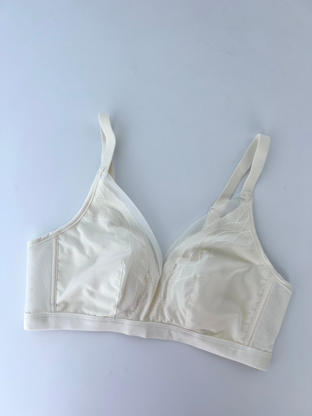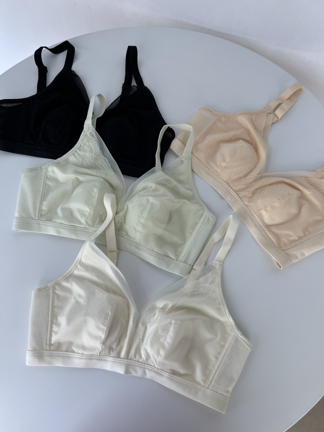 码数非常适合想要纸片人效果的姐妹 整件内衣厚度不足0.3cm拥有更充盈的包容空间 客供提花蕾丝 柔软细腻不扎肉 搭配缎感包边 勾勒性感深V曲线 无钢圈设计让胸部舒适自在