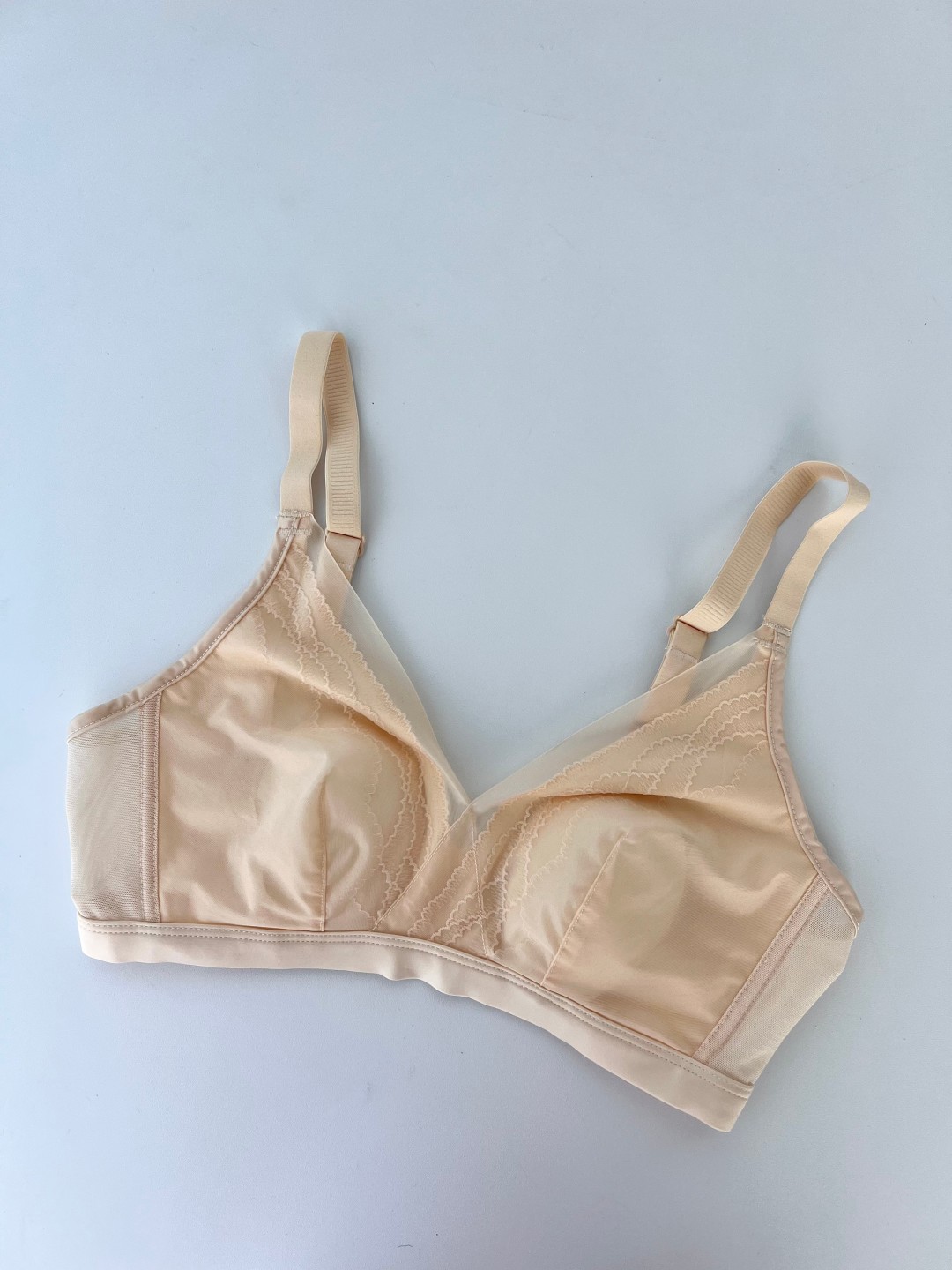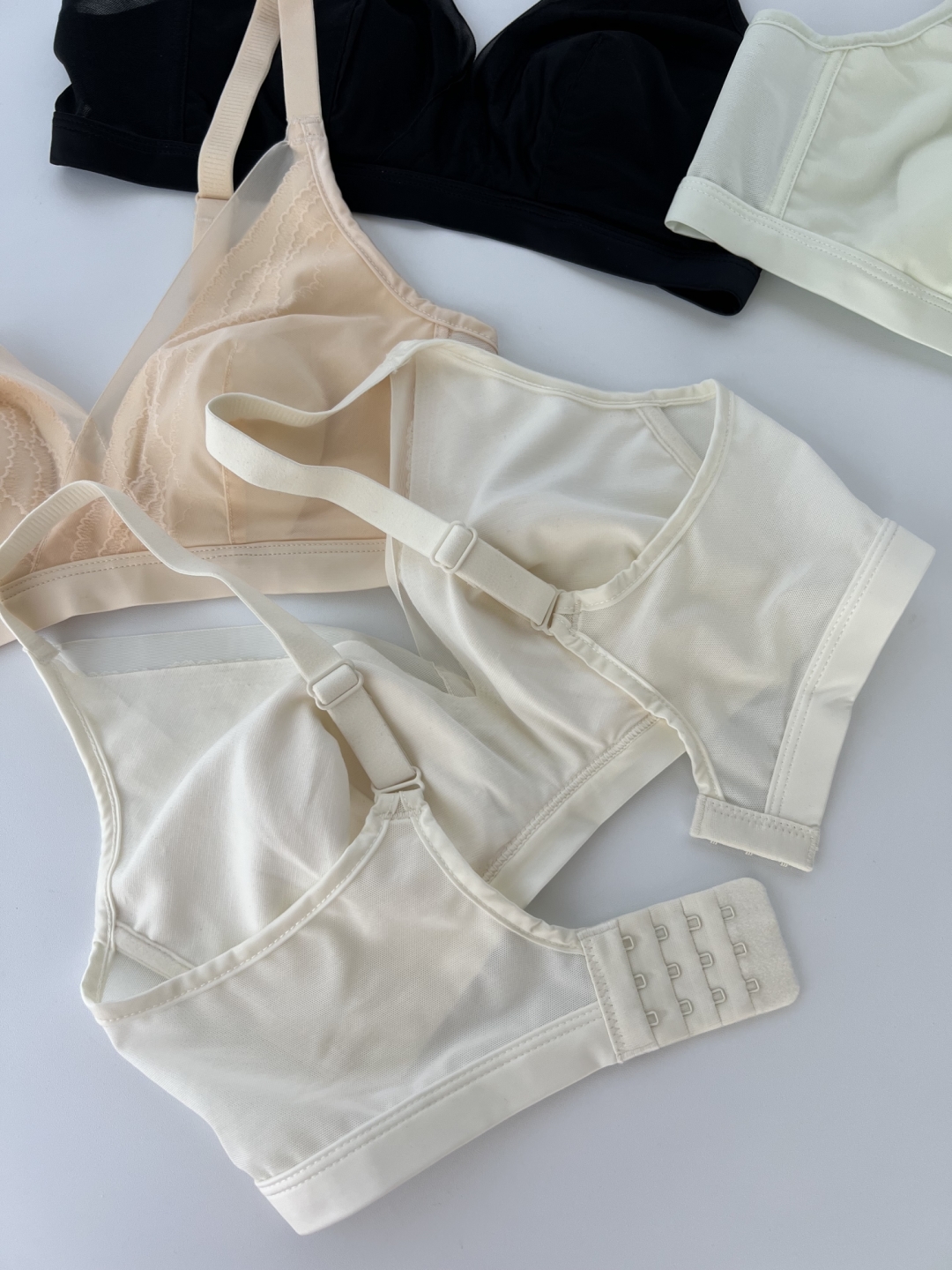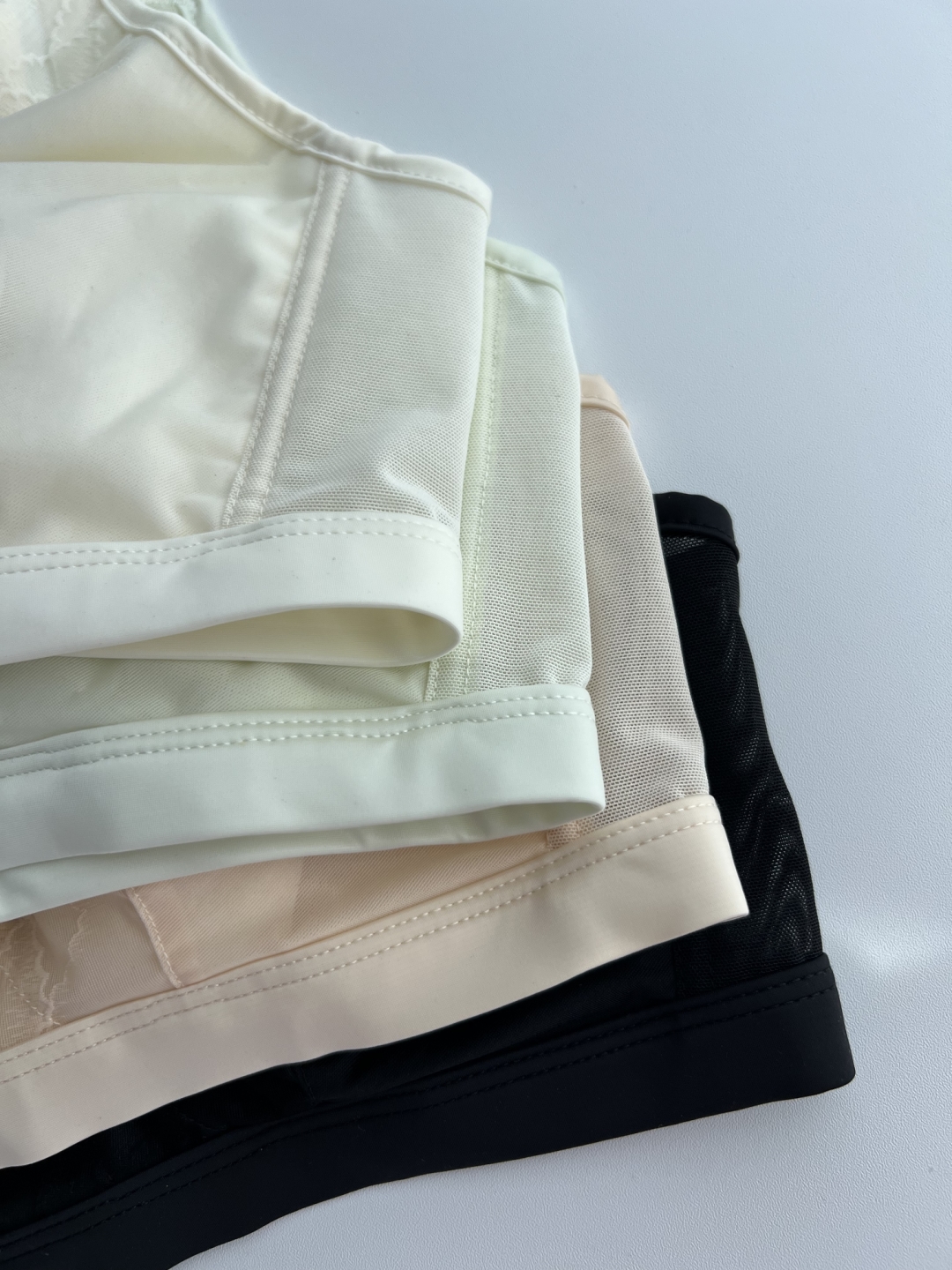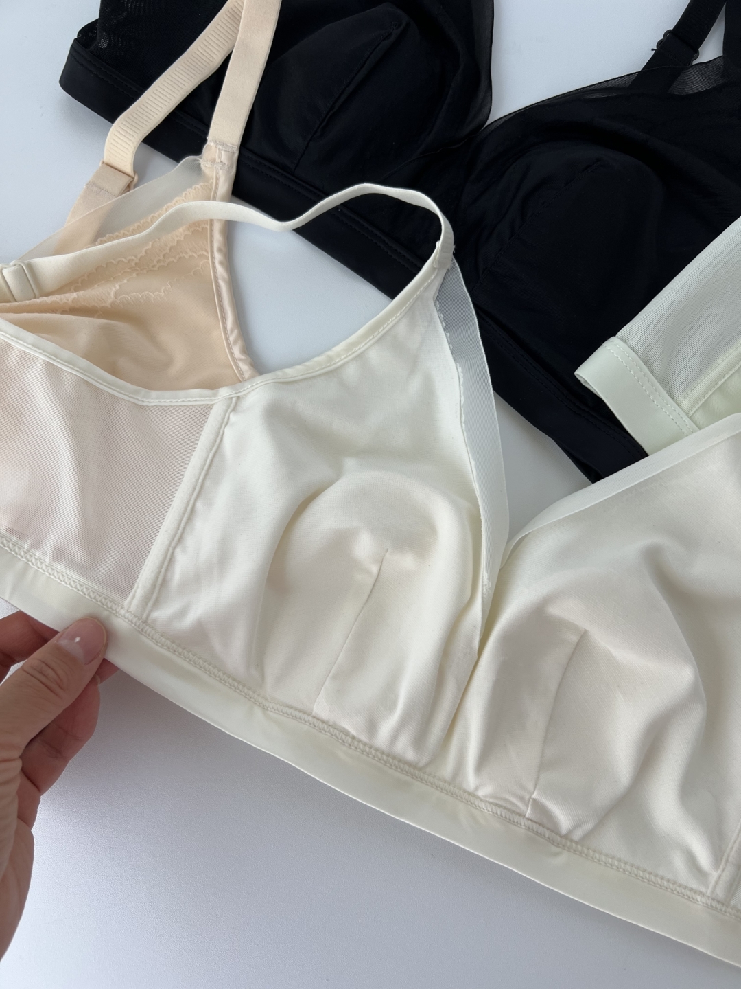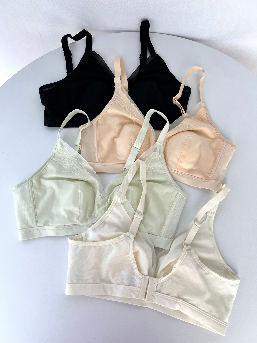 码数非常适合想要纸片人效果的姐妹 整件内衣厚度不足0.3cm拥有更充盈的包容空间 客供提花蕾丝 柔软细腻不扎肉 搭配缎感包边 勾勒性感深V曲线 无钢圈设计让胸部舒适自在