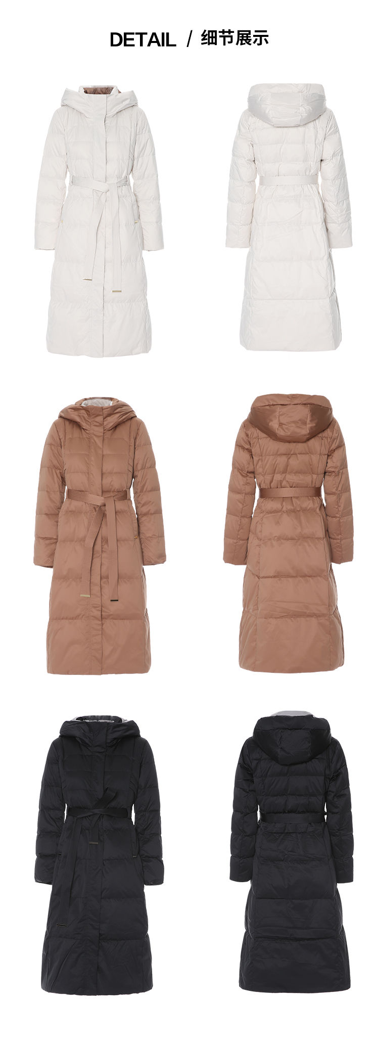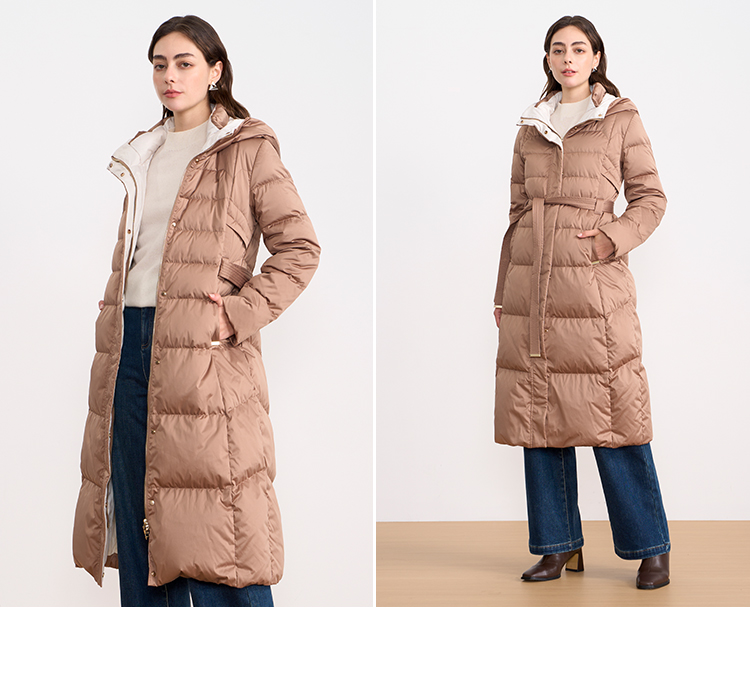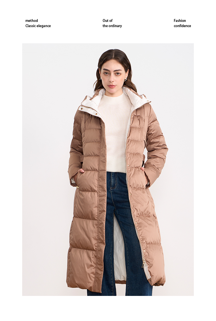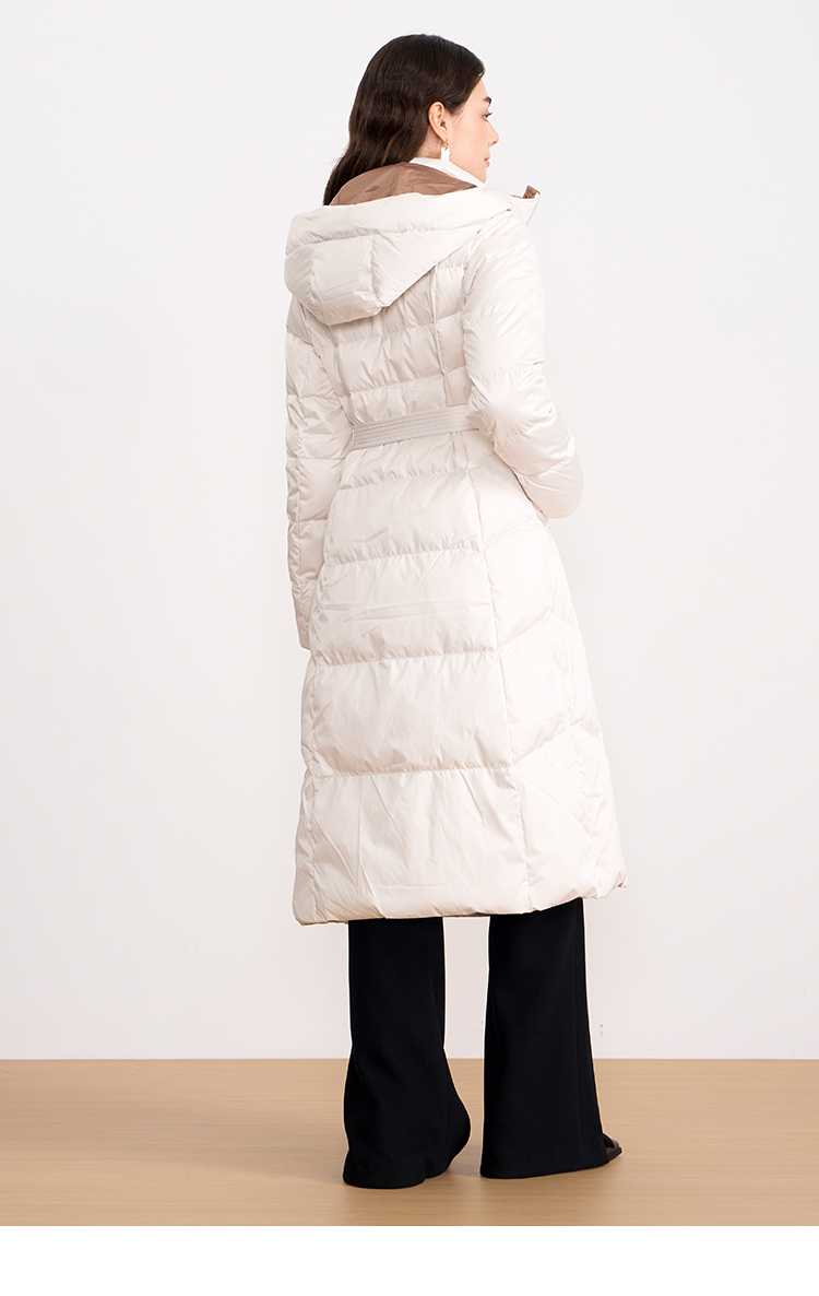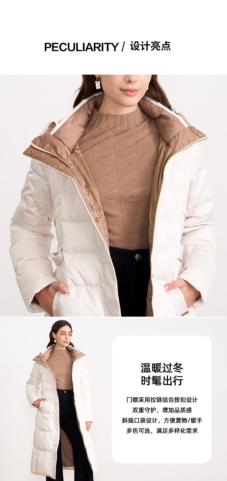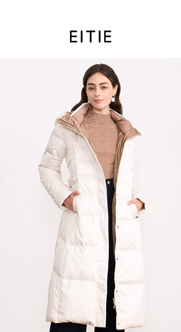 EITIE爱特爱加厚保暖长款收腰连帽鹅绒显瘦2025冬季新款羽绒服D2511909X