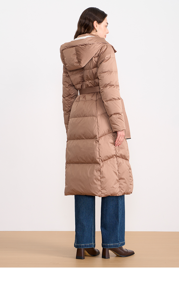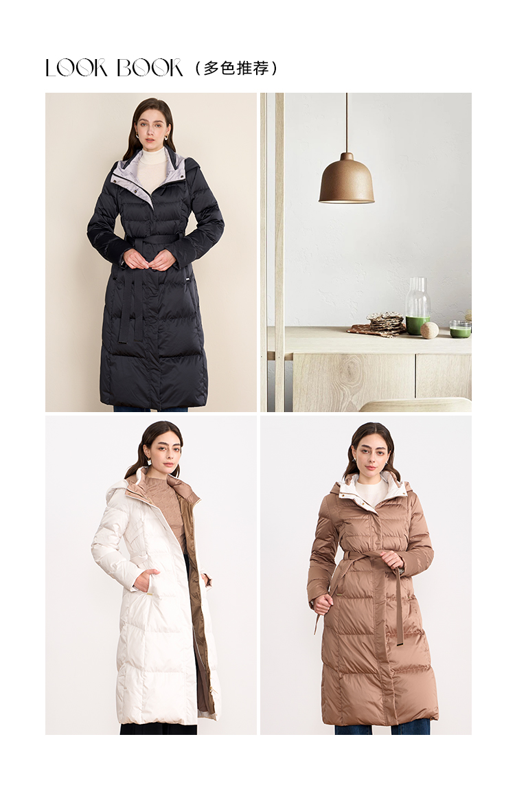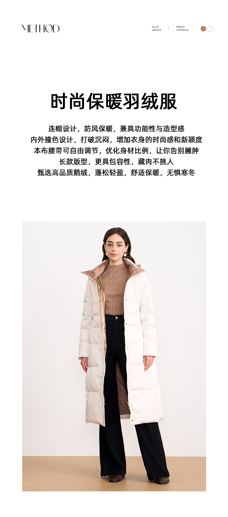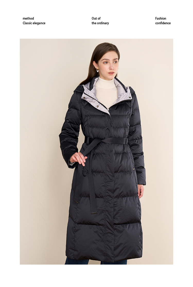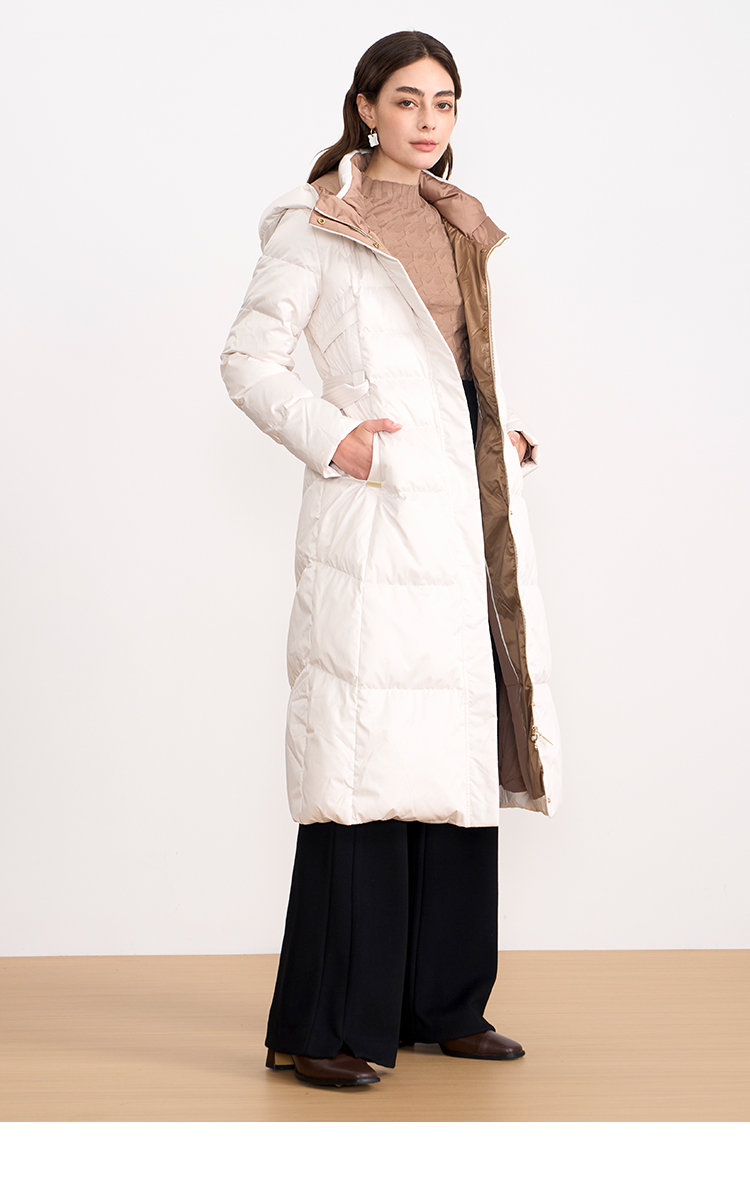 EITIE爱特爱加厚保暖长款收腰连帽鹅绒显瘦2025冬季新款羽绒服D2511909X