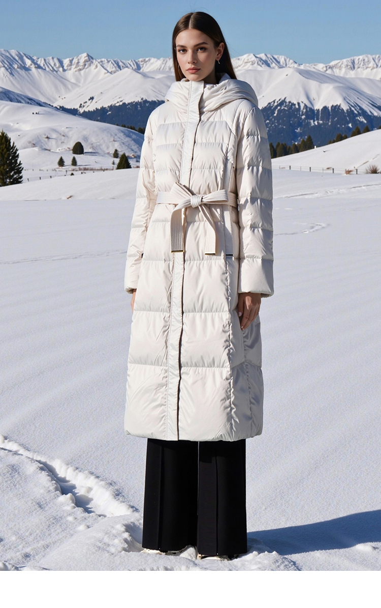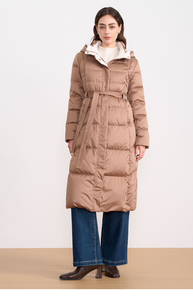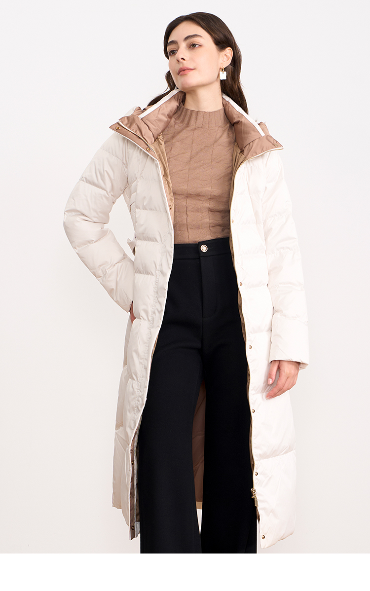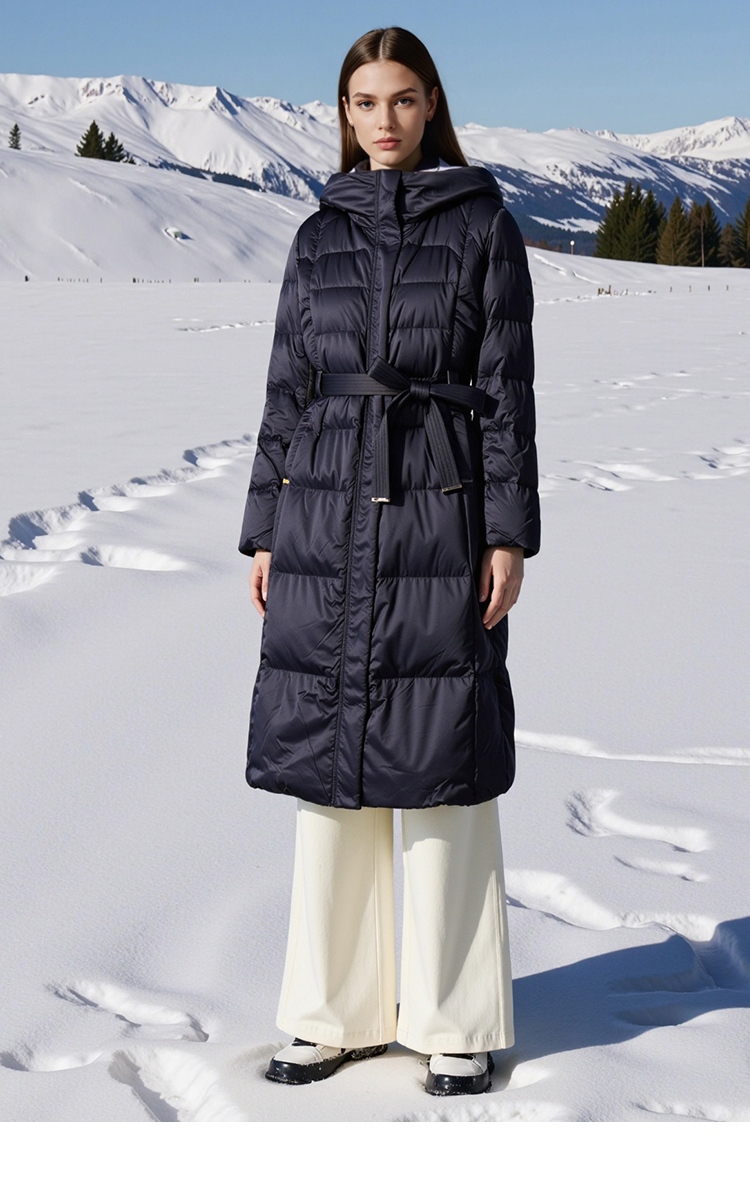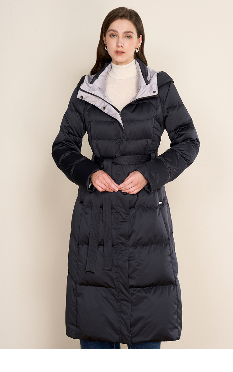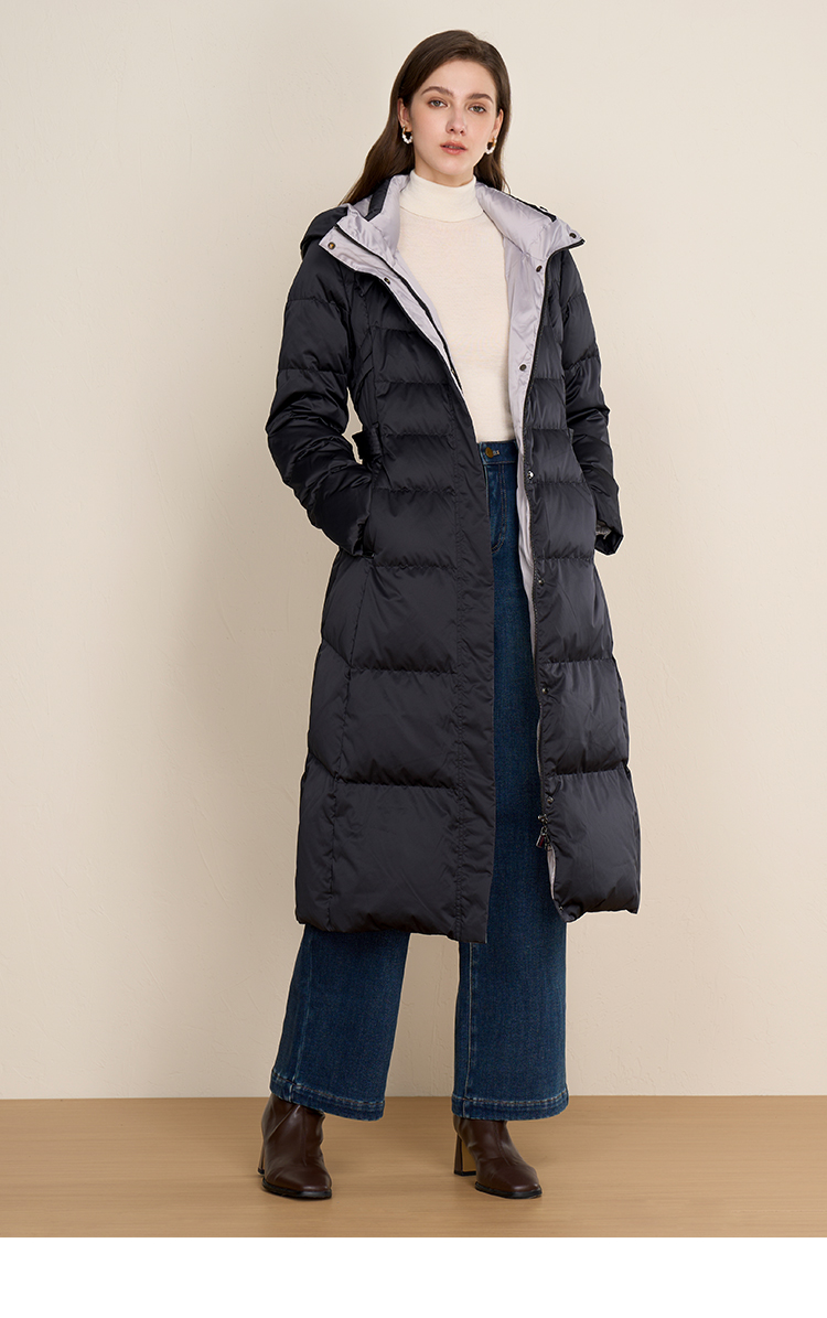 EITIE爱特爱加厚保暖长款收腰连帽鹅绒显瘦2025冬季新款羽绒服D2511909X