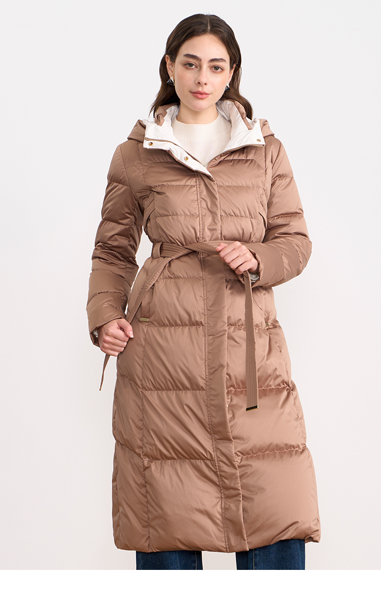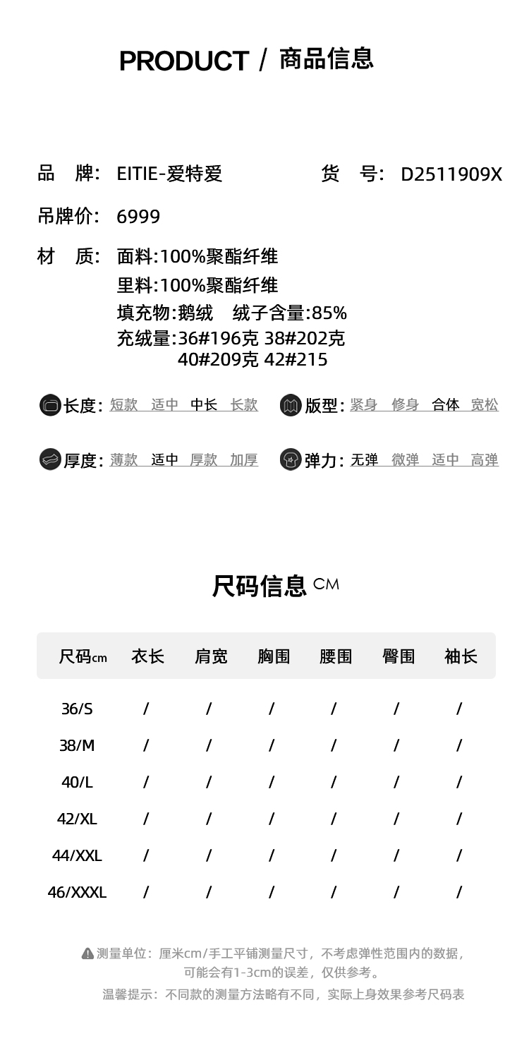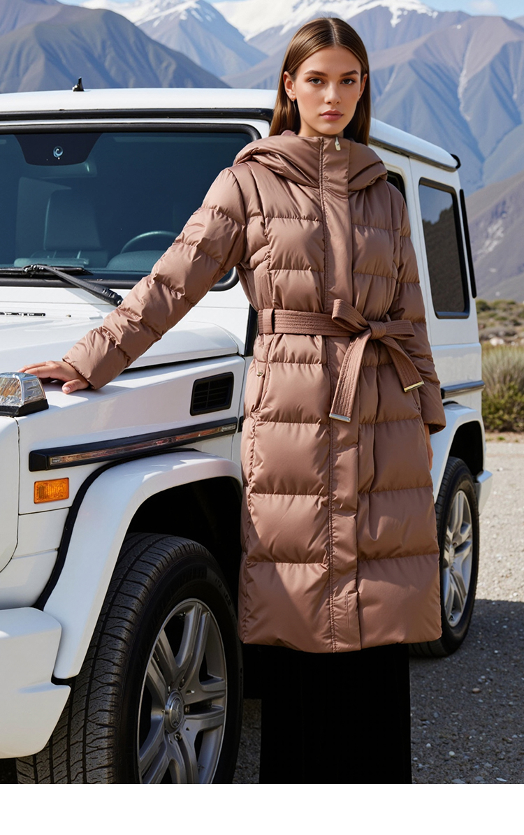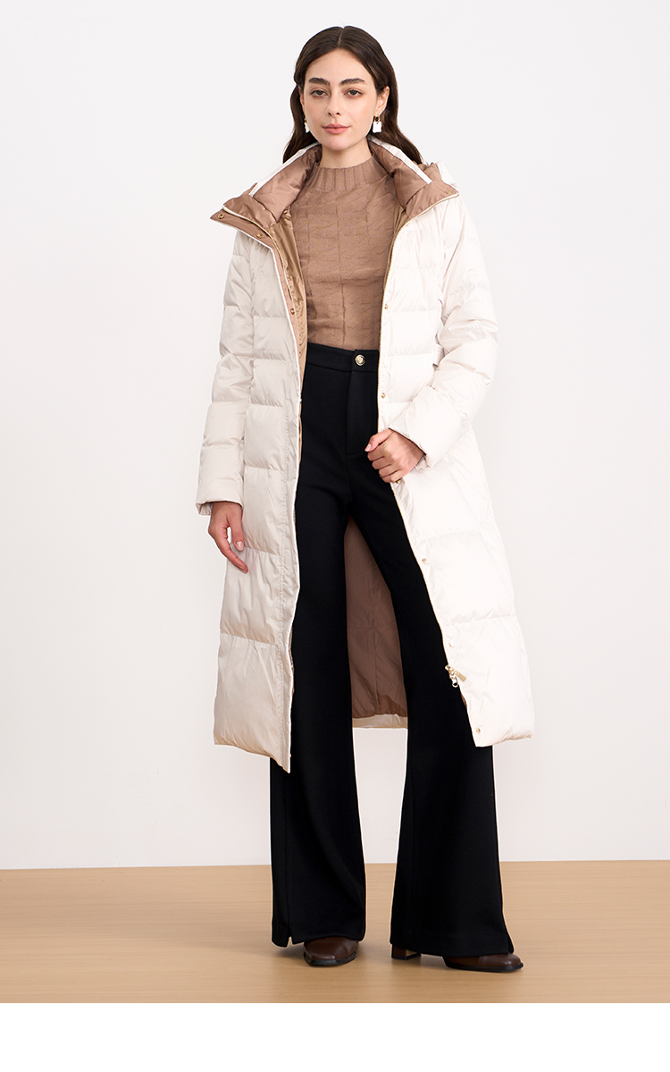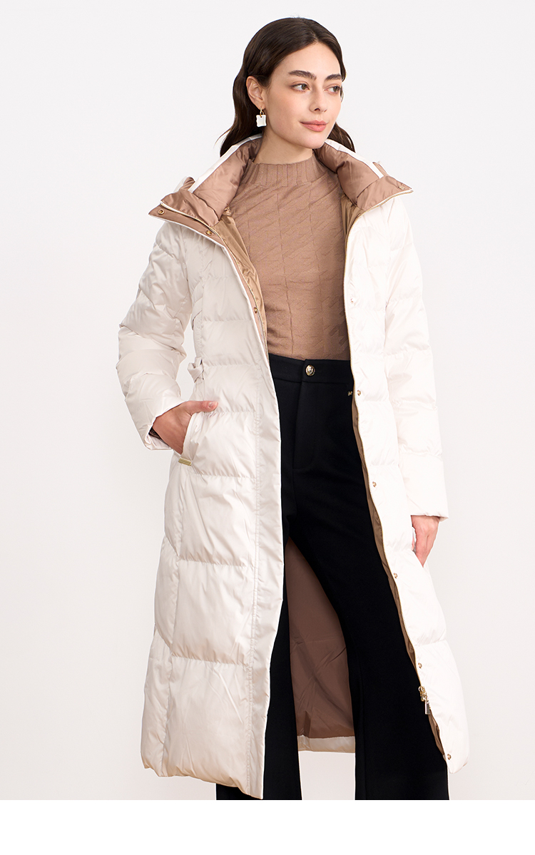 EITIE爱特爱加厚保暖长款收腰连帽鹅绒显瘦2025冬季新款羽绒服D2511909X