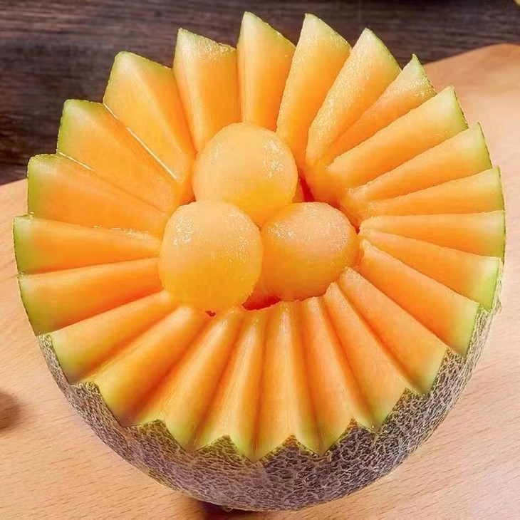 外表清新,果实饱满,大小均匀就连深浅不一的网纹看上去都像一种别致的装饰这绝对是完美的精品蜜瓜。