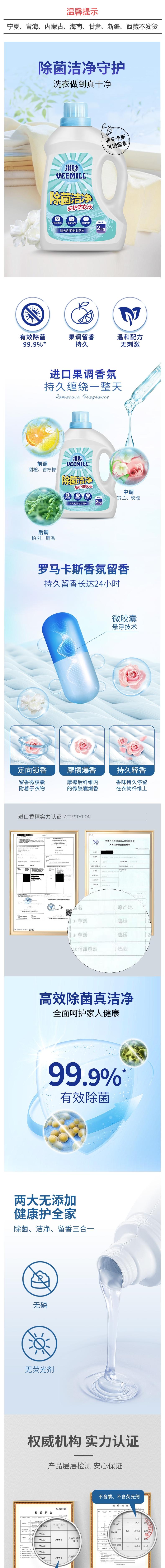 Veemill维妙 瓶装除菌洁净洗衣液2kg瓶装*4+500g*2袋 cj0402