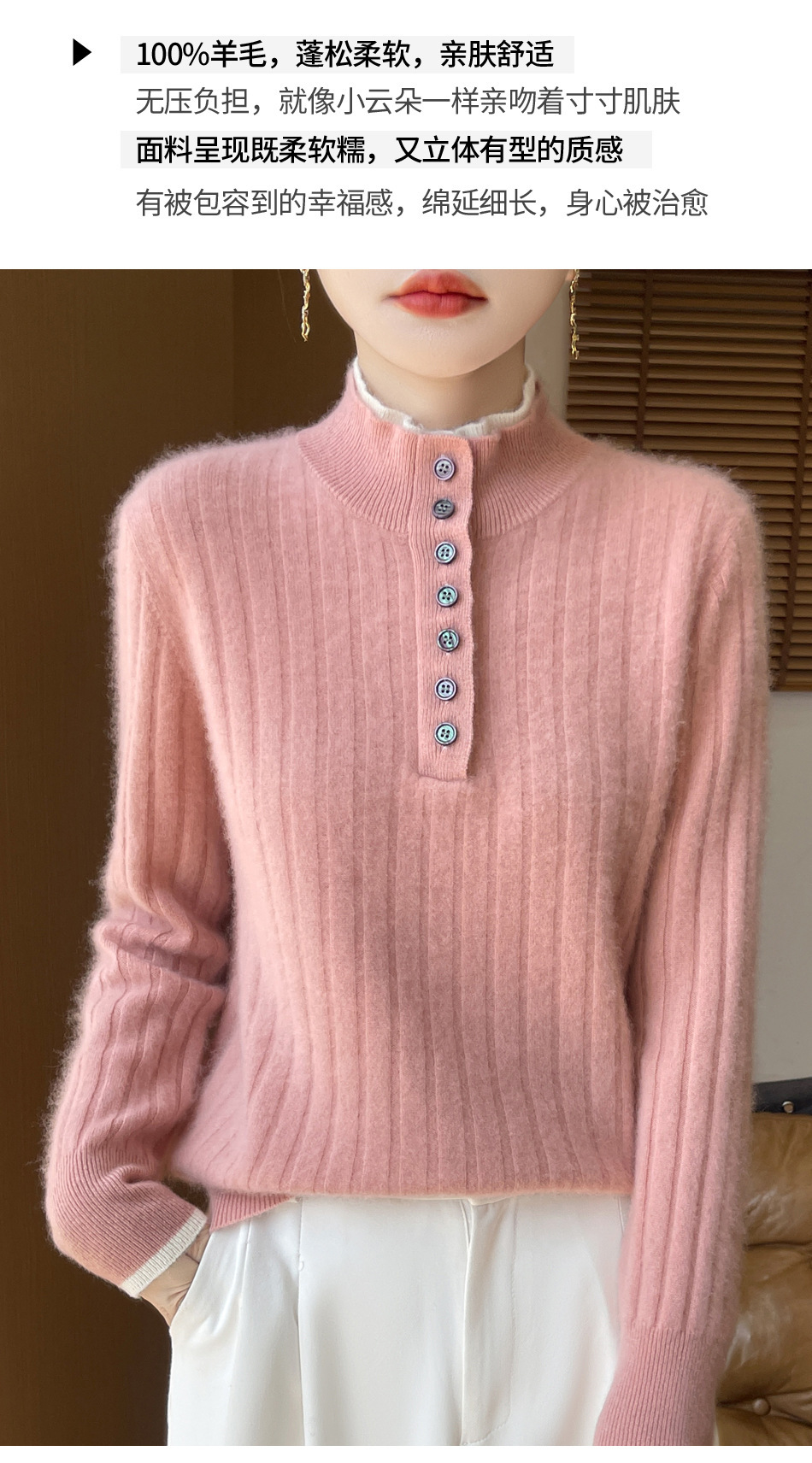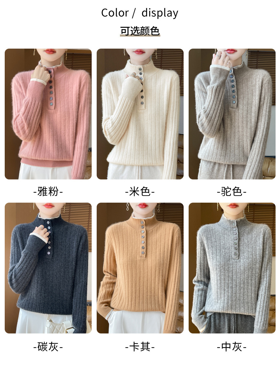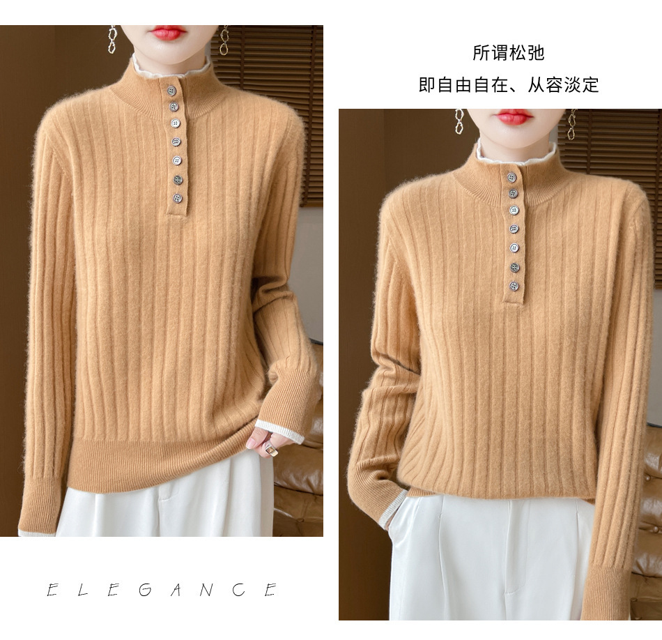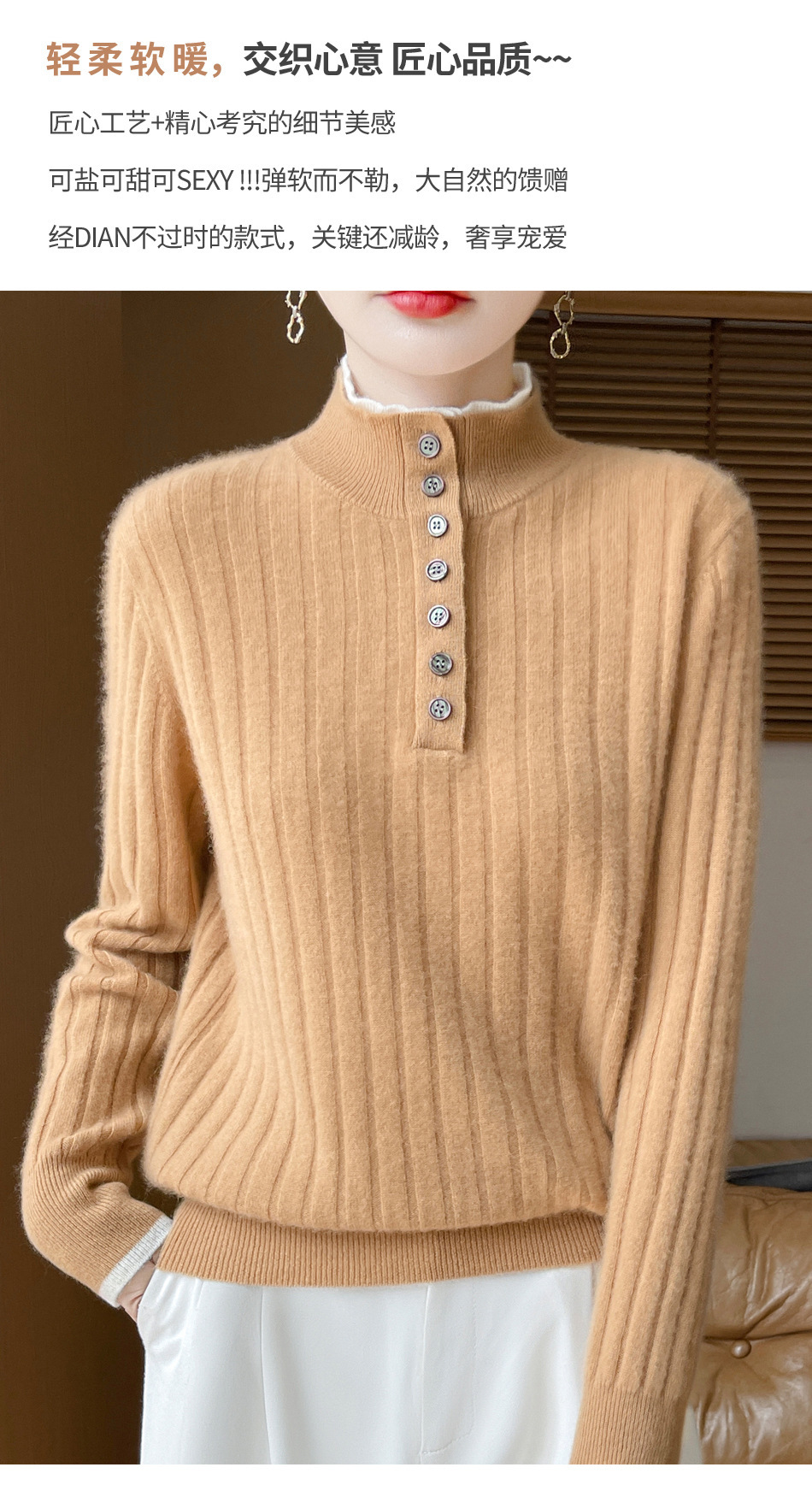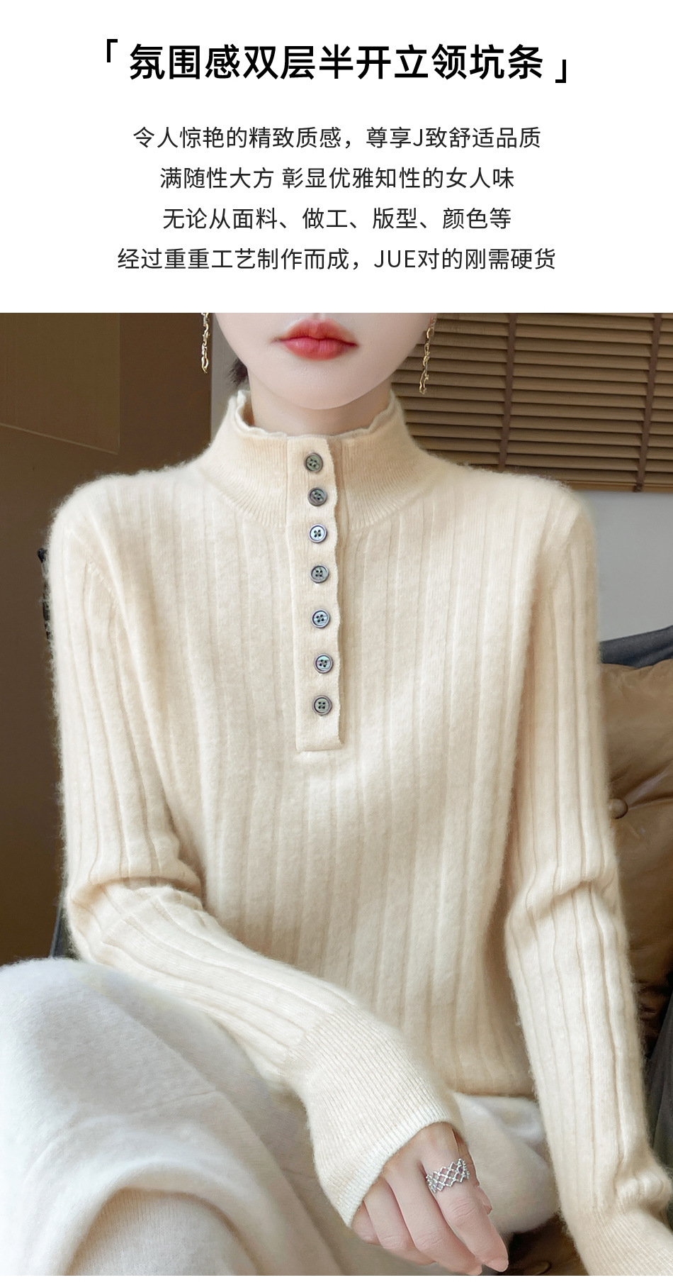 丁摩 秋冬新款羊毛衫女双层半开立领套头内搭坑条上衣针织打底衫5ZF-46656