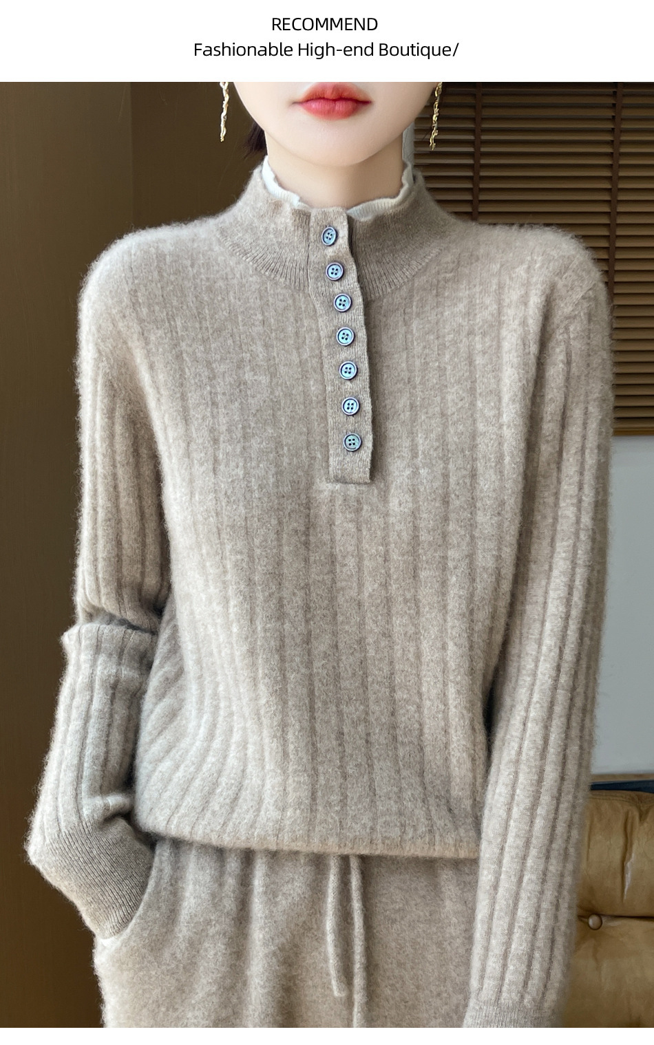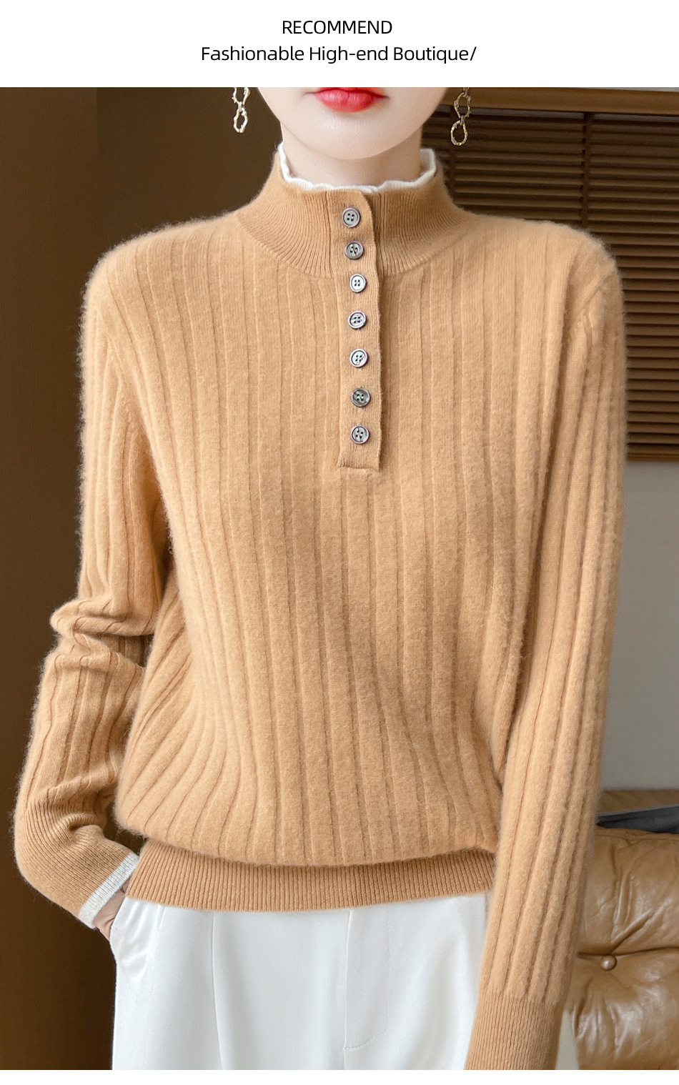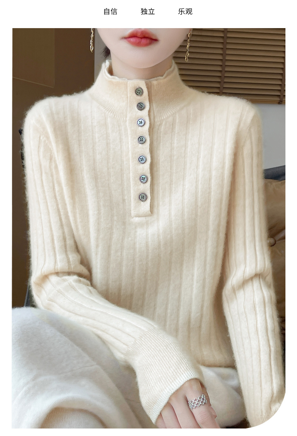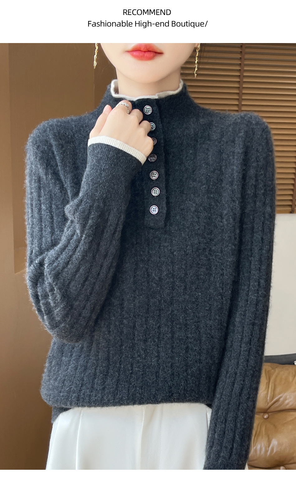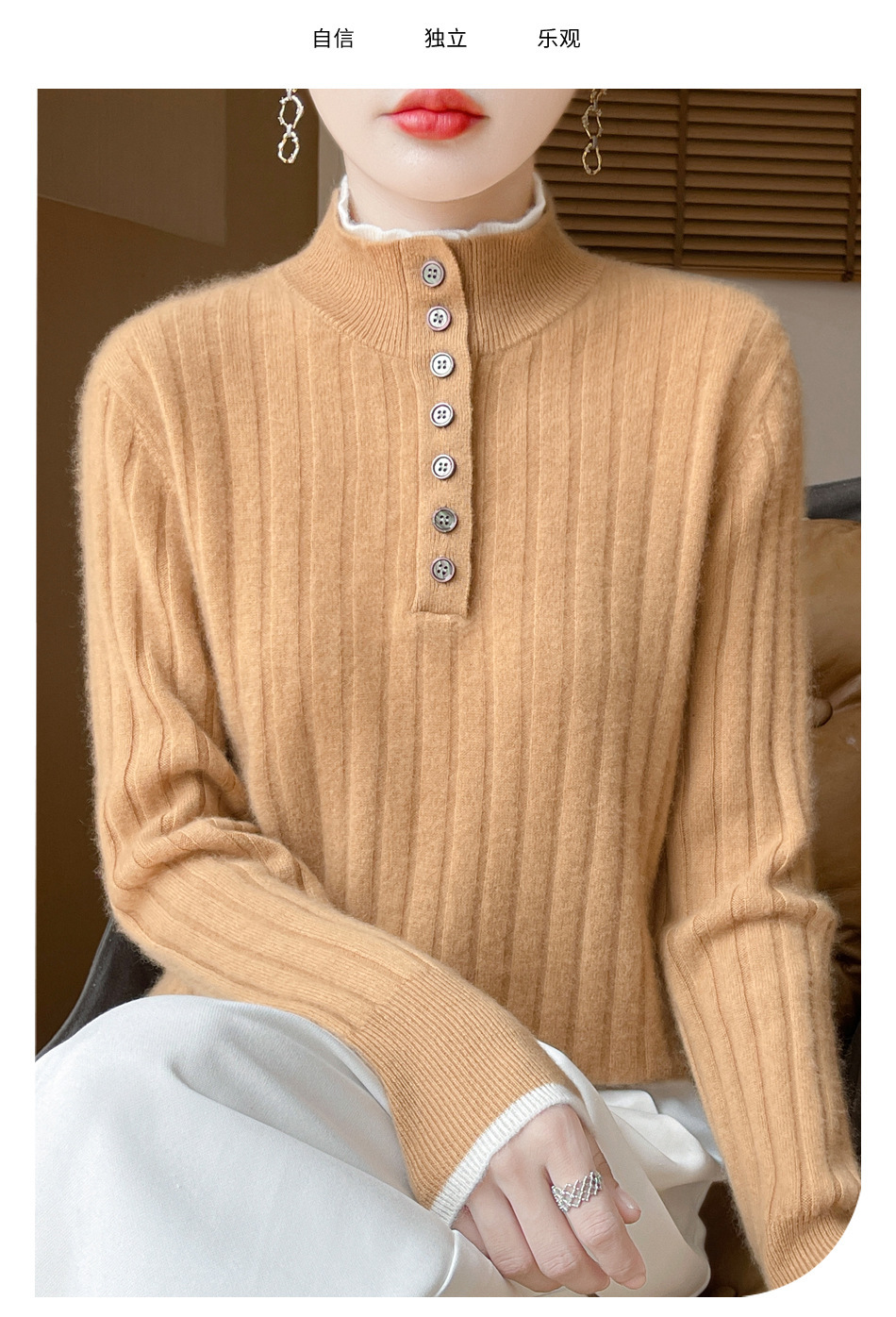 丁摩 秋冬新款羊毛衫女双层半开立领套头内搭坑条上衣针织打底衫5ZF-46656